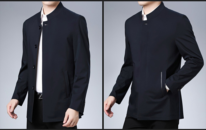 Áo khoác nhẹ dành cho nam, kiểu dáng cổ đứng lịch sự, phù hợp mặc trong tiết trời mùa xuân và mùa thu. Thiết kế tối giản, dễ dàng phối cùng quần âu hoặc quần vải trong các dịp làm việc hoặc sinh hoạt thường ngày. Chất vải mềm mại, thoáng mát, tạo cảm giác dễ chịu khi mua. Có thể mặc trực tiếp bên ngoài áo thun hoặc áo sơ mi, phù hợp cho cả công sở và những lúc đi chơi. | Tên sản phẩm: Áo Khoác Nam Hàng Mùa Xuân Thu Đông Trung Niên - Thời Trang Nam | Mã sản phẩm: L2649 - Giá: 1.220.000đ | Mã nhà sản xuất: SUDI-G04Hình ảnh sản phẩm