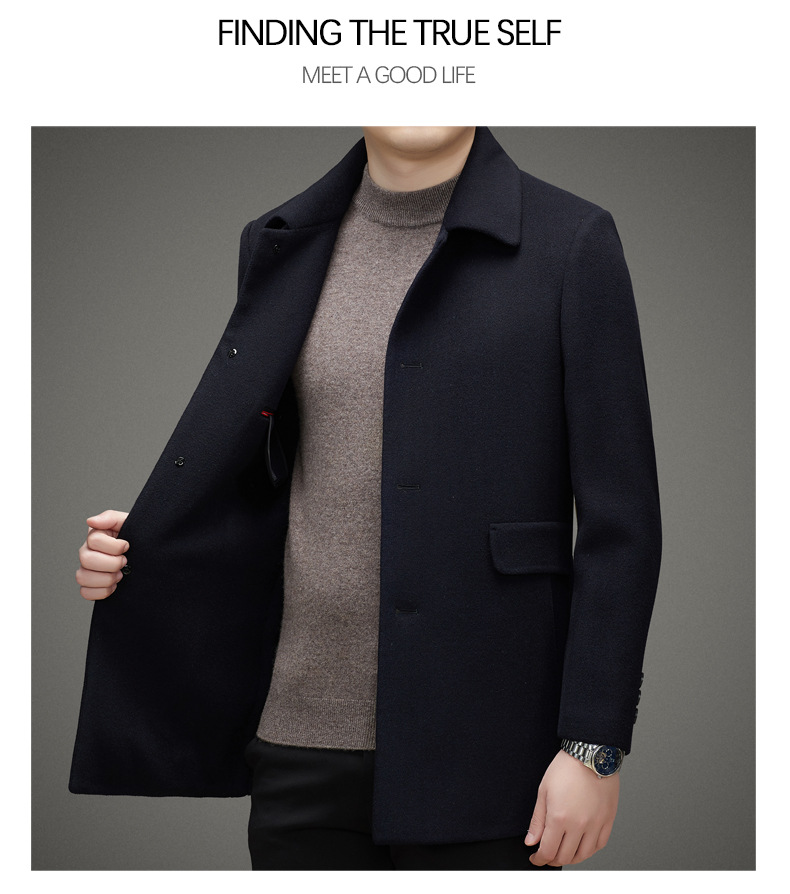 Áo khoác dành cho nam, kiểu dáng dài vừa phải, có cổ bẻ. Chất liệu dệt hai mặt ấm áp, kết hợp lớp lông vũ tự nhiên bên trong giúp giữ nhiệt tốt. Thiết kế cổ điển, dễ dàng phối cùng nhiều trang phục công sở hoặc mặc hàng ngày. Có thể mặc trực tiếp hoặc khoác ngoài, phù hợp dùng khi tiết trời chuyển lạnh. | Tên sản phẩm: Áo Khoác Nam Kín Cổ Hàng Mùa Xuân Thu Đông Trung Niên - Thời Trang Nam | Mã sản phẩm: L2711 - Giá: 2.730.000đ | Mã nhà sản xuất: SUDI-G06Hình ảnh sản phẩm