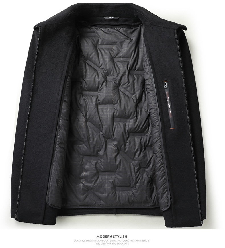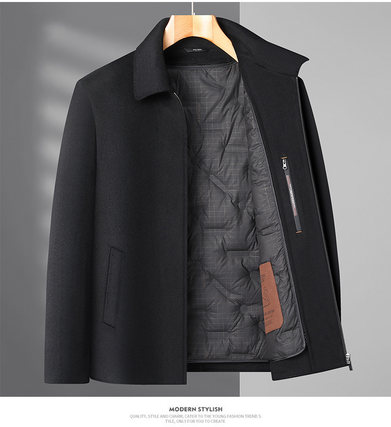 Áo khoác nam thiết kế hai mặt, có cổ bẻ và khóa kéo, phù hợp cho cả công sở và dạo chơi. Điểm nổi bật là lớp lót bên trong có thể tháo rời, làm từ lông vịt trắng, giữ ấm tốt trong tiết trời lạnh. Chất liệu dệt từ sợi len tự nhiên, tạo cảm giác mềm mại và ấm áp. Có thể mặc nguyên bản hoặc tháo lớp lót để dùng riêng như áo khoác mỏng tùy thời tiết. | Tên sản phẩm: Áo Khoác Nam Kín Cổ Hàng Mùa Xuân Thu Đông - Thời Trang Nam | Mã sản phẩm: L2732 - Giá: 2.550.000đ | Mã nhà sản xuất: SUDI-G06Hình ảnh sản phẩm