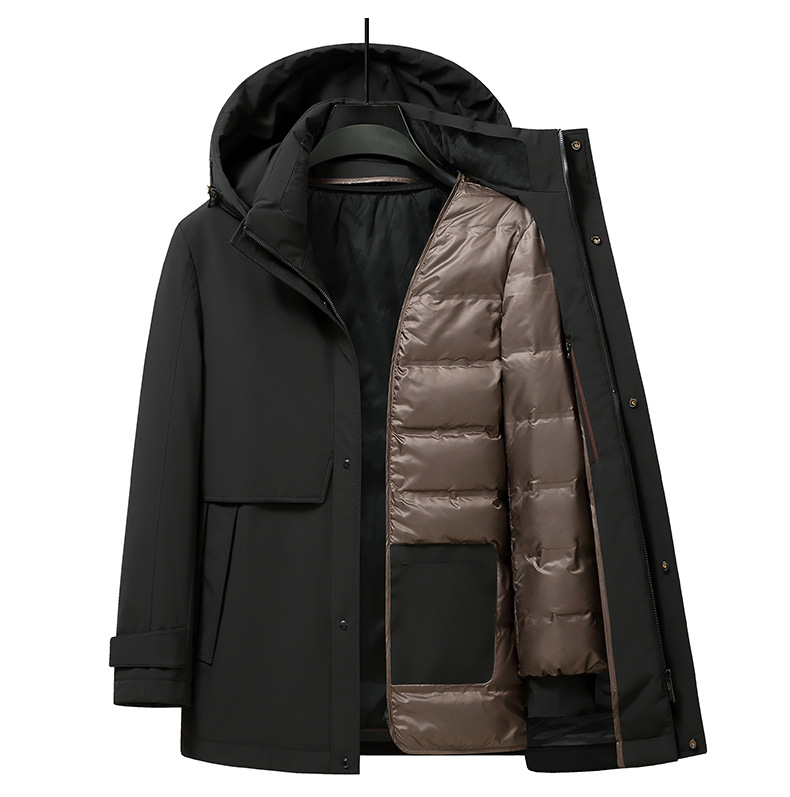Áo khoác mùa lạnh dành cho nam, có mũ trùm và thân dài qua hông. Áo được lót bằng lớp bông lông vũ mềm mại, giữ ấm tốt cho những ngày trời lạnh. Kiểu dáng kết hợp giữa đi làm và đi chơi, phù hợp cho các đấng sinh thành. Mặc áo bên ngoài áo thun hoặc áo len, kéo khóa và dùng mũ khi cần để gió không lùa vào. | Tên sản phẩm: Áo Khoác Nam Mũ Liền Hàng Mùa Xuân Thu Đông Trung Niên - Thời Trang Nam | Mã sản phẩm: L2752 - Giá: 3.520.000đ | Mã nhà sản xuất: SUDI-G06Hình ảnh sản phẩm