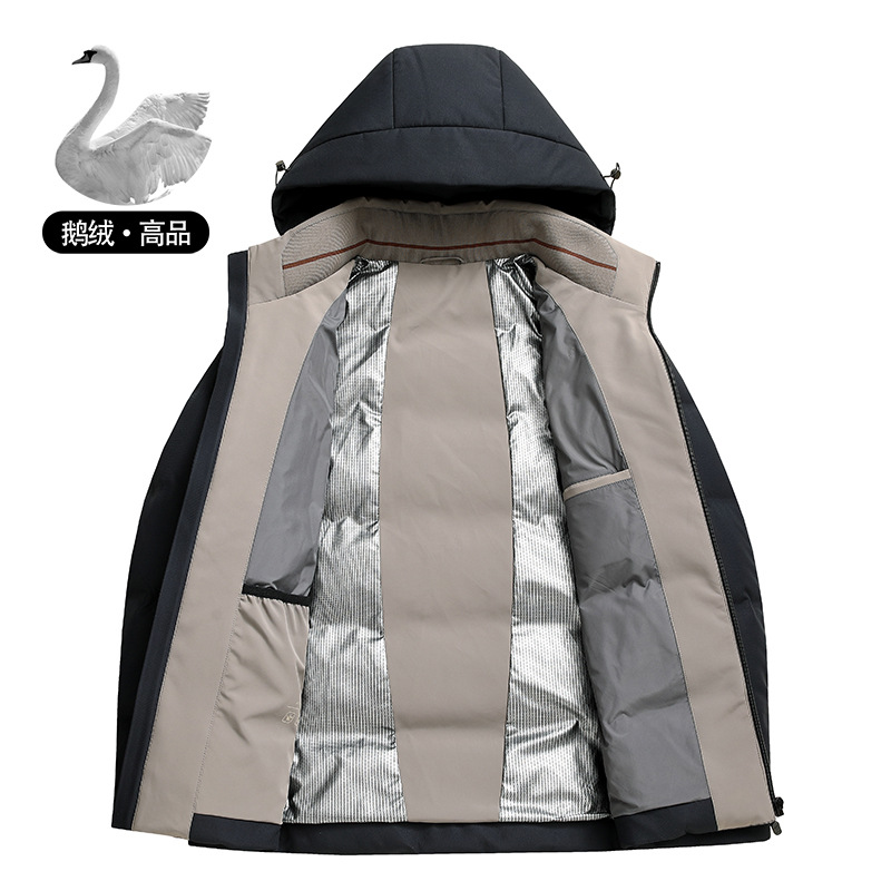 Áo khoác dành cho nam giới, được làm từ lớp lông vũ tự nhiên của loài ngỗng trắng, mang đến khả năng giữ ấm tốt. Kiểu dáng có mũ trùm có thể tháo rời, phù hợp cho cả công sở và sinh hoạt thường ngày. Thiết kế đơn giản, màu sắc thuần nhất, dễ dàng phối với nhiều loại trang phục khác nhau. Lớp vỏ ngoài được xử lý đặc biệt giúp hạn chế tối đa tình trạng lông vũ bị xuyên ra ngoài. Có thể mặc trực tiếp hoặc dùng làm áo khoác ngoài trong những ngày trời lạnh. | Tên sản phẩm: Áo Khoác Nam Mũ Liền Trung Niên - Thời Trang Nam | Mã sản phẩm: L2823 - Giá: 3.190.000đ | Mã nhà sản xuất: SUDI-G06Hình ảnh sản phẩm