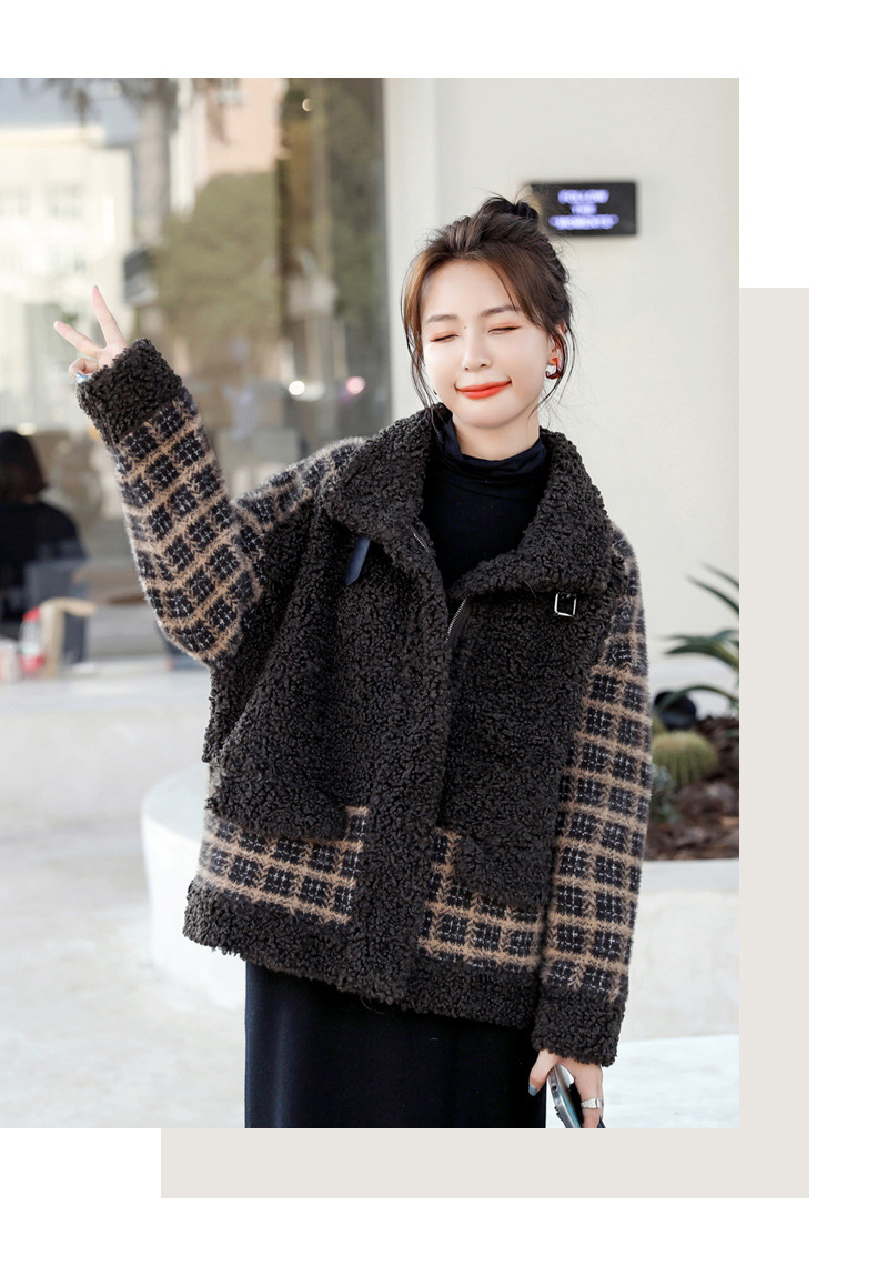 Áo khoác nữ ngắn kiểu dáng rộng, phù hợp cho mùa thu đông. Chất liệu dệt từ sợi len ấm áp, điểm nhấn là họa tiết ô vuông và phần viền lông cừu mềm mại tạo nên vẻ đẹp cổ điển. Thiết kế form rộng thoải mái, dễ dàng phối cùng nhiều trang phục như quần jeans hay váy liền. Sản phẩm giữ ấm tốt, mặc trực tiếp hoặc khoác ngoài đều phù hợp. | Tên sản phẩm: Áo Khoác Nữ Kẻ Caro Kẻ Caro Hàng Mùa Xuân Thu Đông Phong Cách Hàn Quốc - Thời Trang Nữ | Mã sản phẩm: L2868 - Giá: 2.450.000đ | Mã nhà sản xuất: HADA-G05Hình ảnh sản phẩm
