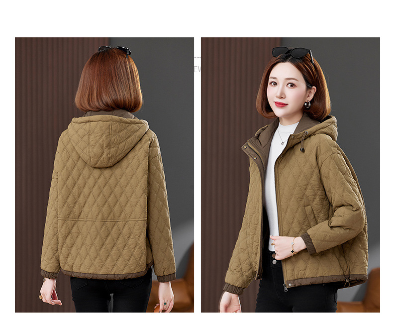 Áo khoác nữ ngắn kiểu dáng thời trang, phù hợp cho thời tiết se lạnh. Chất liệu bông mềm mại, bên trong có lớp lót ấm áp giúp giữ nhiệt tốt. Thiết kế có mũ trùm tiện lợi, các đường may tạo hình ô vuông độc đáo. Sản phẩm dành cho các bạn nữ có chiều cao khiêm tốn, phong cách trẻ trung. Dễ dàng phối với nhiều loại trang phục như quần jeans hay váy để đi học, đi chơi. | Tên sản phẩm: Áo Khoác Nữ Chất Liệu Vải Bông Áo Khoác Bông Kẻ Caro Kẻ Caro Hàng Mùa Xuân Thu Đông - Thời Trang Nữ | Mã sản phẩm: L2903 - Giá: 2.020.000đ | Mã nhà sản xuất: HADA-G05Hình ảnh sản phẩm
