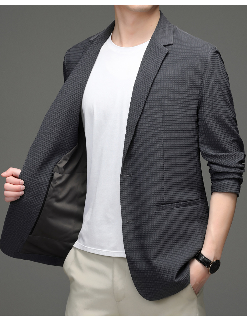 Áo khoác nam dáng Tây một lớp, điểm nhấn từ họa tiết kẻ caro cùng những nếp nhăn mềm mại tạo nên phong cách vừa lịch sự vừa thoải mái. Chất vải co giãn nhẹ, thấm hút mồ hôi và mang lại cảm giác mát mẻ khi mặc. Sản phẩm phù hợp cho các dịp làm việc hoặc dạo phố. Chỉ cần phối cùng quần âu và áo phông để có vẻ ngoài gọn gàng, tự tin. | Tên sản phẩm: Áo Sơ Mi Nam Kẻ Caro Kẻ Caro - Thời Trang Nam | Mã sản phẩm: L2904 - Giá: 1.780.000đ | Mã nhà sản xuất: SUDI-G05Hình ảnh sản phẩm