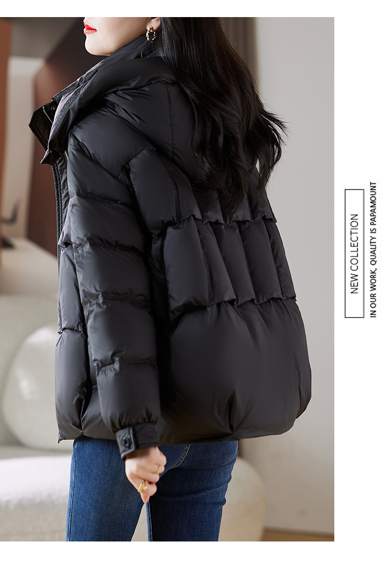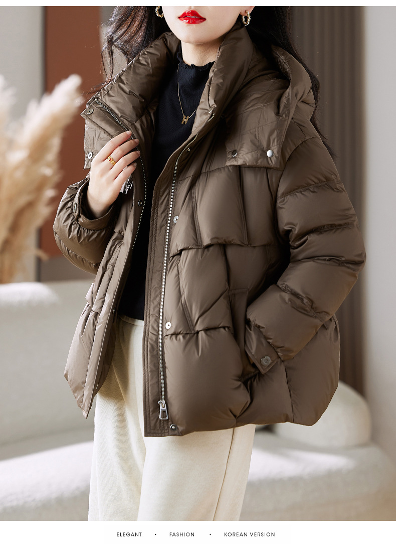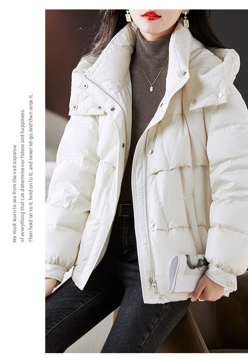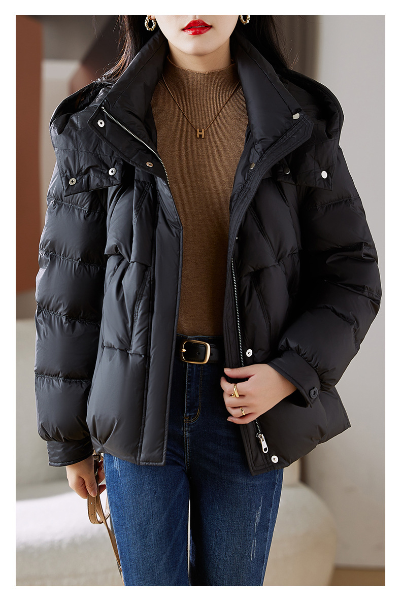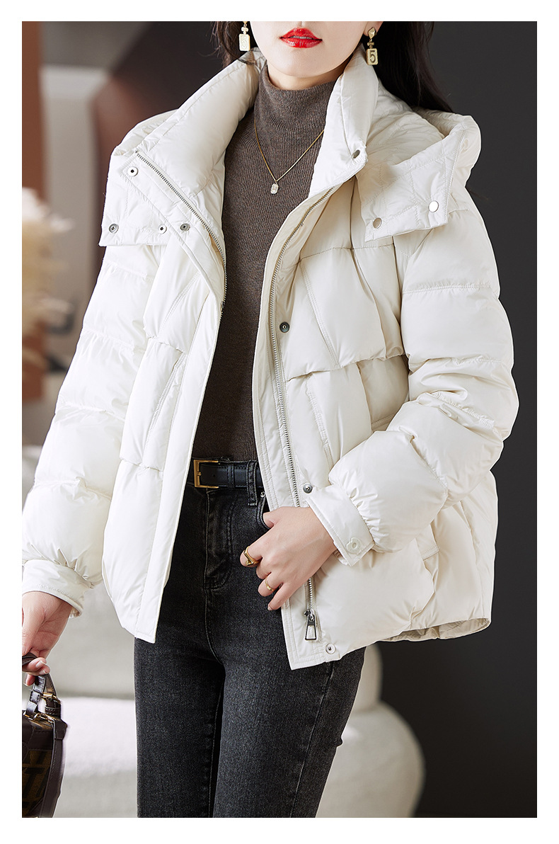 Áo khoác dáng ngắn dành cho mùa lạnh, có mũ trùm tiện lợi. Sản phẩm được làm từ chất liệu lông vũ với lớp bông dày đặc, giữ ấm hiệu quả. Kiểu dáng trẻ trung, phù hợp với nhiều hoàn cảnh sử dụng. Có thể kết hợp cùng quần jeans hoặc váy để tạo vẻ ngoài năng động. Dễ dàng giặt sạch và bảo quản theo hướng dẫn thông thường. | Tên sản phẩm: Áo Khoác Nữ Mũ Liền Dày Ấm Hàng Mùa Xuân Thu Đông - Thời Trang Nữ | Mã sản phẩm: L2913 - Giá: 4.440.000đ | Mã nhà sản xuất: HADA-G06Hình ảnh sản phẩm