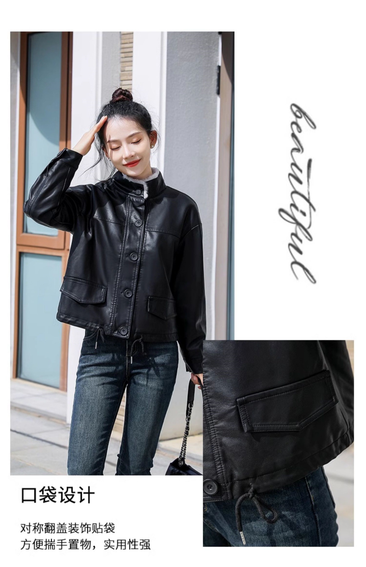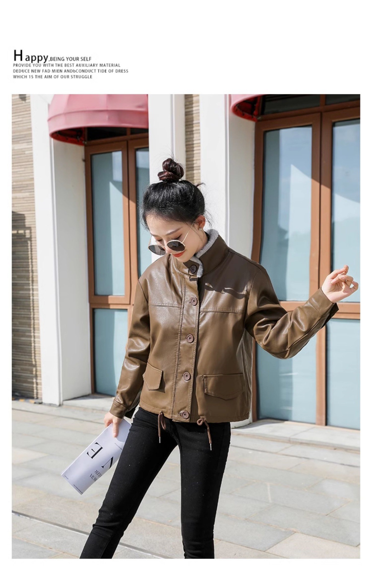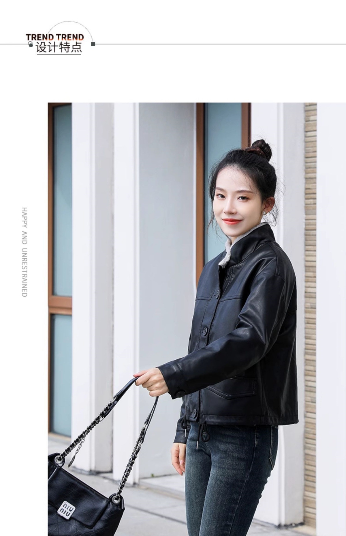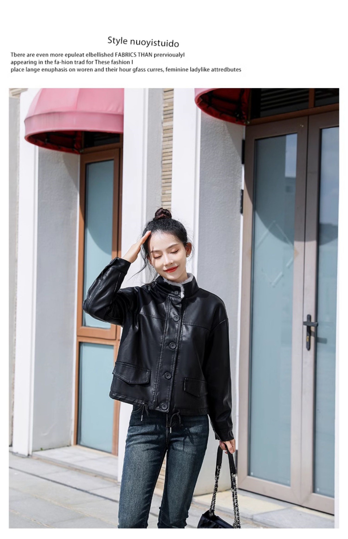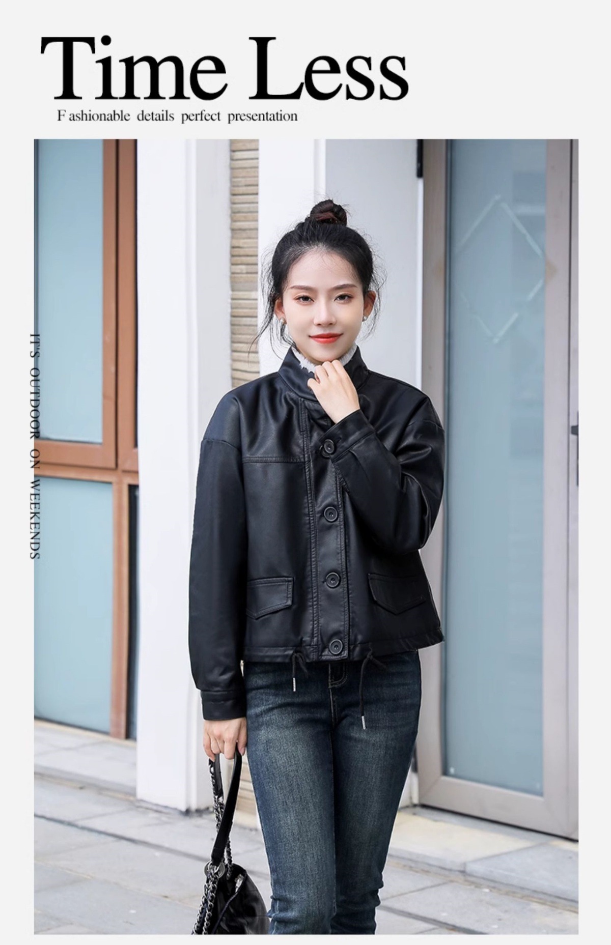 Áo khoác da ngắn dáng dành cho nữ, có lớp lót bông ấm áp bên trong. Kiểu dáng cổ đứng ôm sát, phù hợp cho những người có vóc dáng nhỏ nhắn. Chất liệu da mềm mại giúp giữ nhiệt tốt trong mùa đông. Dễ dàng phối cùng quần jeans hoặc váy liền. Mặc kèm áo thun hoặc áo len bên trong để tạo sự thoải mái và ấm áp. | Tên sản phẩm: Áo Da Nữ Chất Liệu Vải Bông Hàng Mùa Xuân Thu Đông - Thời Trang Nữ | Mã sản phẩm: L3068 - Giá: 1.880.000đ | Mã nhà sản xuất: HADA-G05Hình ảnh sản phẩm