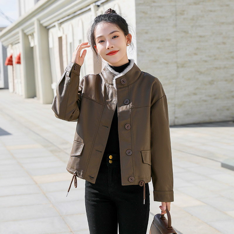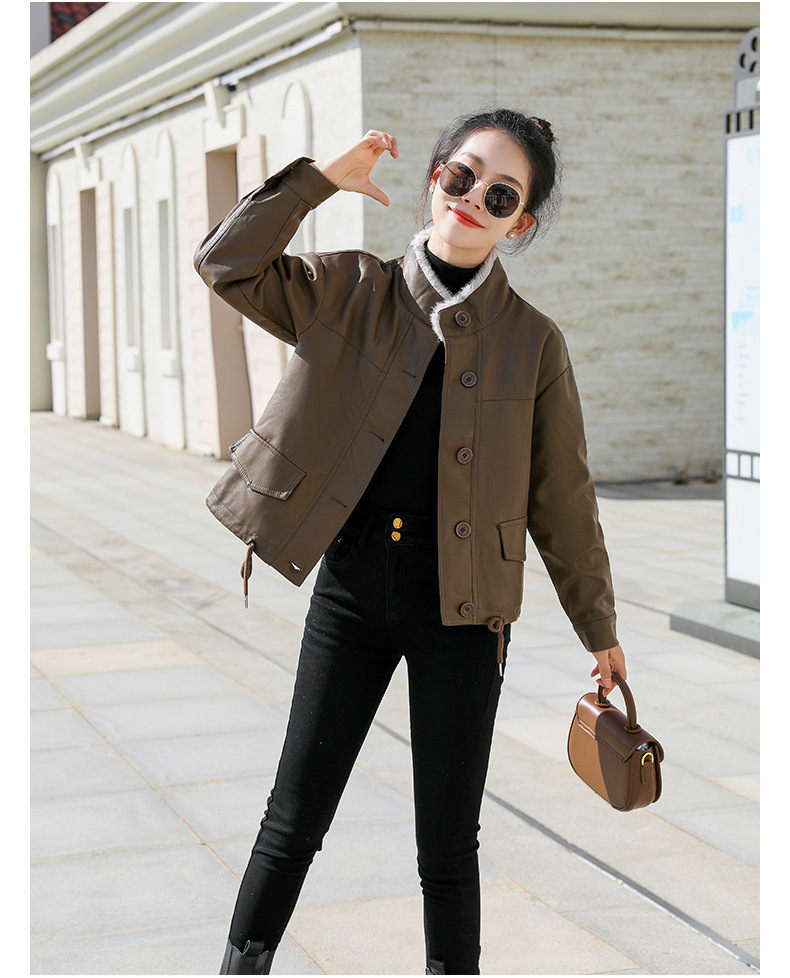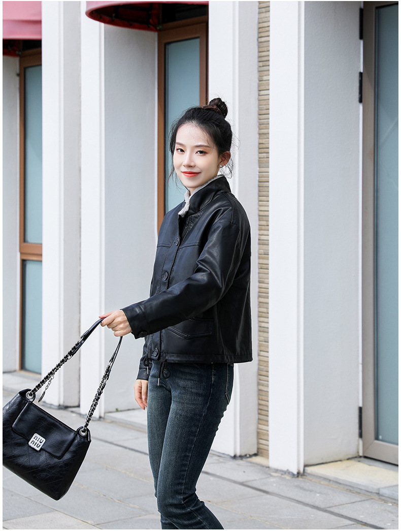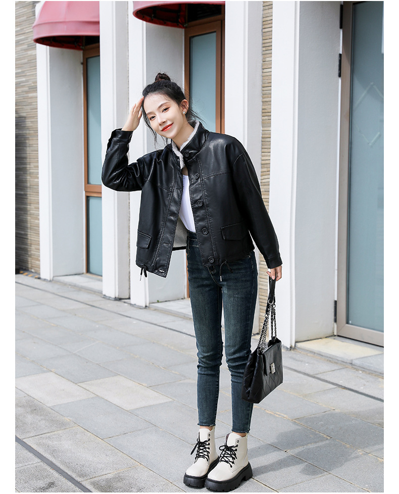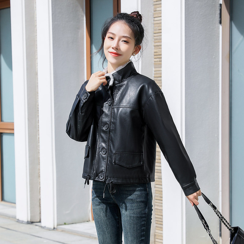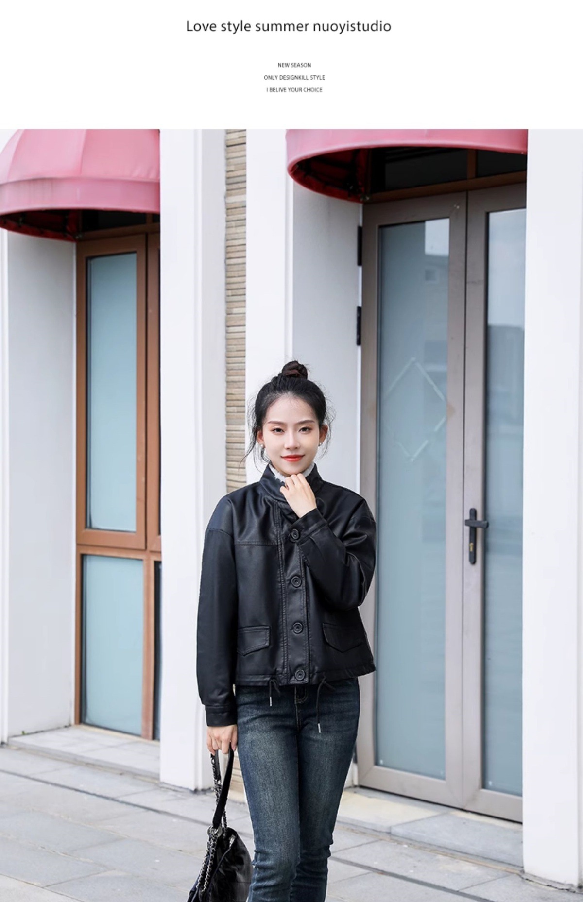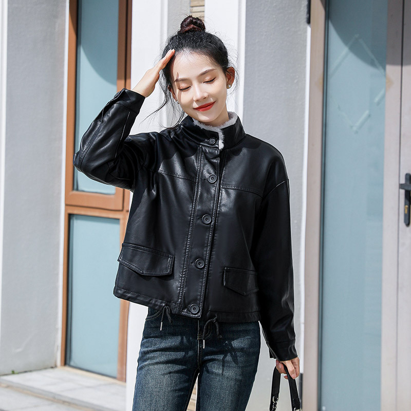 Áo khoác da ngắn dáng dành cho nữ, có lớp lót bông ấm áp bên trong. Kiểu dáng cổ đứng ôm sát, phù hợp cho những người có vóc dáng nhỏ nhắn. Chất liệu da mềm mại giúp giữ nhiệt tốt trong mùa đông. Dễ dàng phối cùng quần jeans hoặc váy liền. Mặc kèm áo thun hoặc áo len bên trong để tạo sự thoải mái và ấm áp. | Tên sản phẩm: Áo Da Nữ Chất Liệu Vải Bông Hàng Mùa Xuân Thu Đông - Thời Trang Nữ | Mã sản phẩm: L3068 - Giá: 1.880.000đ | Mã nhà sản xuất: HADA-G05Hình ảnh sản phẩm
