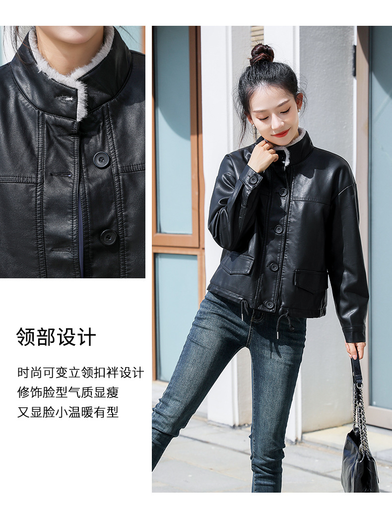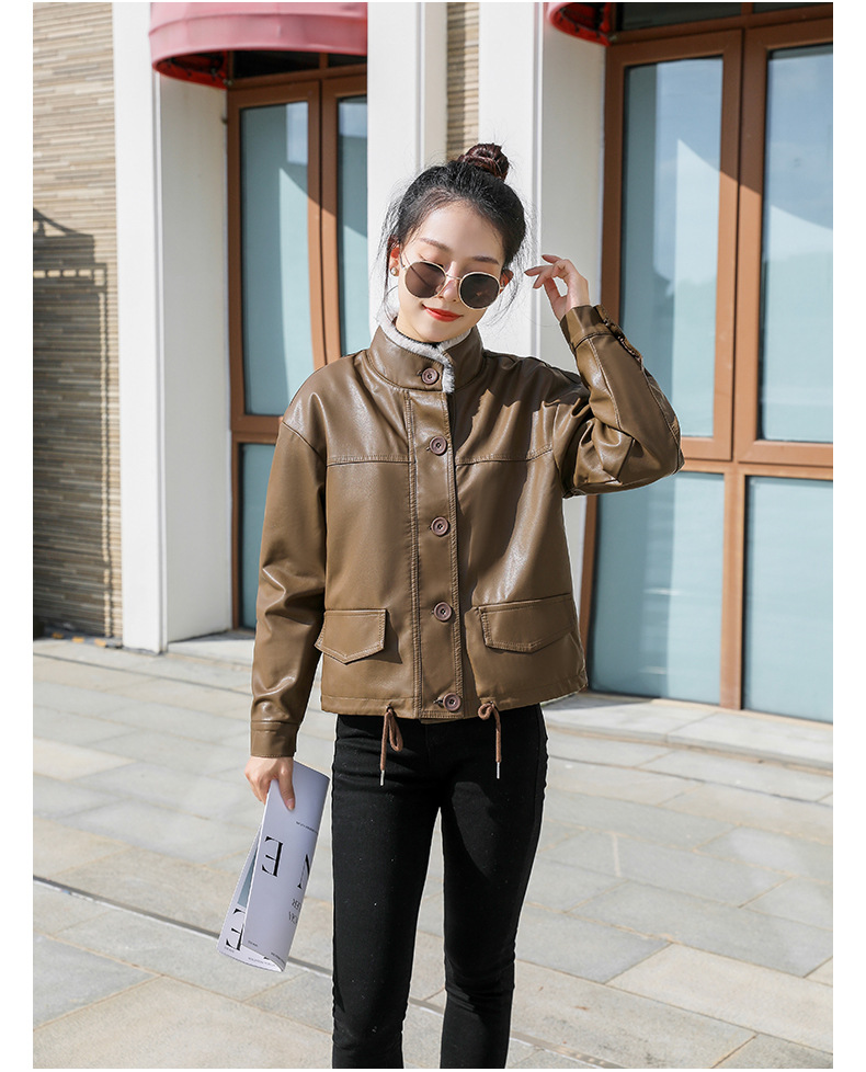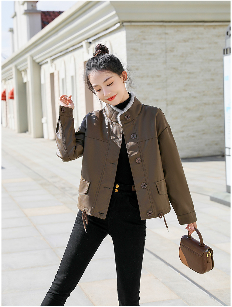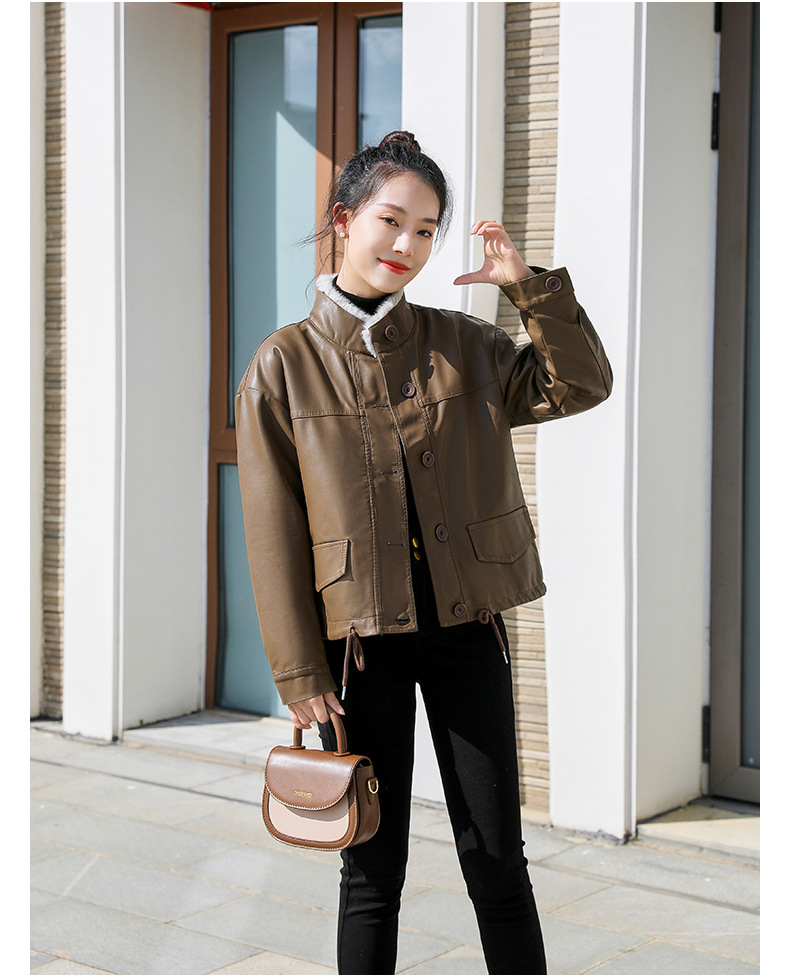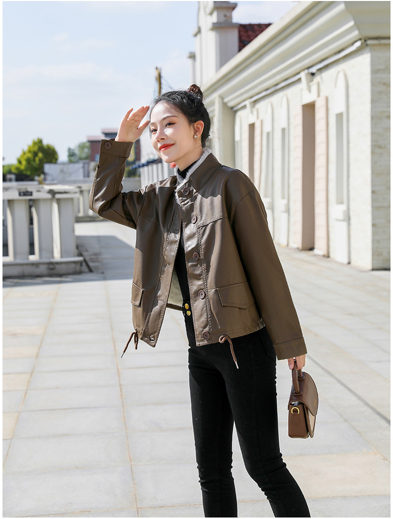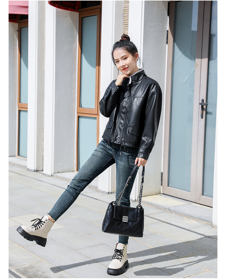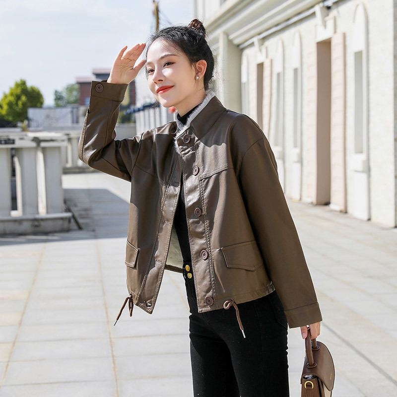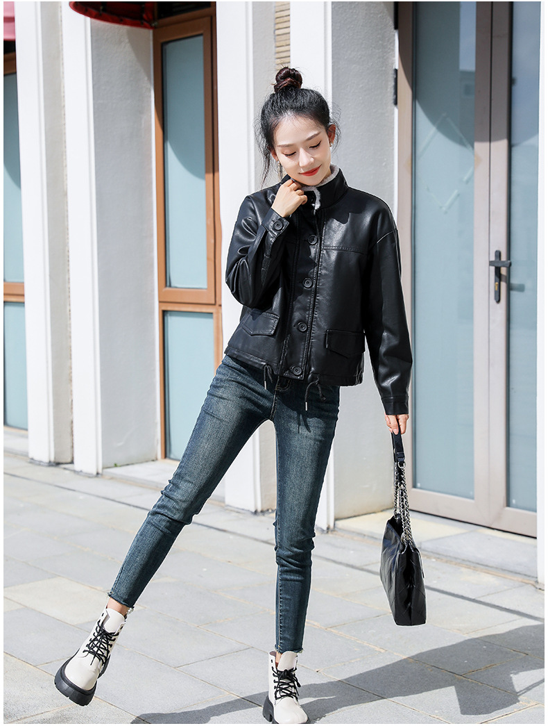 Áo khoác da ngắn dáng dành cho nữ, có lớp lót bông ấm áp bên trong. Kiểu dáng cổ đứng ôm sát, phù hợp cho những người có vóc dáng nhỏ nhắn. Chất liệu da mềm mại giúp giữ nhiệt tốt trong mùa đông. Dễ dàng phối cùng quần jeans hoặc váy liền. Mặc kèm áo thun hoặc áo len bên trong để tạo sự thoải mái và ấm áp. | Tên sản phẩm: Áo Da Nữ Chất Liệu Vải Bông Hàng Mùa Xuân Thu Đông - Thời Trang Nữ | Mã sản phẩm: L3068 - Giá: 1.880.000đ | Mã nhà sản xuất: HADA-G05Hình ảnh sản phẩm