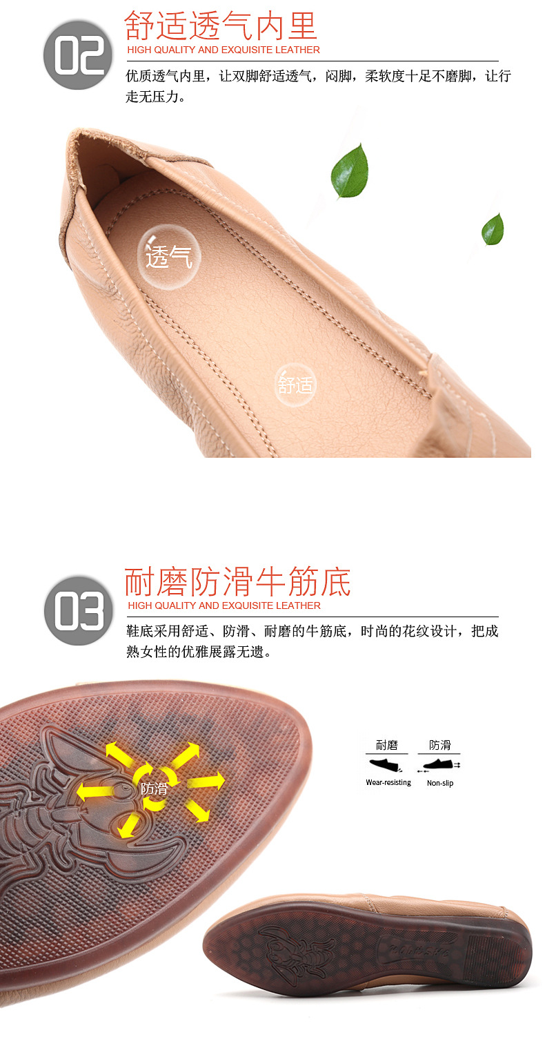Giày được làm từ chất liệu da thật, có độ mềm dẻo và co giãn tốt. Đế giày được thiết kế mỏng nhẹ, tạo cảm giác thoải mái và linh hoạt khi di chuyển. Kiểu dáng đơn giản, dễ phối hợp với nhiều loại trang phục khác nhau. Sản phẩm phù hợp để sử dụng hằng ngày, mang lại sự dễ chịu cho đôi chân. Bạn chỉ cần xỏ chân vào và đi, rất tiện lợi cho các hoạt động thường nhật. | Tên sản phẩm: Giày Da Nữ Chất Liệu Da Bò Big Size Ngoại Cỡ Đế Mềm Hàng Mùa Xuân Thu Đông Trung Niên - Giày Dép Nữ | Mã sản phẩm: L3075 - Giá: 1.020.000đ | Mã nhà sản xuất: YADO-G03Hình ảnh sản phẩm