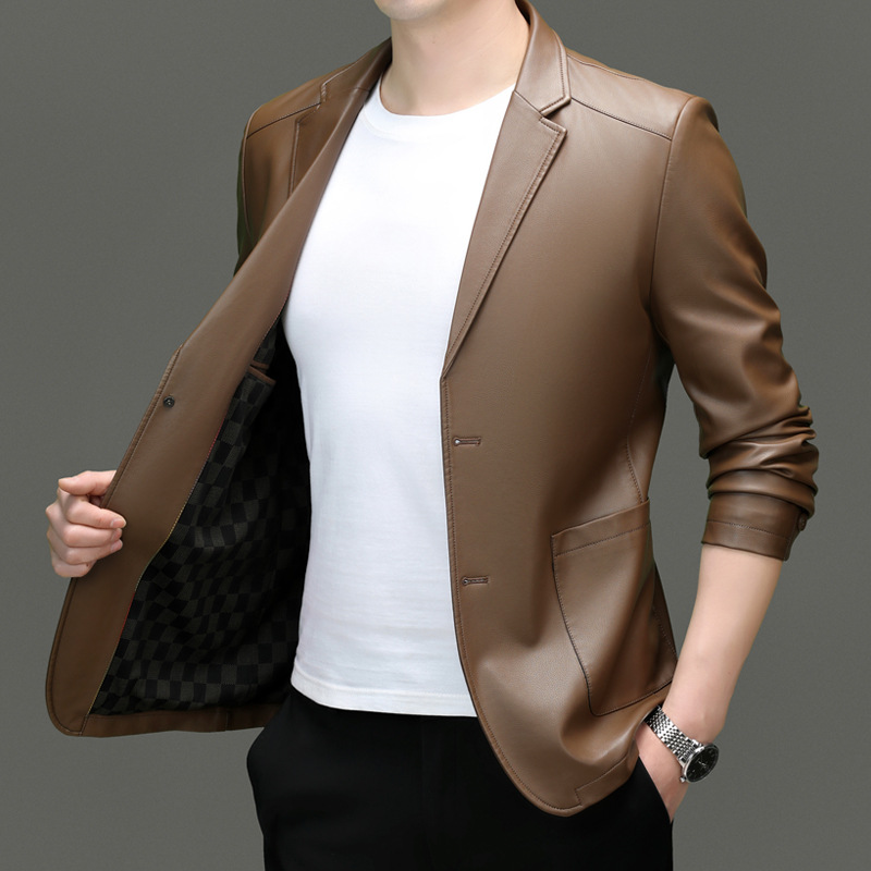 Áo khoác da dành cho nam, có cổ ve áo và hàng cúc đơn, phù hợp mặc trong tiết trời xuân và thu. Chất liệu da tổng hợp mềm mại, tạo cảm giác dễ chịu khi mặc. Kiểu dáng kết hợp giữa đi làm và đi chơi, lịch sự nhưng vẫn thoải mái. Có thể mặc cùng áo thun và quần âu thông thường. Dễ dàng phối đồ cho nhiều dịp khác nhau. | Tên sản phẩm: Áo Da Nam Vest Hàng Mùa Xuân Thu Đông Trung Niên - Thời Trang Nam | Mã sản phẩm: L3187 - Giá: 1.590.000đ | Mã nhà sản xuất: SUDI-G04Hình ảnh sản phẩm