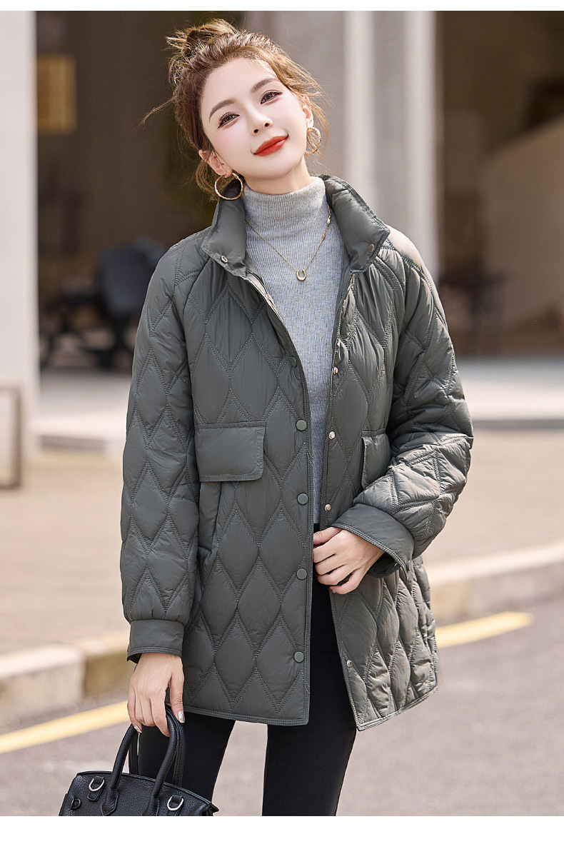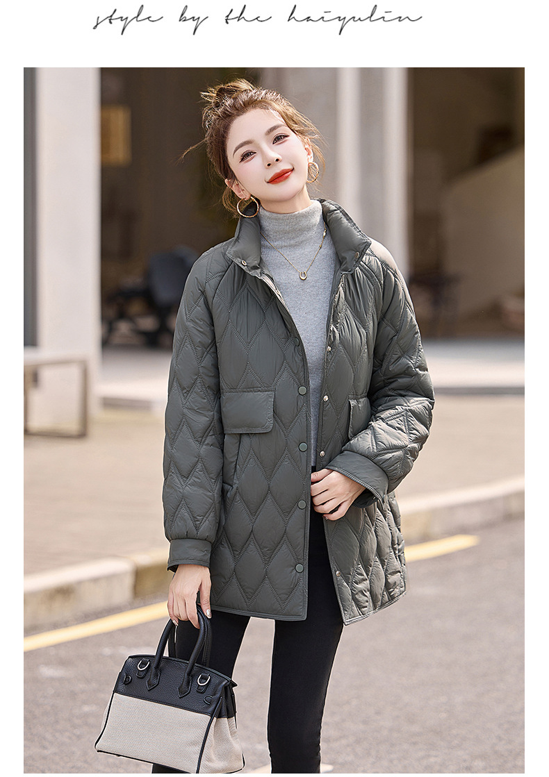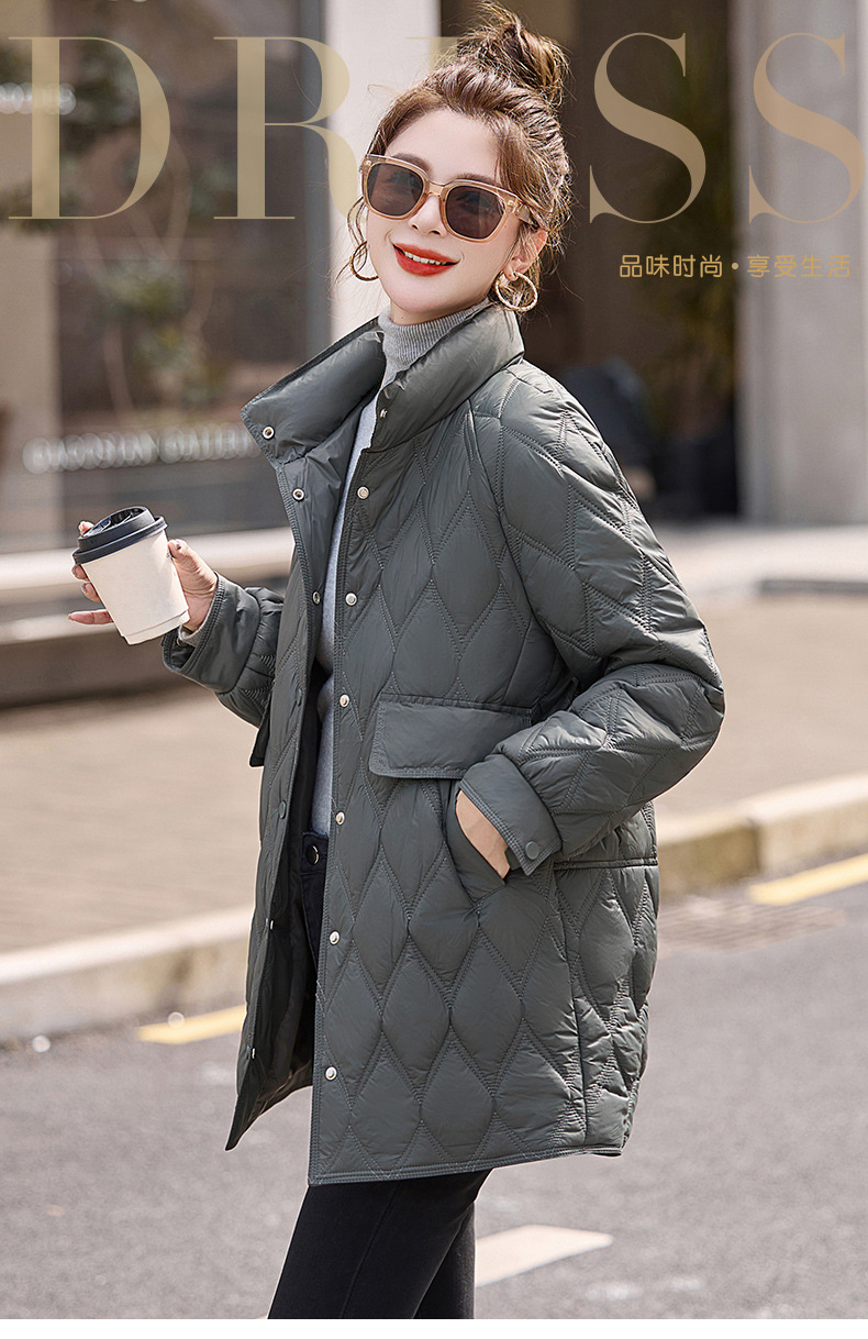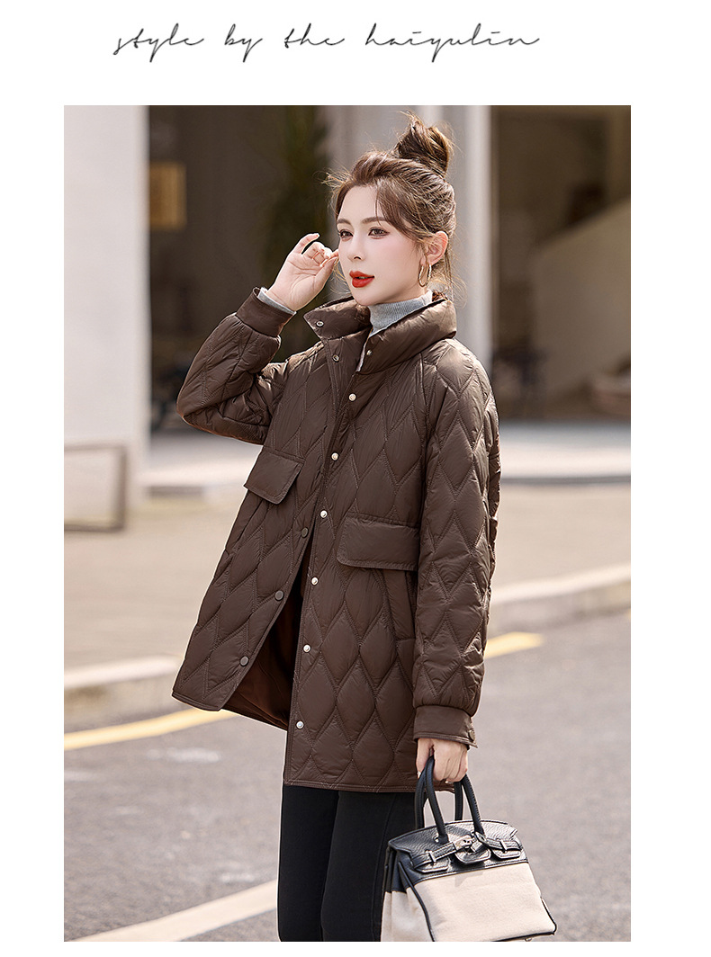 Áo khoác nữ dáng dài, thiết kế dành riêng cho các bạn có chiều cao khiêm tốn. Chất liệu bông và lông vũ nhẹ tạo cảm giác ấm áp, thoải mái mà không hề vướng víu. Kiểu áo có các đường chần hình quả trám tinh tế, giúp giữ nhiệt tốt hơn. Mặc kèm áo thun hoặc áo len bên trong để giữ ấm vào những ngày đông giá lạnh. Phù hợp khi đi làm, đi chơi hay dạo phố. | Tên sản phẩm: Áo Khoác Nữ Chất Liệu Vải Bông Áo Khoác Bông Kẻ Caro Kẻ Caro Hàng Mùa Xuân Thu Đông - Thời Trang Nữ | Mã sản phẩm: L3224 - Giá: 1.910.000đ | Mã nhà sản xuất: HADA-G05Hình ảnh sản phẩm