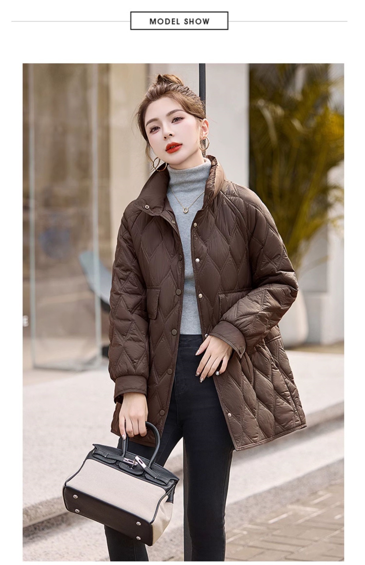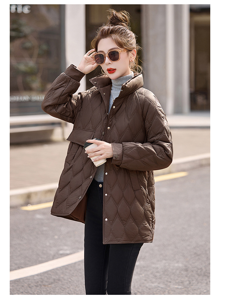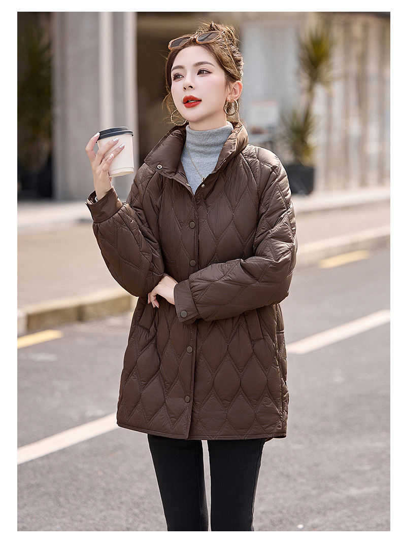 Áo khoác nữ dáng dài, thiết kế dành riêng cho các bạn có chiều cao khiêm tốn. Chất liệu bông và lông vũ nhẹ tạo cảm giác ấm áp, thoải mái mà không hề vướng víu. Kiểu áo có các đường chần hình quả trám tinh tế, giúp giữ nhiệt tốt hơn. Mặc kèm áo thun hoặc áo len bên trong để giữ ấm vào những ngày đông giá lạnh. Phù hợp khi đi làm, đi chơi hay dạo phố. | Tên sản phẩm: Áo Khoác Nữ Chất Liệu Vải Bông Áo Khoác Bông Kẻ Caro Kẻ Caro Hàng Mùa Xuân Thu Đông - Thời Trang Nữ | Mã sản phẩm: L3224 - Giá: 1.910.000đ | Mã nhà sản xuất: HADA-G05Hình ảnh sản phẩm