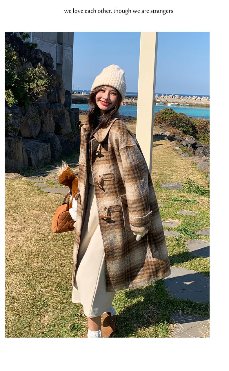 Áo khoác dáng dài có họa tiết ô vuông, điểm nhấn là hàng cúc gỗ độc đáo. Thiết kế này giúp tôn dáng, che bớt khuyết điểm cơ thể một cách tinh tế. Chất áo dày dặn, giữ ấm tốt cho những ngày thu đông. Bạn có thể mặc cùng quần jeans và áo len để tạo vẻ ngoài ấm áp, thoải mái. Đây là mẫu áo thiết thực cho mùa lạnh. | Tên sản phẩm: Áo Khoác Nữ Dài Quá Gối Kẻ Caro Kẻ Caro Hàng Mùa Xuân Thu Đông - Thời Trang Nữ | Mã sản phẩm: L3329 - Giá: 3.190.000đ | Mã nhà sản xuất: HADA-G06Hình ảnh sản phẩm