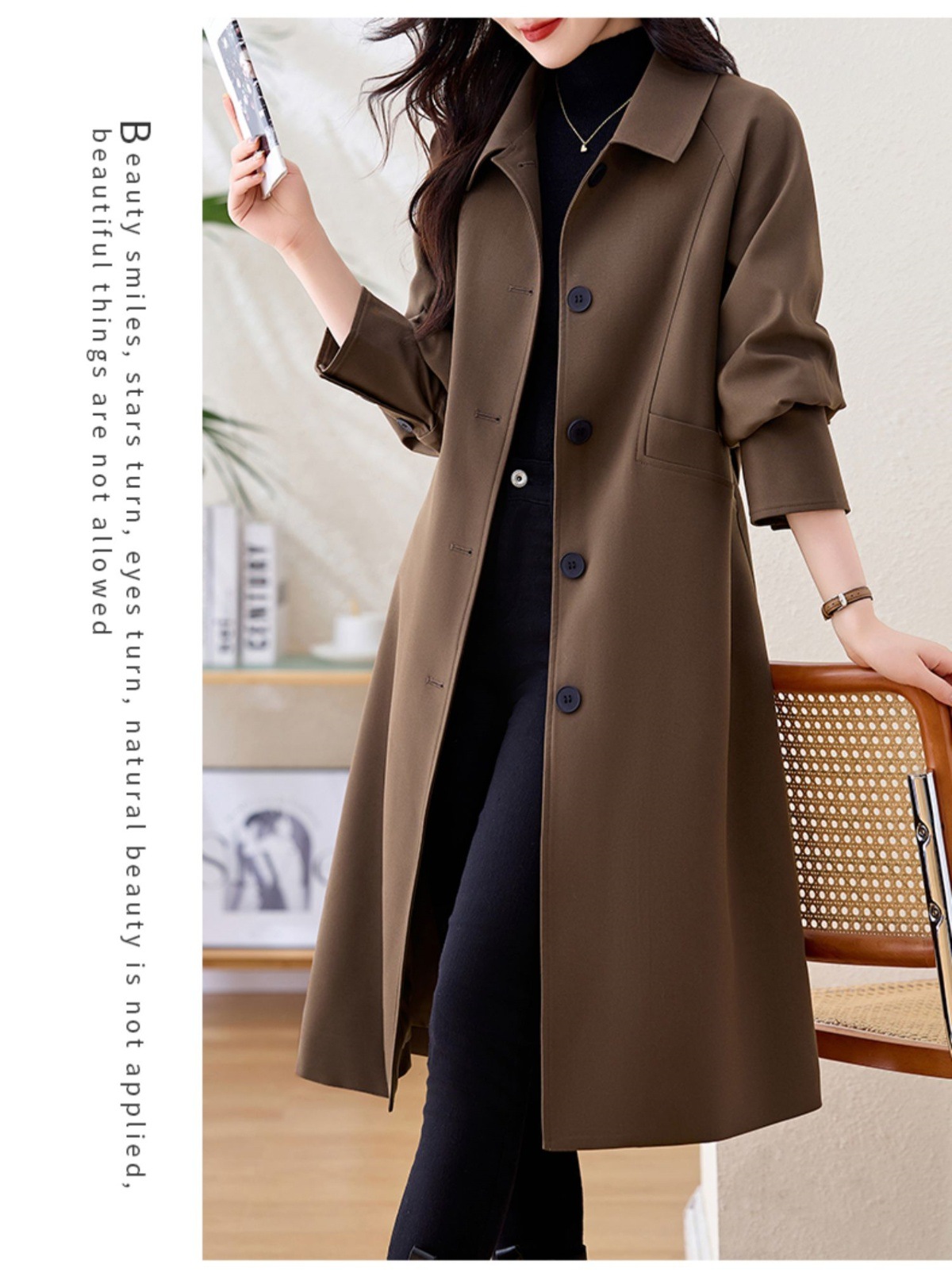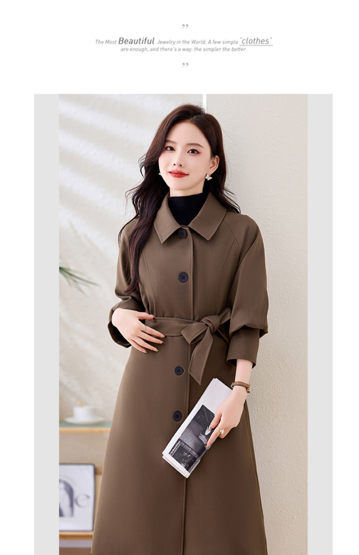 Áo khoác dáng dài cho nữ, thiết kế cho tiết trời thu mát mẻ. Kiểu dáng dài vừa phải giúp tôn dáng, phù hợp cho nhiều vóc người. Chất liệu nhẹ, mềm mại tạo cảm giác thoải mái khi mặc. Phong cách đơn giản, dễ phối đồ với nhiều trang phục khác nhau như quần jeans hay váy liền. Có thể mặc trong những ngày se lạnh hoặc làm áo khoác nhẹ khi đi làm, dạo phố. | Tên sản phẩm: Áo Khoác Nữ Hàng Mùa Xuân Thu Đông Phong Cách Hàn Quốc - Thời Trang Nữ | Mã sản phẩm: L3467 - Giá: 2.210.000đ | Mã nhà sản xuất: WODIG-G05Hình ảnh sản phẩm