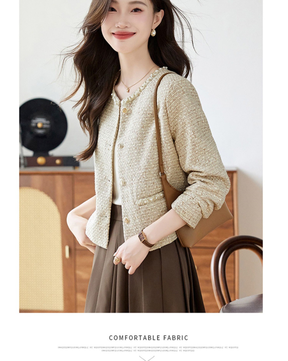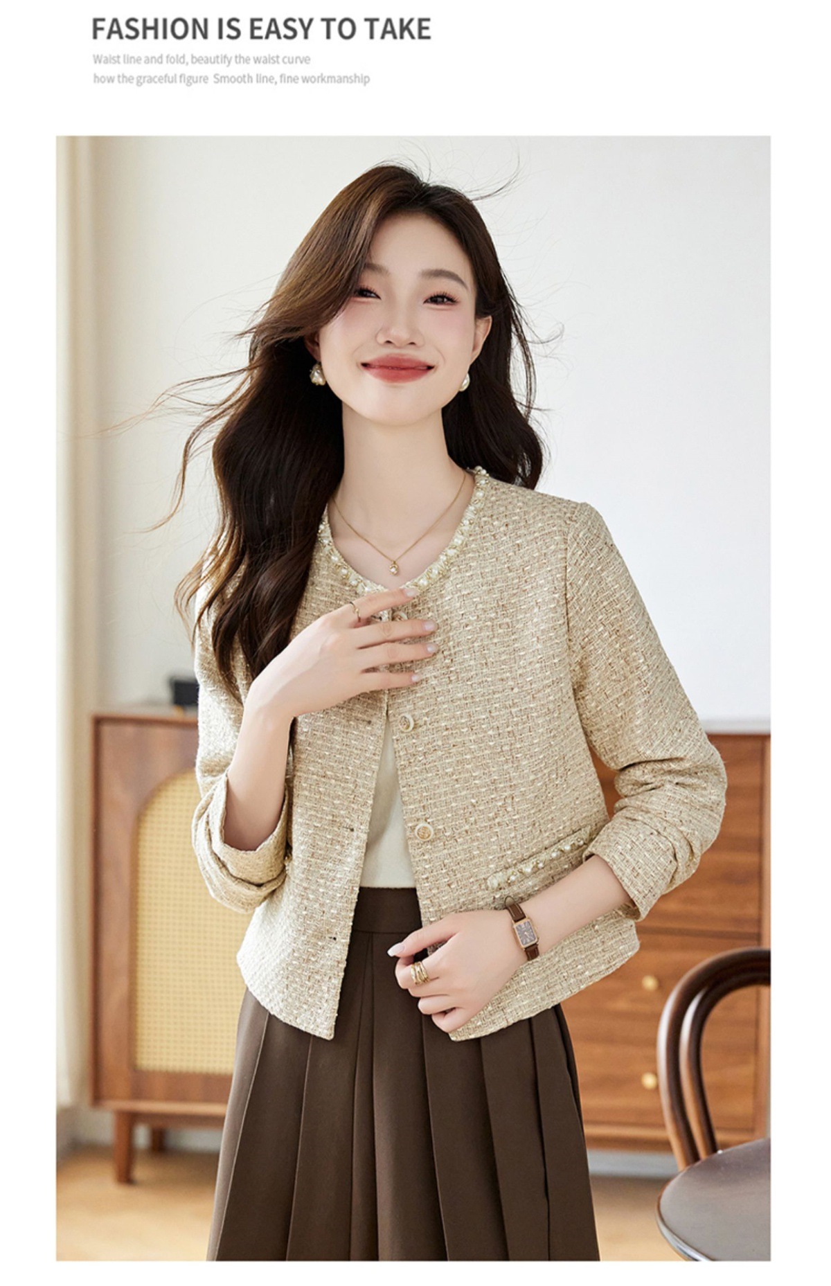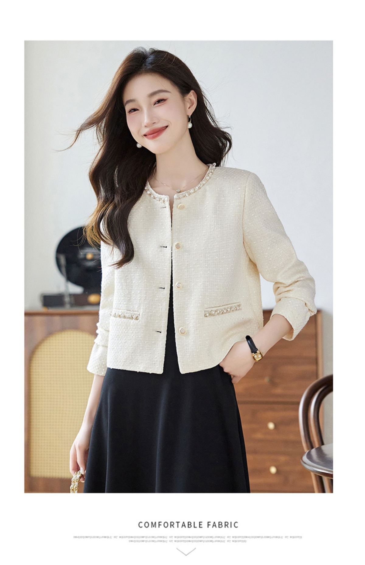 Áo khoác ngắn màu trắng dành cho nữ, thiết kế nhẹ nhàng phù hợp tiết trời xuân thu. Kiểu dáng ôm vừa vặn giúp tôn dáng, phù hợp cho nhiều dịp gặp mặt. Chất liệu vải mềm mại, thoáng mát, tạo cảm giác dễ chịu khi mặc. Có thể phối cùng quần tây hoặc chân váy để tạo nên những bộ trang phục thanh lịch. Món đồ giúp bạn trông tươi tắn và năng động hơn. | Tên sản phẩm: Áo Khoác Nữ Trông Trẻ Hơn Tuổi Hàng Mùa Xuân Thu Đông - Thời Trang Nữ | Mã sản phẩm: L3485 - Giá: 1.730.000đ | Mã nhà sản xuất: WODIG-G05Hình ảnh sản phẩm