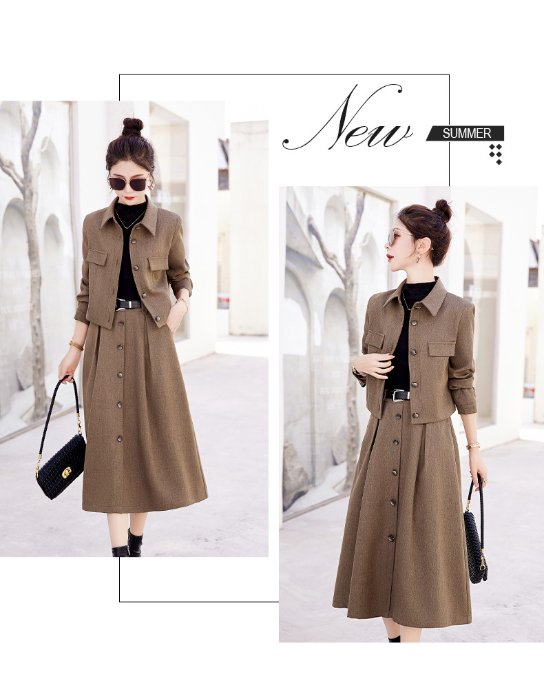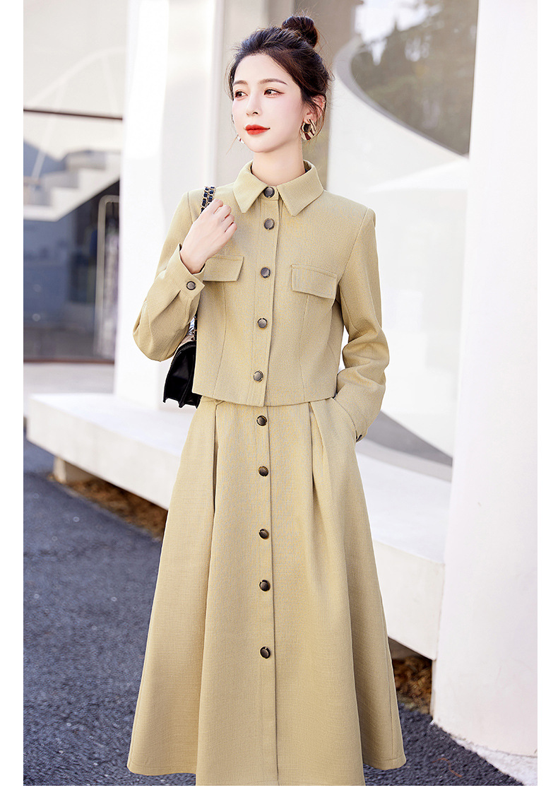 Bộ trang phục hai mảnh này gồm áo khoác kiểu dáng vừa vặn và chân váy dài đến gối, rất phù hợp cho thời tiết mùa thu. Chất liệu vải mềm mại giữ ấm nhẹ nhàng. Kiểu dáng thanh lịch, kết hợp hài hòa giữa nét trẻ trung và dịu dàng. Có thể mặc nguyên bộ để tạo vẻ chỉn chu, hoặc phối với các trang phục khác. Phù hợp cho nhiều dịp sinh hoạt hằng ngày. | Tên sản phẩm: Áo Khoác Nữ Cả Bộ 2 Món Hàng Mùa Xuân Thu Đông - Thời Trang Nữ | Mã sản phẩm: L3499 - Giá: 2.070.000đ | Mã nhà sản xuất: WODIG-G05Hình ảnh sản phẩm