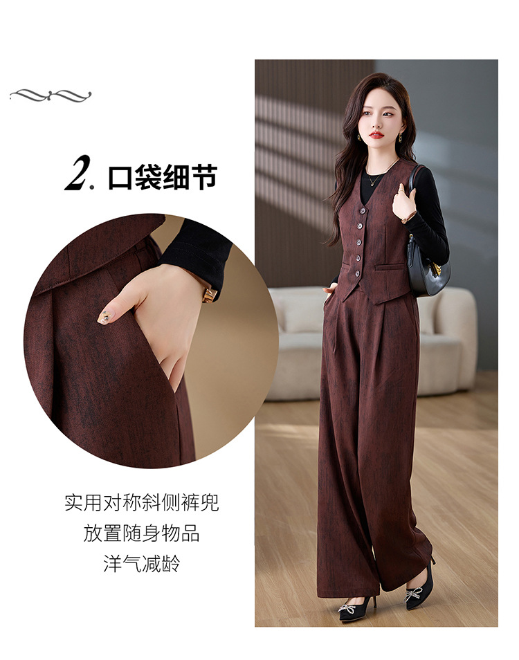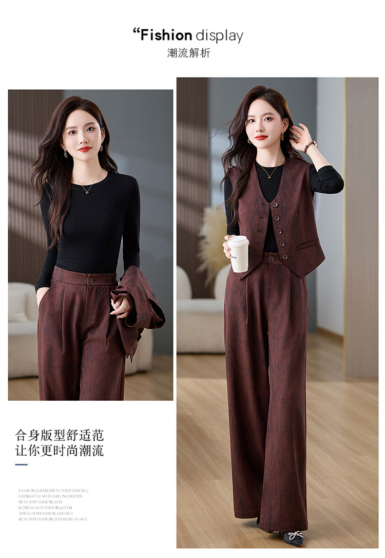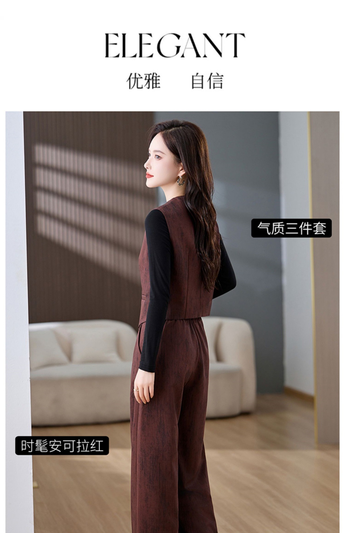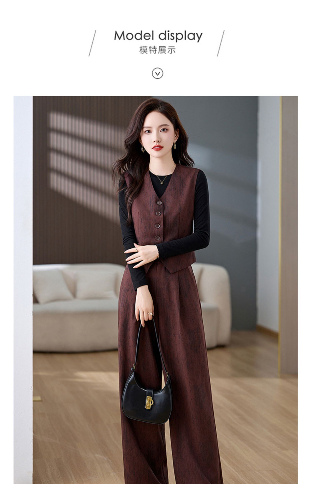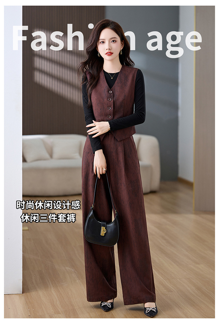 Bộ trang phục nữ này gồm ba món phối cùng nhau rất hài hòa. Áo khoác dạng vét mặc bên ngoài, kết hợp cùng quần ống rộng tạo dáng thanh thoát, giúp tôn lên vóc dáng. Kiểu dáng trẻ trung, hợp thời. Chất vải mềm mại, thoải mái khi mặc. Có thể phối với áo thun bên trong để tạo nên bộ trang phục hoàn chỉnh, phù hợp cho nhiều dịp đi chơi, gặp gỡ hàng ngày. | Tên sản phẩm: Đồ Bộ Nữ Cả Bộ 3 Món Trông Trẻ Hơn Tuổi Hàng Mùa Xuân Thu Đông - Thời Trang Nữ | Mã sản phẩm: L3525 - Giá: 2.500.000đ | Mã nhà sản xuất: WODIG-G05Hình ảnh sản phẩm