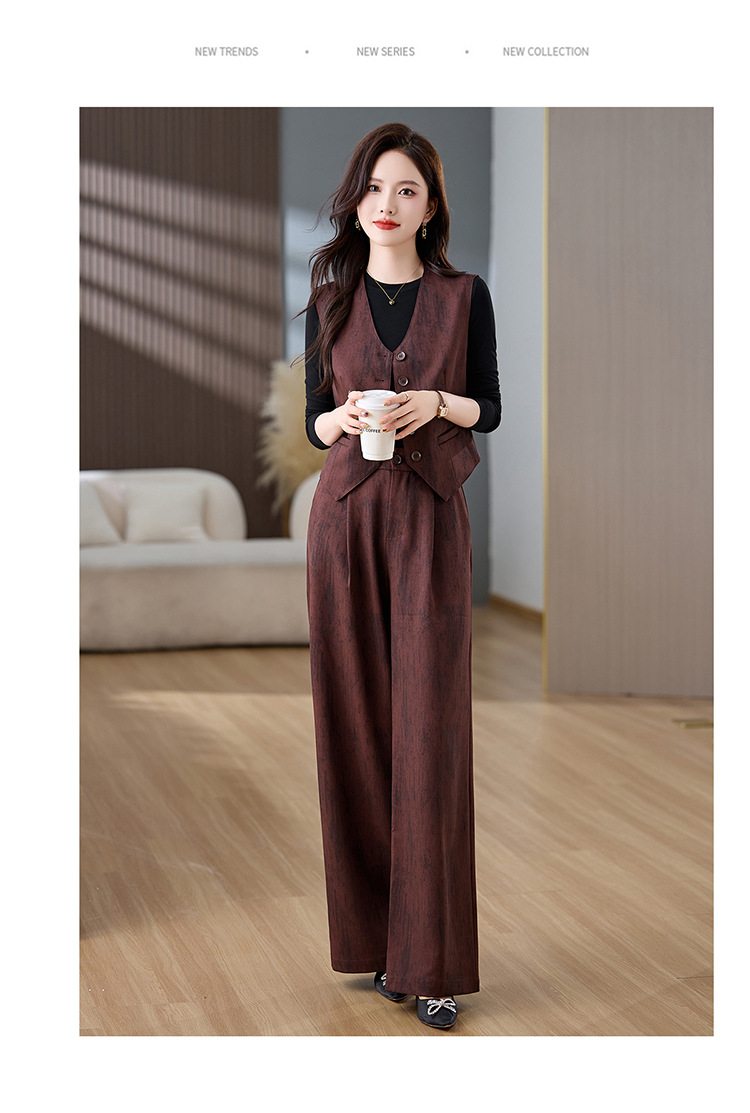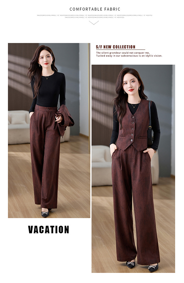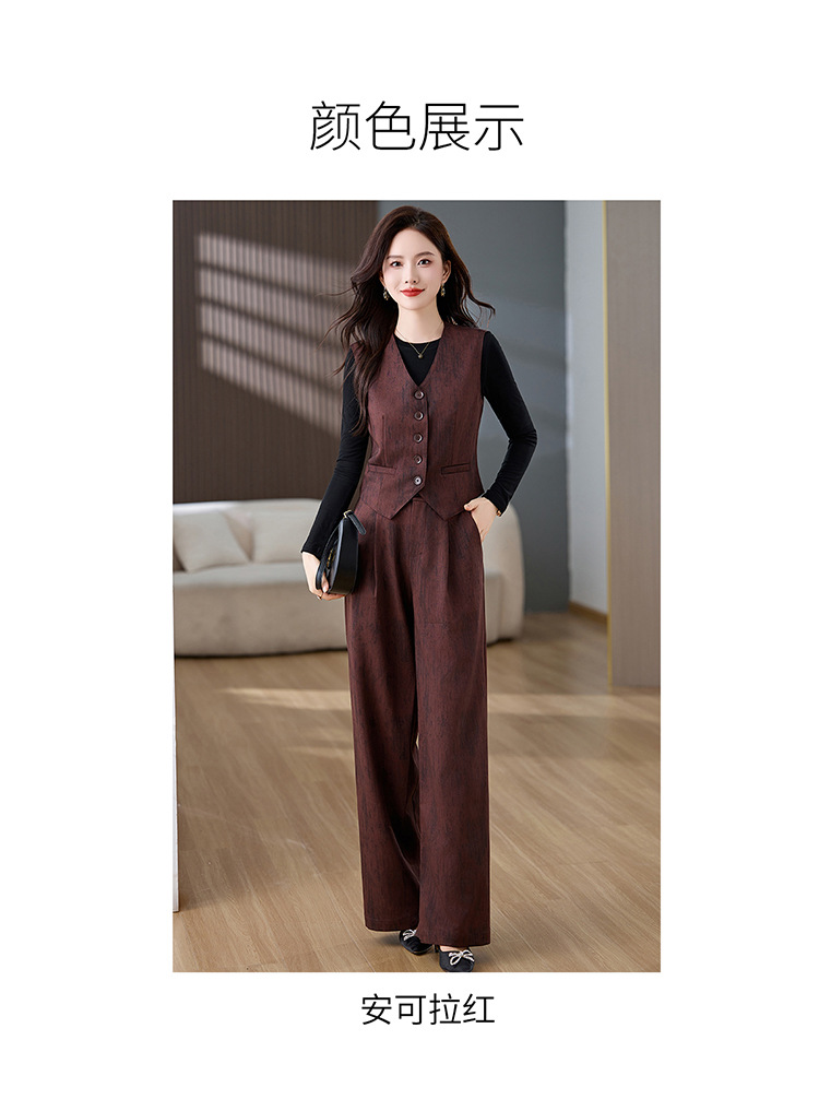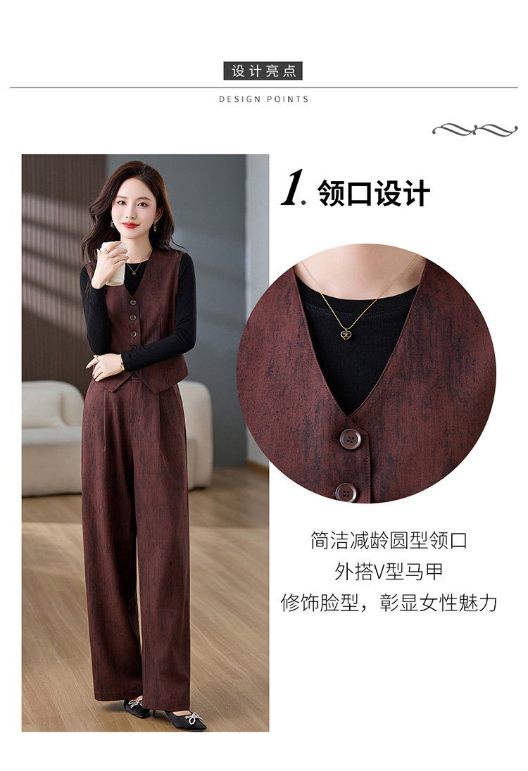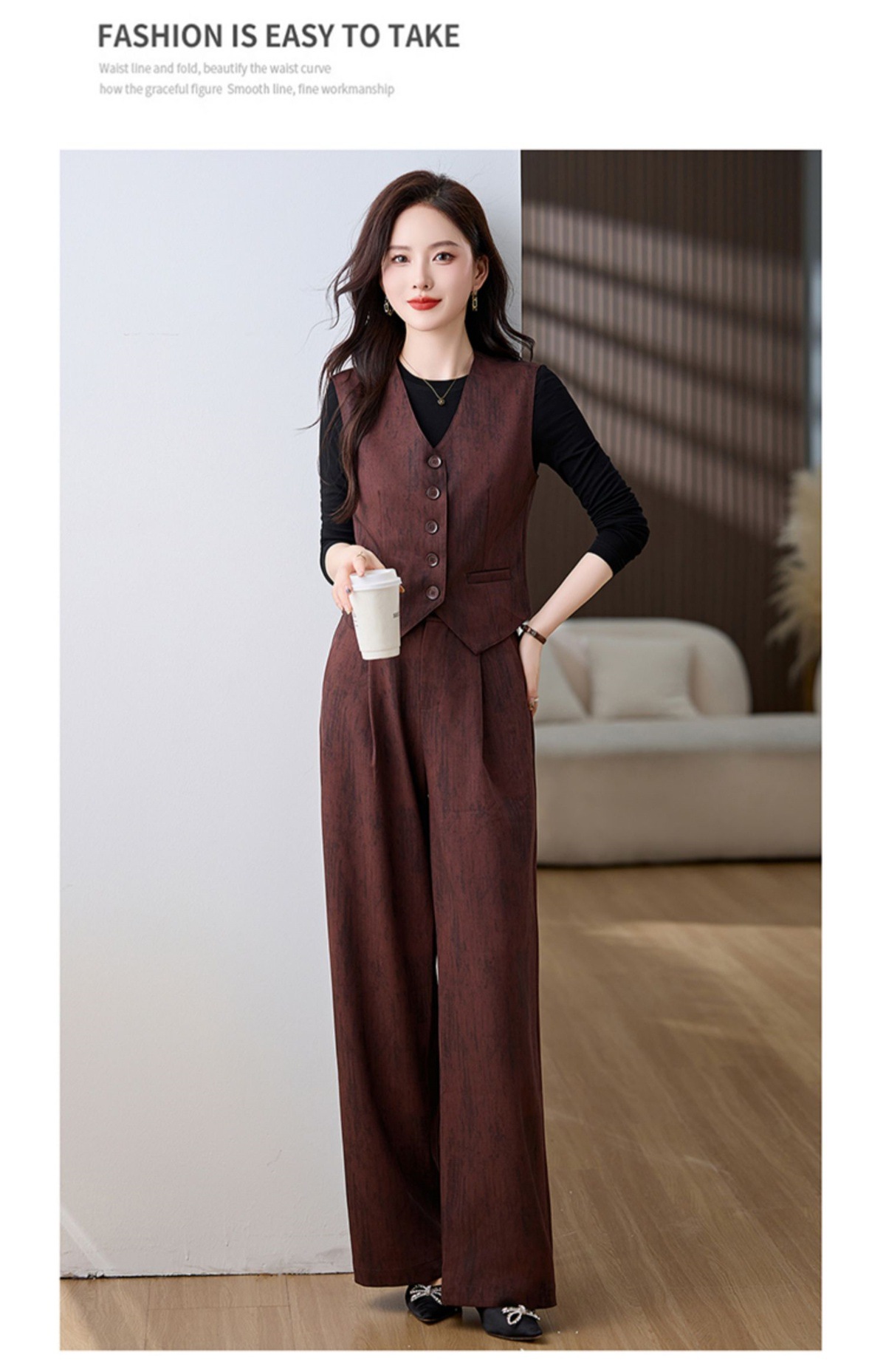 Bộ trang phục nữ này gồm ba món phối cùng nhau rất hài hòa. Áo khoác dạng vét mặc bên ngoài, kết hợp cùng quần ống rộng tạo dáng thanh thoát, giúp tôn lên vóc dáng. Kiểu dáng trẻ trung, hợp thời. Chất vải mềm mại, thoải mái khi mặc. Có thể phối với áo thun bên trong để tạo nên bộ trang phục hoàn chỉnh, phù hợp cho nhiều dịp đi chơi, gặp gỡ hàng ngày. | Tên sản phẩm: Đồ Bộ Nữ Cả Bộ 3 Món Trông Trẻ Hơn Tuổi Hàng Mùa Xuân Thu Đông - Thời Trang Nữ | Mã sản phẩm: L3525 - Giá: 2.500.000đ | Mã nhà sản xuất: WODIG-G05Hình ảnh sản phẩm