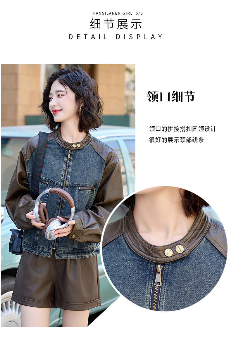 Áo khoác da kết hợp vải denim, lấy cảm hứng từ phong cách cổ điển nước ngoài. Thiết kế ngắn, ôm vừa vặn, phù hợp cho những người có vóc dáng nhỏ nhắn. Sản phẩm pha trộn giữa chất liệu da và vải bò, tạo điểm nhấn riêng biệt. Bạn có thể mặc cùng quần jeans và áo thun để tạo vẻ ngoài cá tính. Phù hợp sử dụng trong tiết trời mát mẻ của mùa thu. | Tên sản phẩm: Áo Da Nữ Chất Liệu Jean Bò Hàng Mùa Xuân Thu Đông Phục Cổ Cổ Điển - Thời Trang Nữ | Mã sản phẩm: L3528 - Giá: 1.730.000đ | Mã nhà sản xuất: WODIG-G05Hình ảnh sản phẩm