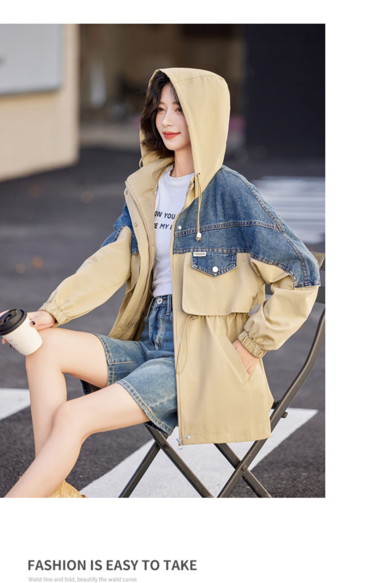 Áo khoác mỏng ngắn dáng kiểu mẫu mới, kết hợp chất vải bò bền chắc với phần thân mềm mại. Thiết kế có mũ trùm tiện lợi cùng dây rút điều chỉnh ở eo, tạo kiểu dáng cân đối, phù hợp với nhiều dáng người. Chất liệu thoải mái cho những ngày tiết trời mát mẻ. Mặc kèm áo thun và quần jeans để có vẻ ngoại trẻ trung, năng động. | Tên sản phẩm: Áo Khoác Nữ Chất Liệu Jean Bò Mũ Liền Hàng Mùa Xuân Thu Đông Phong Cách Hàn Quốc - Thời Trang Nữ | Mã sản phẩm: L3540 - Giá: 2.020.000đ | Mã nhà sản xuất: WODIG-G05Hình ảnh sản phẩm