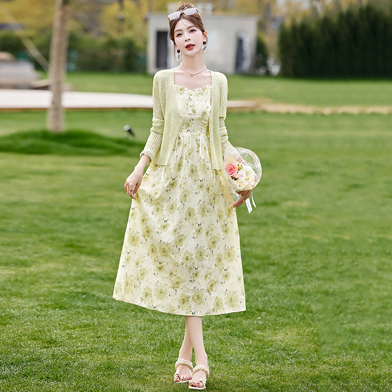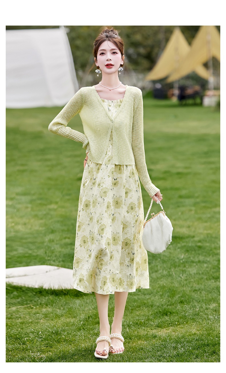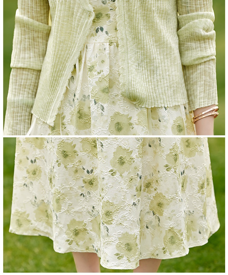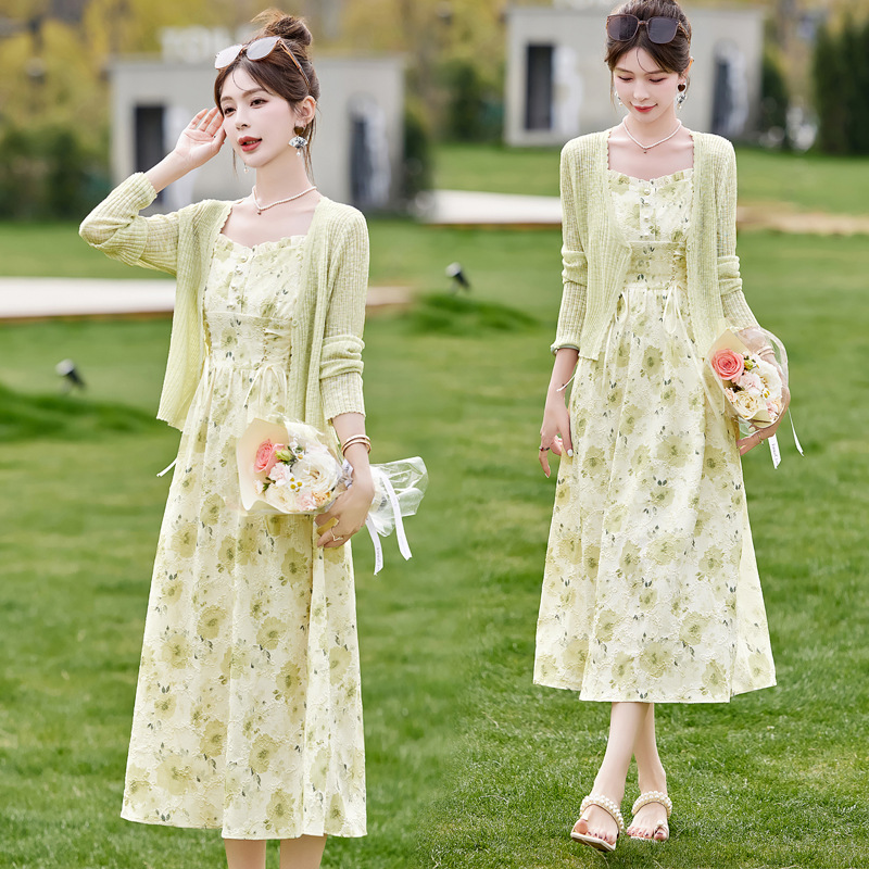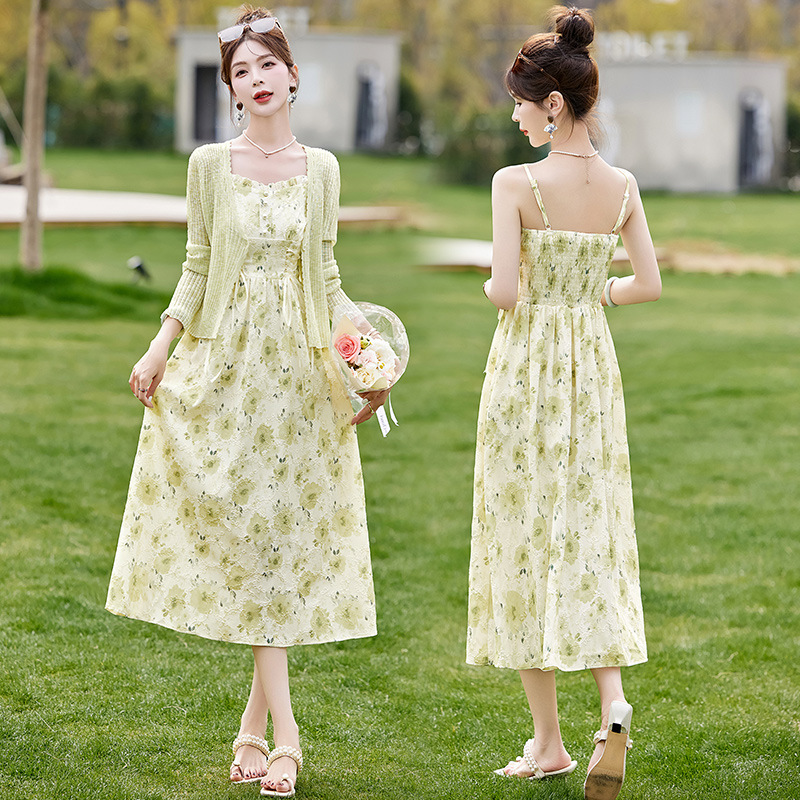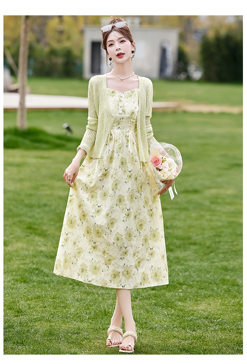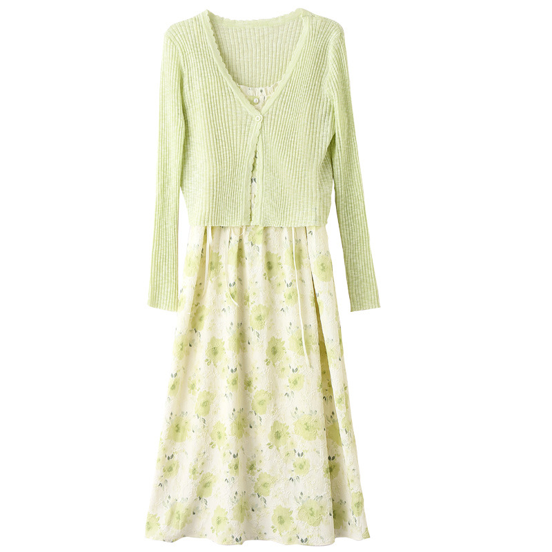Bộ trang phục hai mảnh này gồm một đầm mát mẻ và áo khoác mỏng. Đầm có dây đeo, form ôm nhẹ ở eo tôn dáng. Hoa văn nhỏ xinh điểm xuyết trên nền vải. Áo khoác dạng dệt kim mỏng nhẹ, mặc ngoài cùng đầm rất hợp. Bộ này phù hợp cho những ngày hè, dễ phối đồ và tiện lợi khi mặc. | Tên sản phẩm: Áo Hai Dây Nữ Áo Len Dáng Dộng Cả Bộ 2 Món Họa Tiết Hoa Hai Dây Hở Vai Hàng Mùa Hè - Thời Trang Nữ | Mã sản phẩm: L3543 - Giá: 1.680.000đ | Mã nhà sản xuất: WODIG-G05Hình ảnh sản phẩm