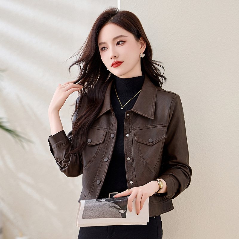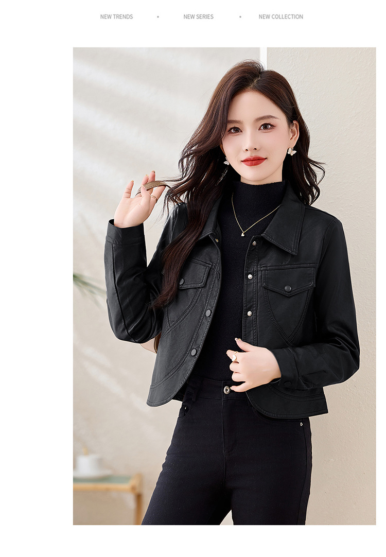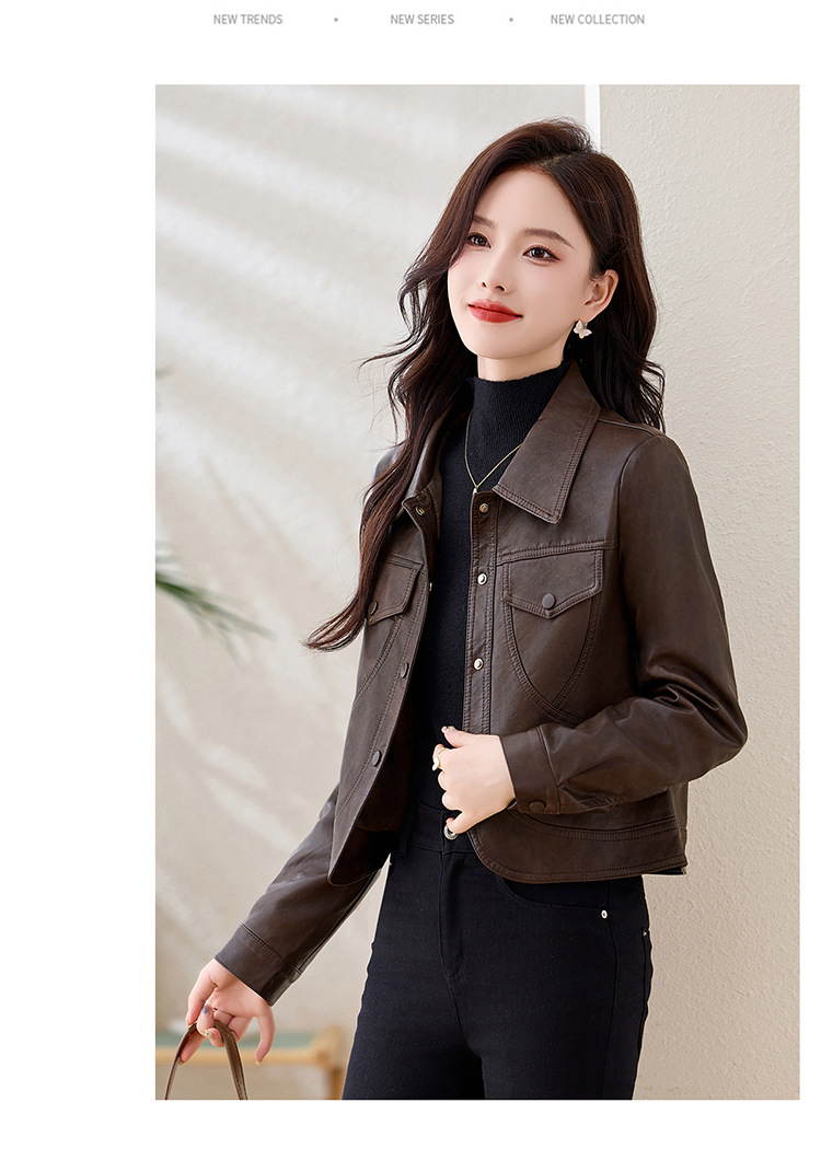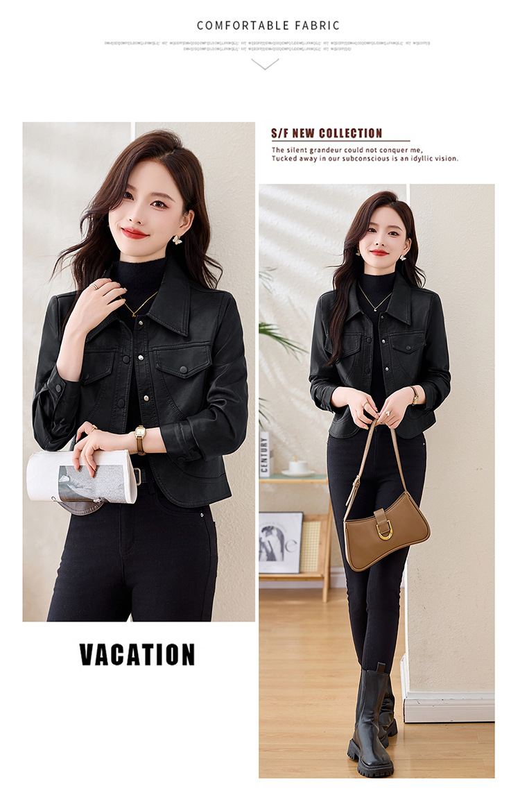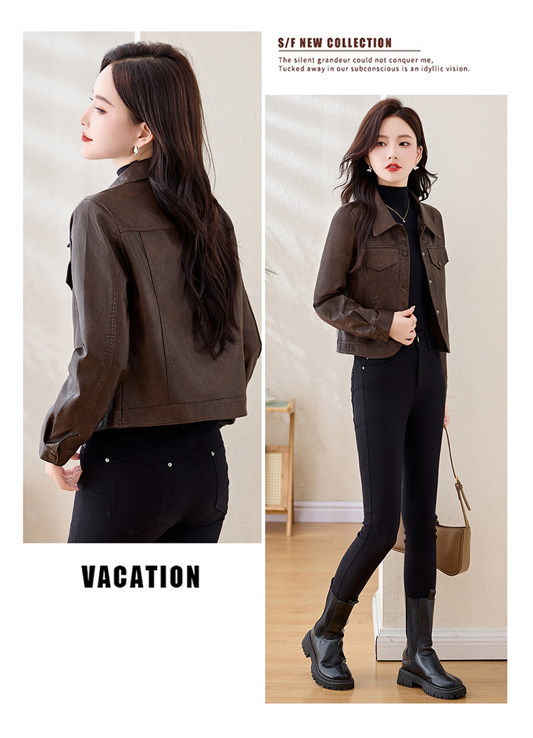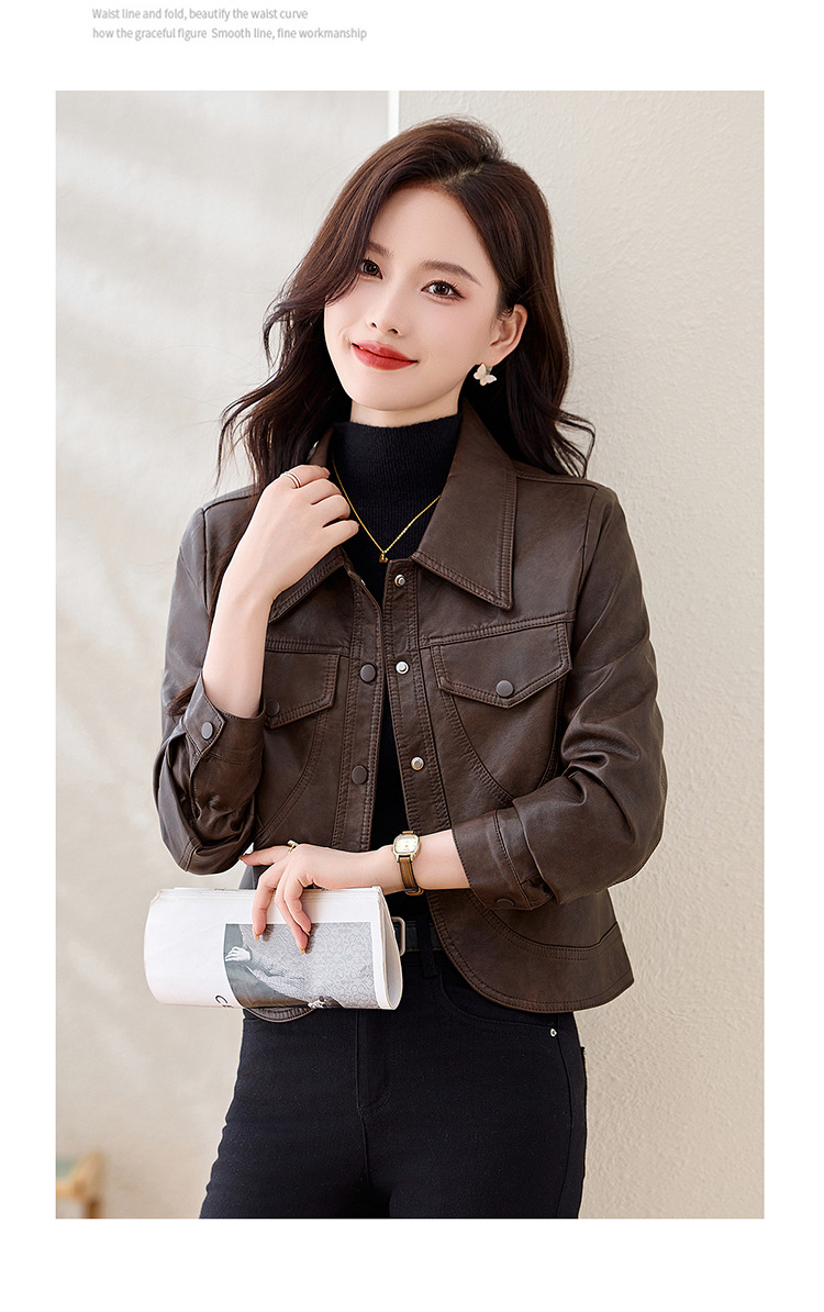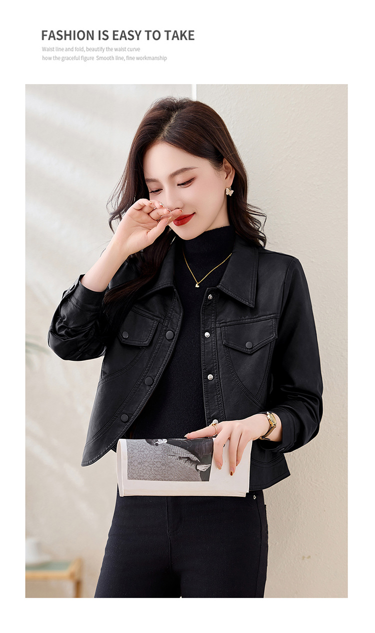 Áo khoác da kiểu ngắn dành cho nữ, thiết kế ôm sát tôn dáng. Kiểu dáng phối hợp phong cách lịch sự và năng động, phù hợp cho tiết trời mùa xuân và mùa thu. Chất liệu da mềm mại, mang đến sự thoải mái khi mặc. Bạn có thể kết hợp dễ dàng với nhiều loại trang phục như quần jeans, váy hay áo thun. Sản phẩm thích hợp cho nhiều hoàn cảnh sử dụng hằng ngày, từ đi làm đến dạo phố. | Tên sản phẩm: Áo Da Nữ Dáng Ôm Hàng Mùa Xuân Thu Đông Phục Cổ Cổ Điển - Thời Trang Nữ | Mã sản phẩm: L3566 - Giá: 1.640.000đ | Mã nhà sản xuất: WODIG-G05Hình ảnh sản phẩm