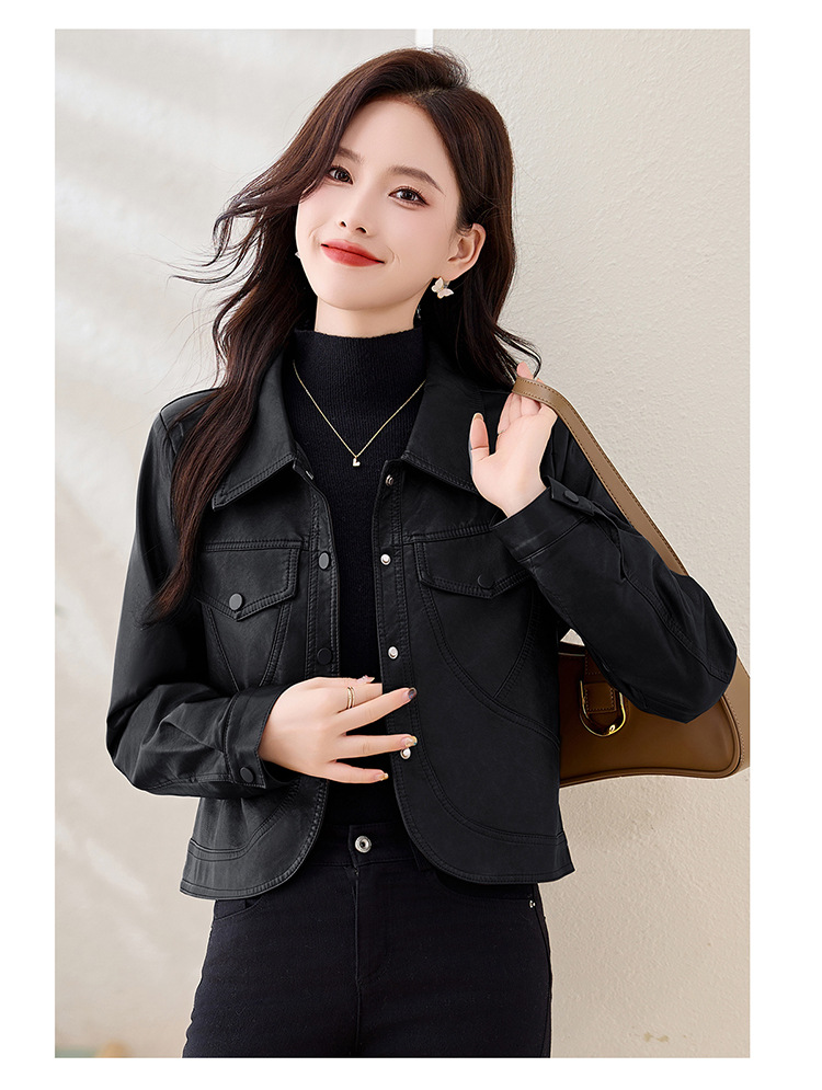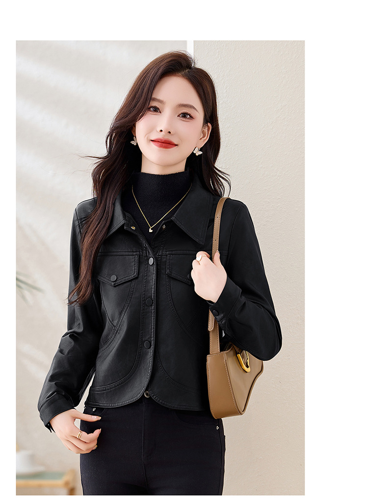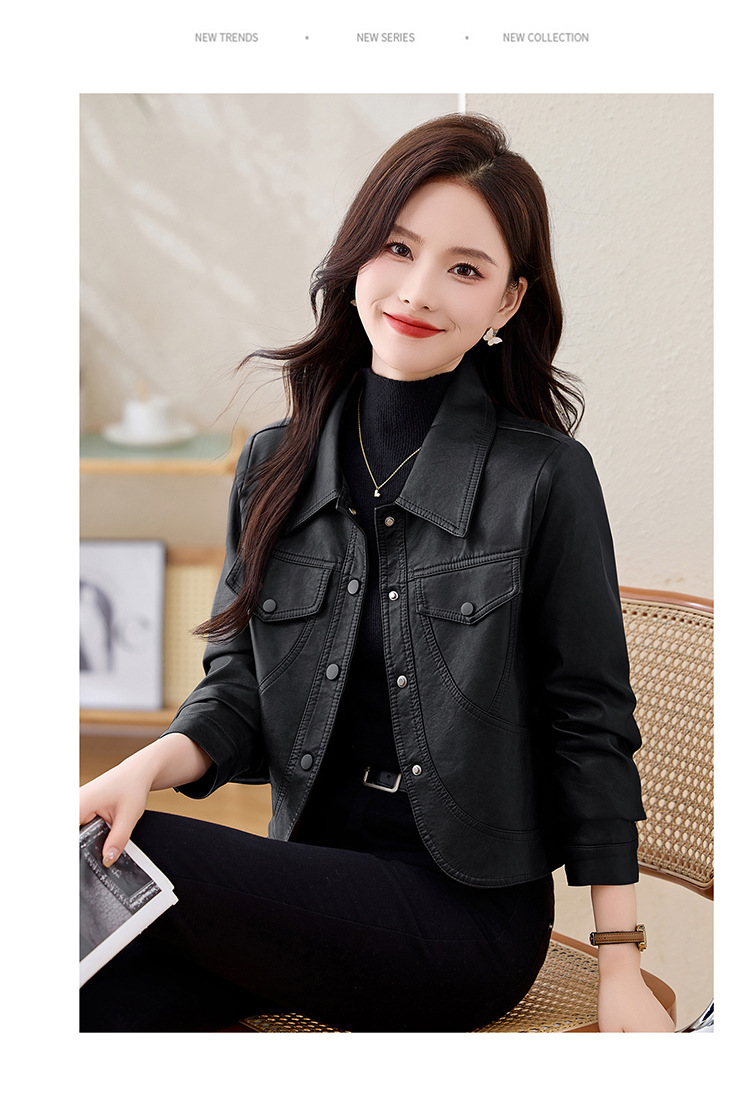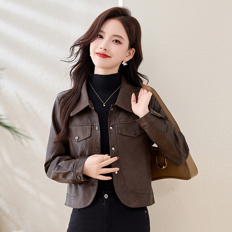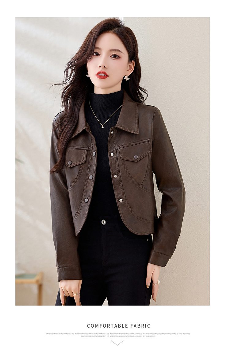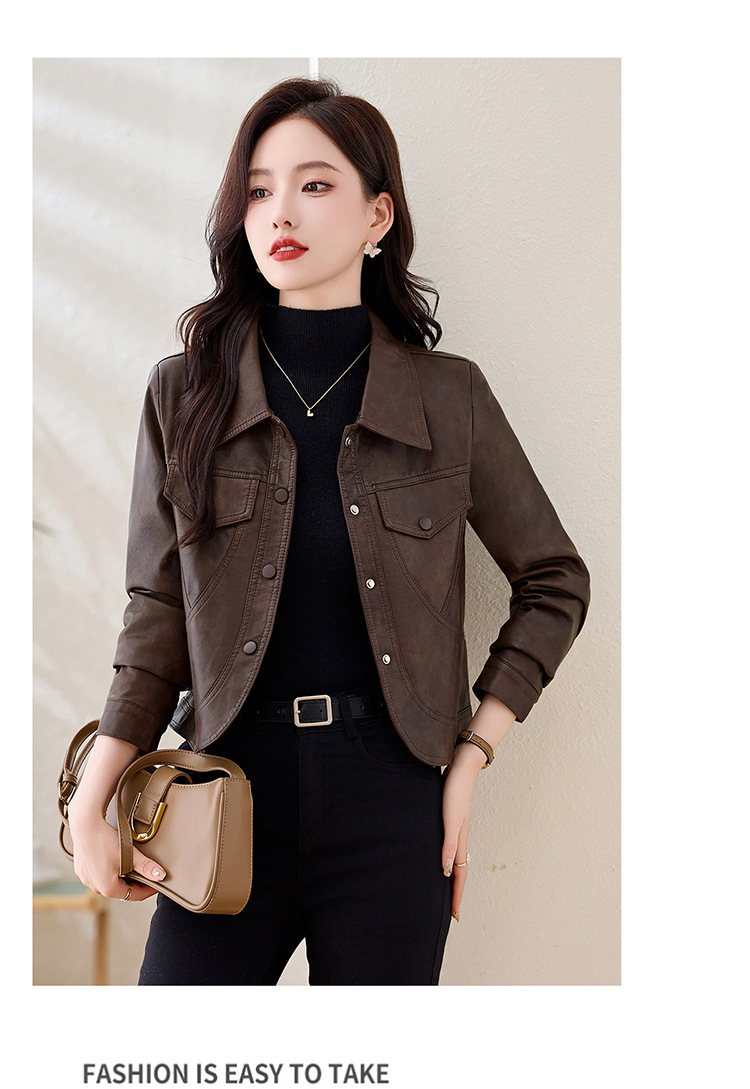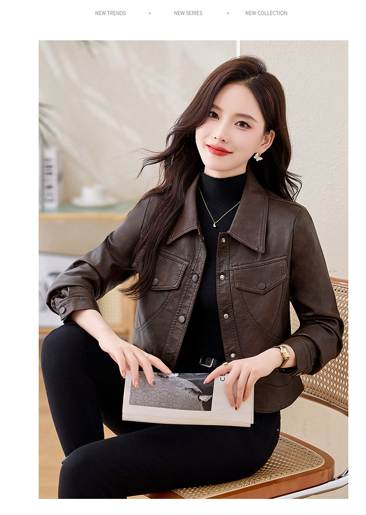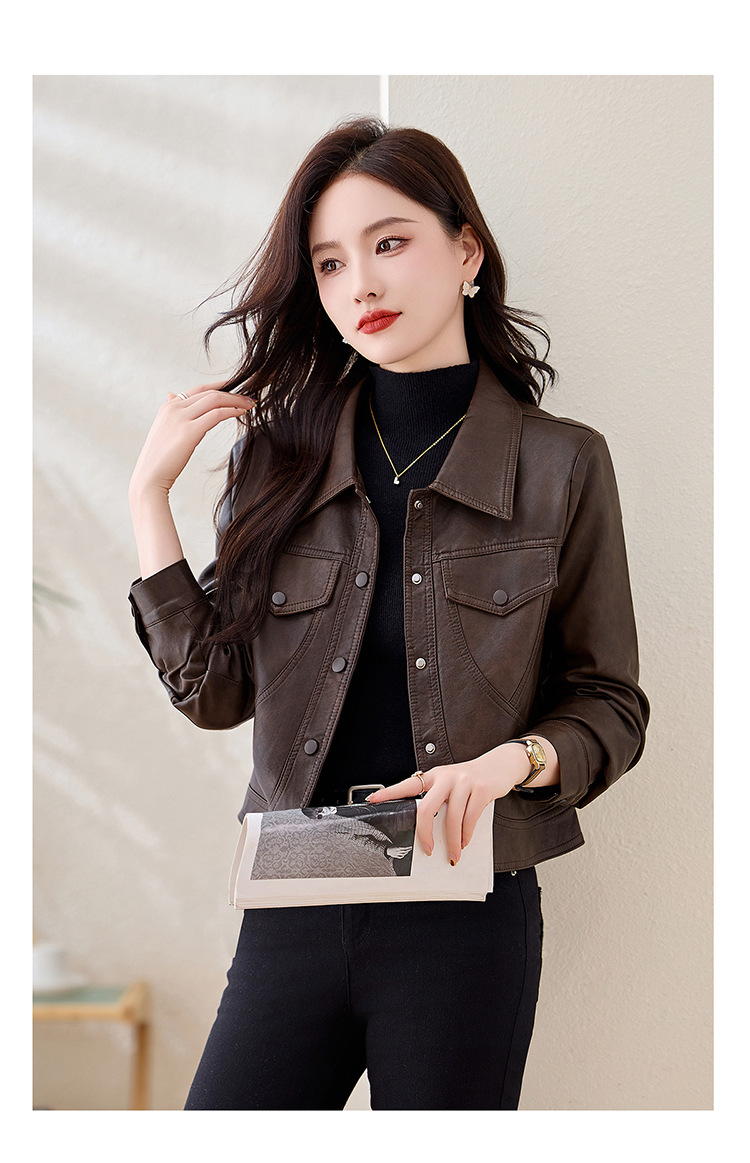 Áo khoác da kiểu ngắn dành cho nữ, thiết kế ôm sát tôn dáng. Kiểu dáng phối hợp phong cách lịch sự và năng động, phù hợp cho tiết trời mùa xuân và mùa thu. Chất liệu da mềm mại, mang đến sự thoải mái khi mặc. Bạn có thể kết hợp dễ dàng với nhiều loại trang phục như quần jeans, váy hay áo thun. Sản phẩm thích hợp cho nhiều hoàn cảnh sử dụng hằng ngày, từ đi làm đến dạo phố. | Tên sản phẩm: Áo Da Nữ Dáng Ôm Hàng Mùa Xuân Thu Đông Phục Cổ Cổ Điển - Thời Trang Nữ | Mã sản phẩm: L3566 - Giá: 1.640.000đ | Mã nhà sản xuất: WODIG-G05Hình ảnh sản phẩm
