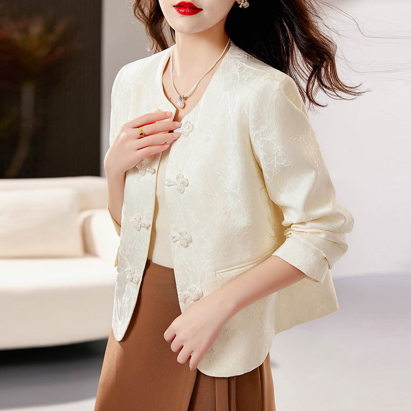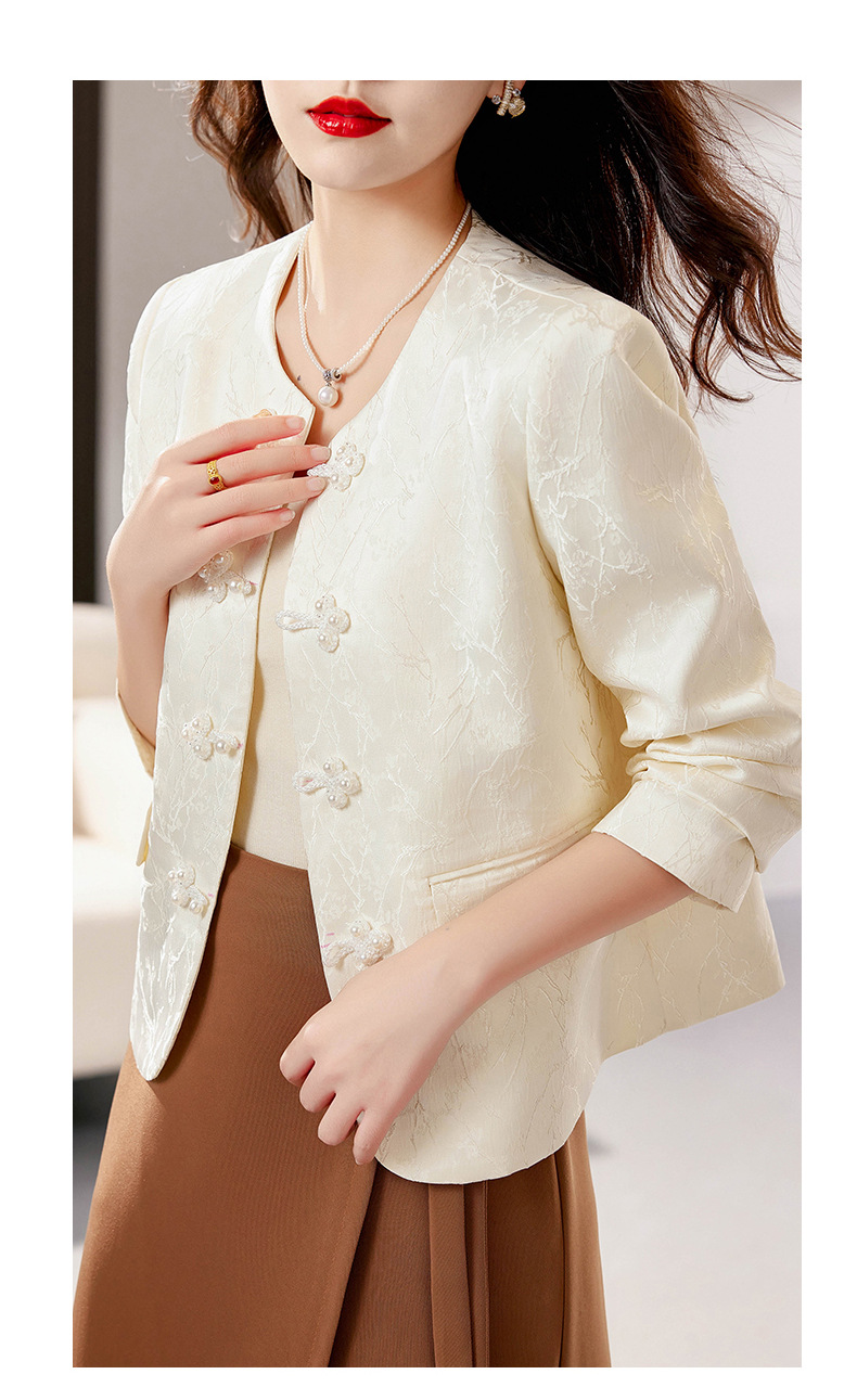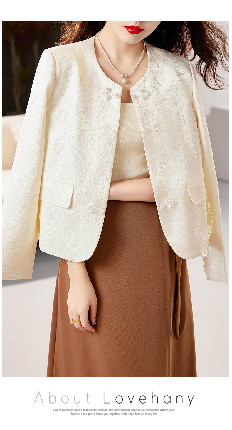 Áo khoác nữ mang phong cách dân tộc hiện đại, thiết kế dành riêng cho tiết trời thu đông. Điểm nhấn ấn tượng với hàng nút thắt truyền thống kết hợp họa tiết dệt nổi tinh xảo trên nền vải trắng. Kiểu dáng tôn dáng, phù hợp nhiều dịp sử dụng. Mặc cùng quần ống rộng hoặc chân váy dài để tạo vẻ thanh lịch. Dễ dàng phối đồ và giữ ấm nhẹ nhàng cho những ngày se lạnh. | Tên sản phẩm: Áo Khoác Nữ Họa Tiết Hoa Hàng Mùa Xuân Thu Đông Phục Cổ Cổ Điển - Thời Trang Nữ | Mã sản phẩm: L3588 - Giá: 1.710.000đ | Mã nhà sản xuất: WODIG-G05Hình ảnh sản phẩm