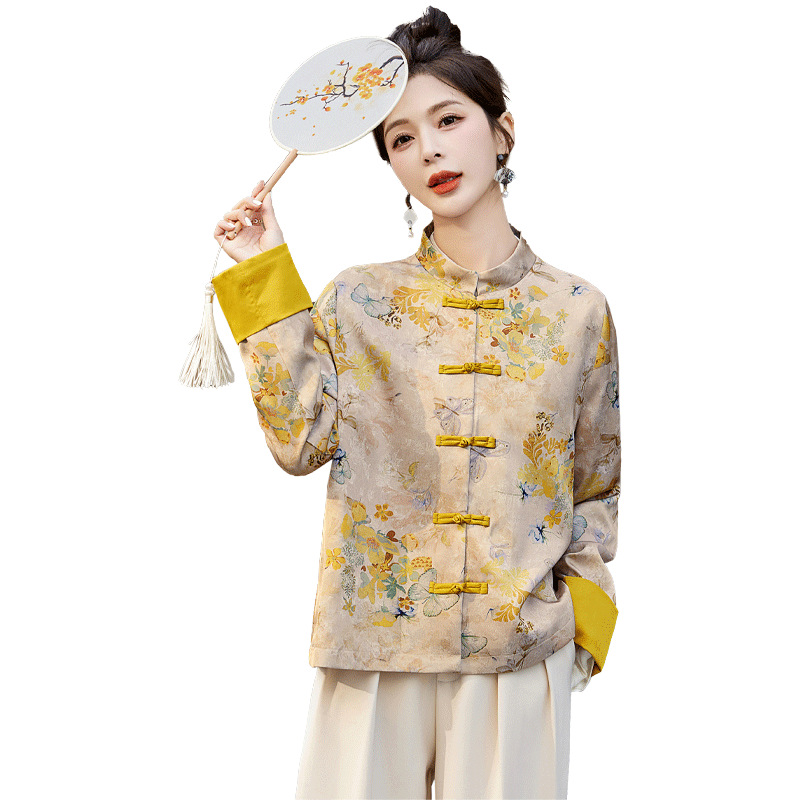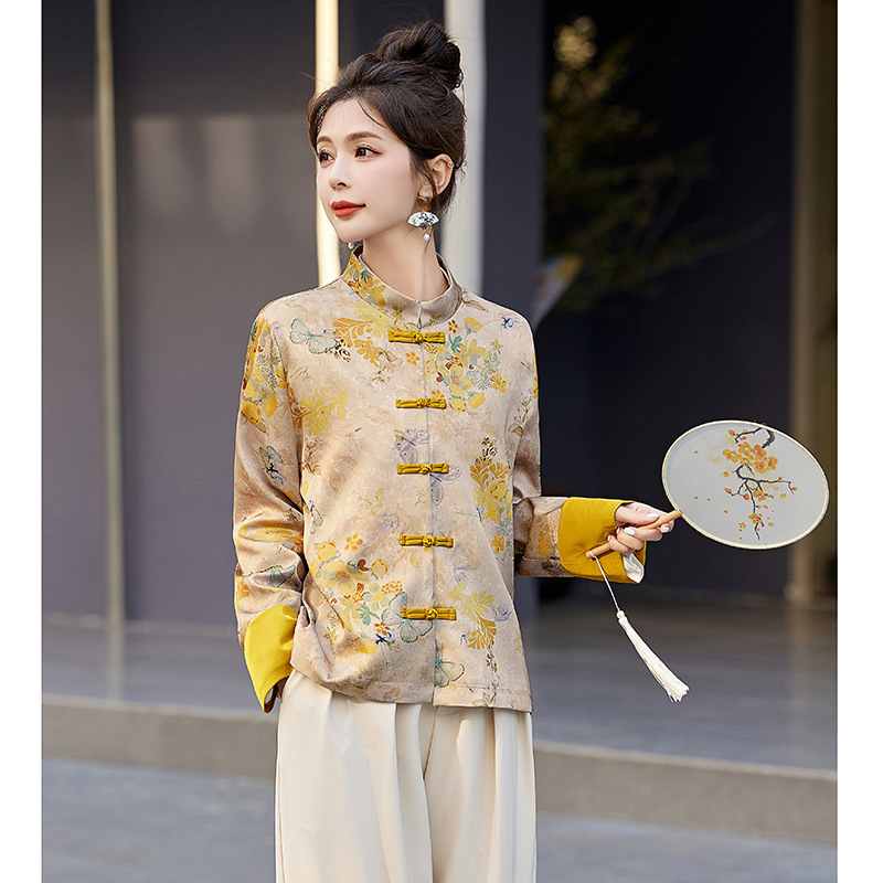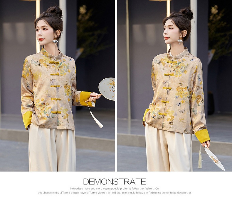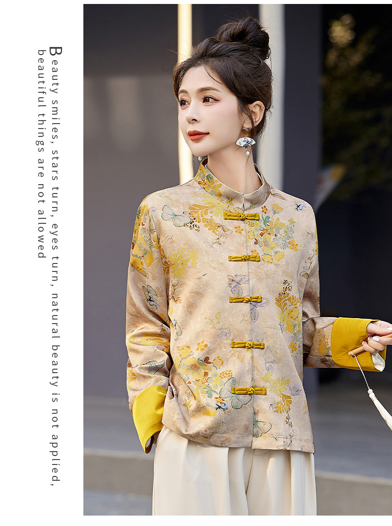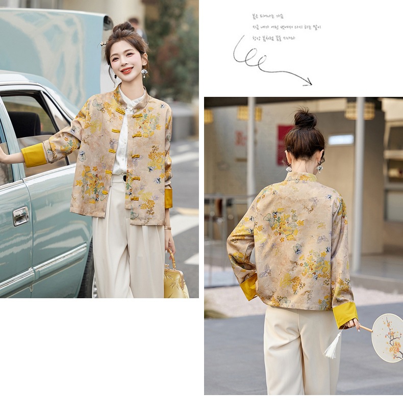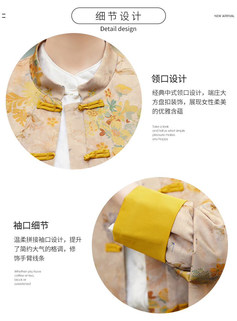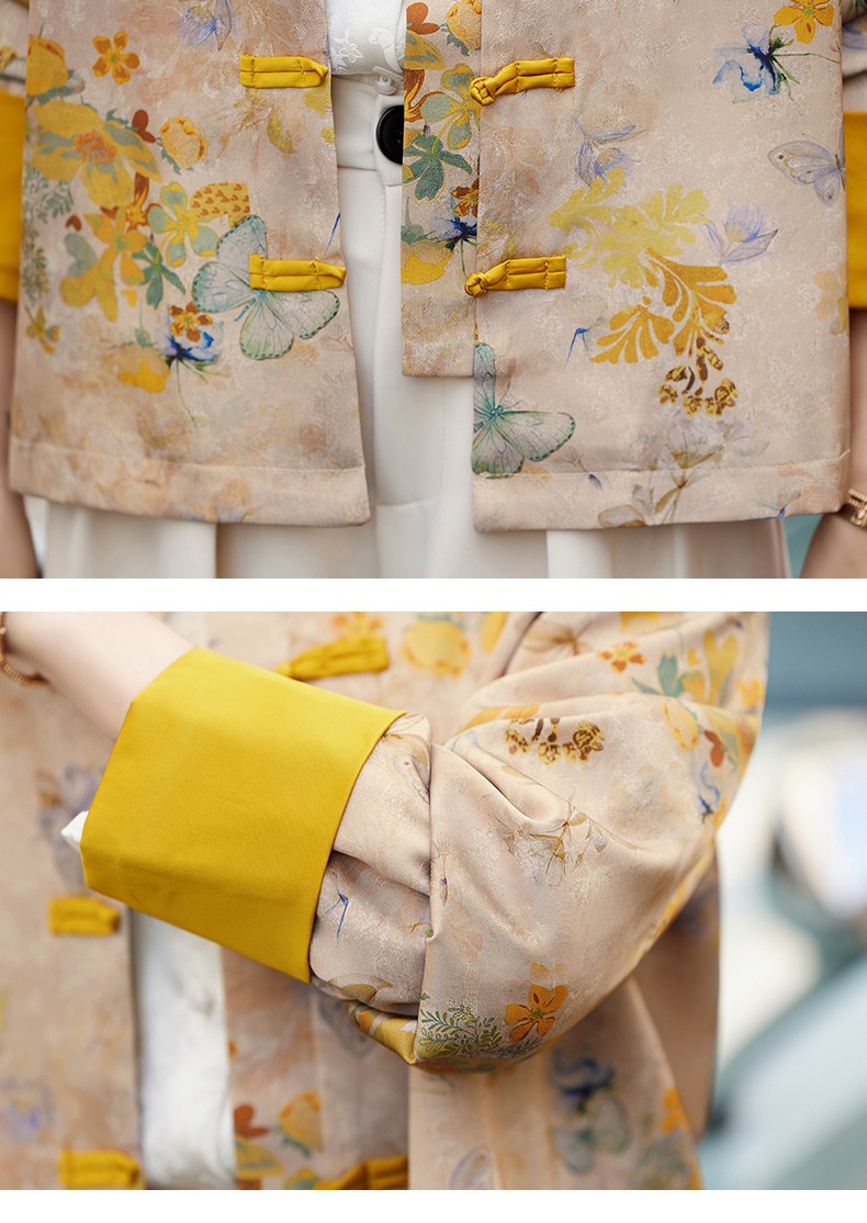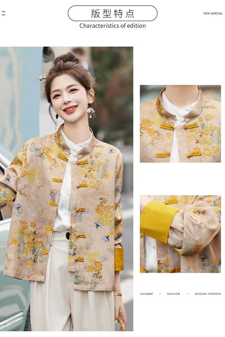 Áo khoác nữ mang nét đẹp truyền thống cách tân, thiết kế ngắn vừa vặn tôn dáng cho người có chiều cao khiêm tốn. Chất liệu vải mềm mại, thoáng mát phù hợp tiết trời xuân thu. Điểm nhấn đặc biệt là hàng cúc thắt nút tinh xảo thay cho khóa kéo thông thường. Kiểu dáng thanh lịch, dễ dàng phối cùng quần ống rộng hoặc chân váy. Mặc hằng ngày hoặc trong những dịp gặp mặt đều thể hiện nét duyên dáng riêng. | Tên sản phẩm: Áo Khoác Nữ Hàng Mùa Xuân Thu Đông - Thời Trang Nữ | Mã sản phẩm: L3604 - Giá: 1.490.000đ | Mã nhà sản xuất: WODIG-G04Hình ảnh sản phẩm