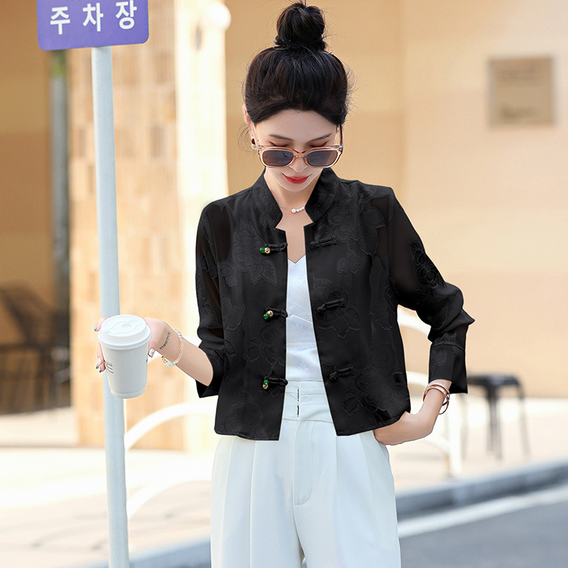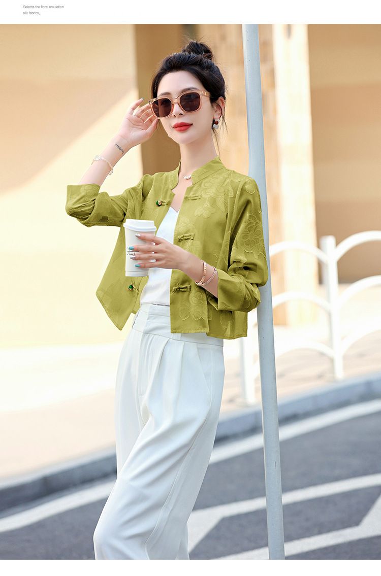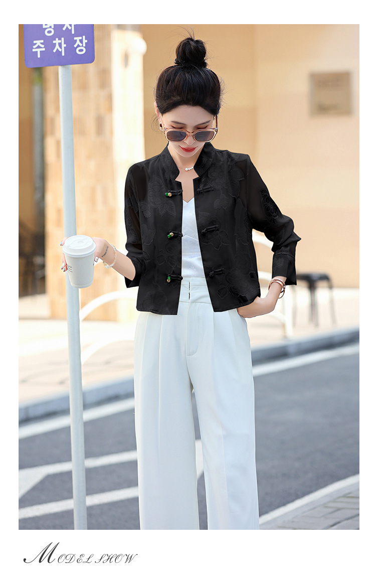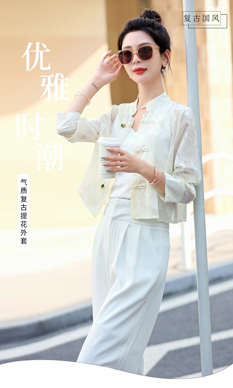 Áo khoác ngắn tay mang phong cách hiện đại pha trộn nét dân tộc, dành cho những ngày hè oi bức. Chất vải mỏng nhẹ, thoáng khí và có khả năng ngăn tia nắng mặt trời. Kiểu dáng ngắn vừa vặn, phối họa tiết thanh lịch giúp dễ dàng kết hợp với nhiều loại trang phục khác nhau. Có thể mặc như áo khoác mỏng che nắng bên ngoài áo thun hoặc đầm, phù hợp cho các hoạt động ngoài trời hoặc dạo phố. | Tên sản phẩm: Áo Khoác Nữ Hàng Mùa Hè - Thời Trang Nữ | Mã sản phẩm: L3654 - Giá: 1.490.000đ | Mã nhà sản xuất: WODIG-G04Hình ảnh sản phẩm