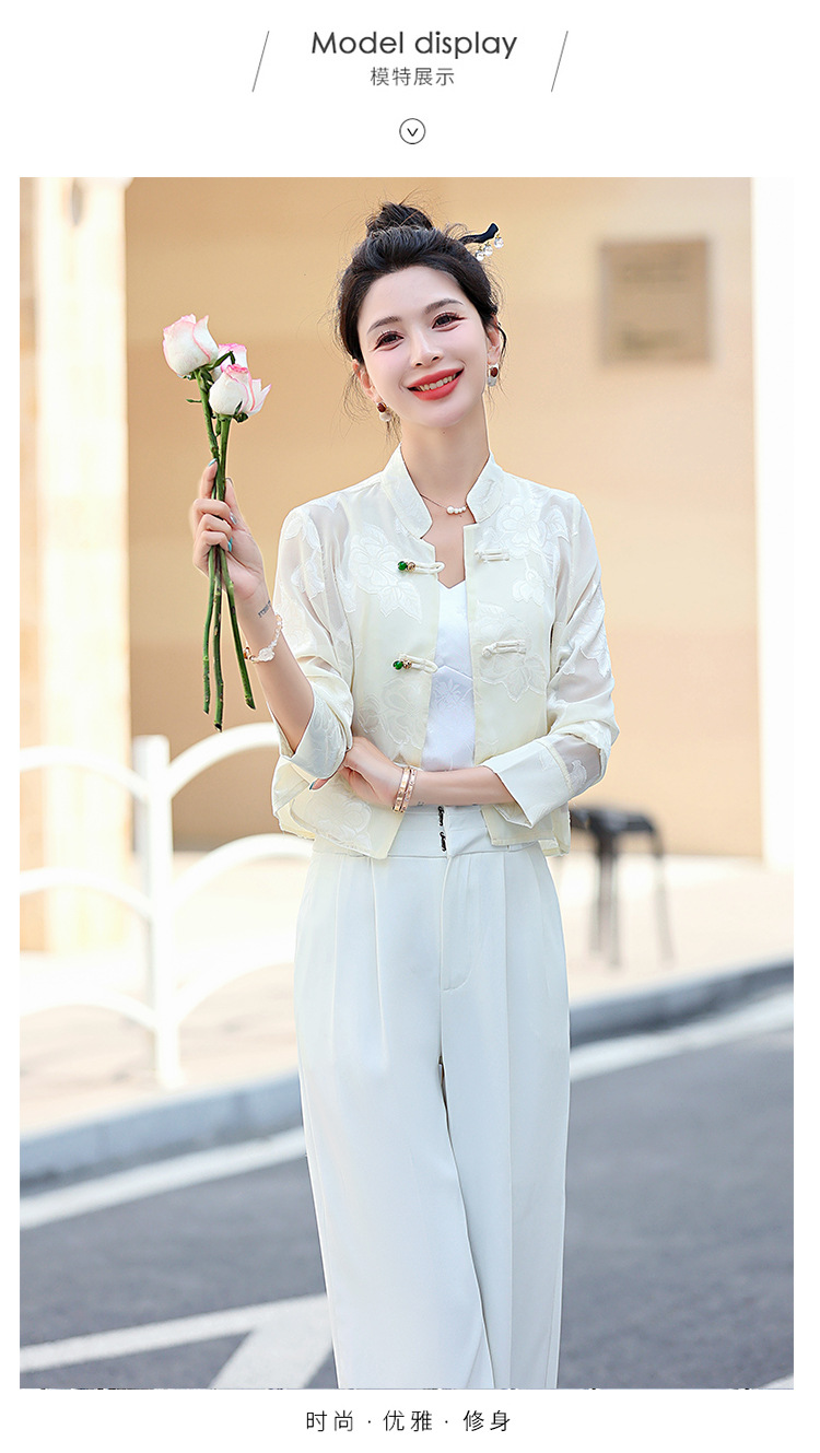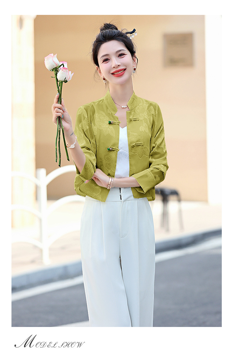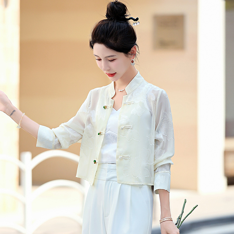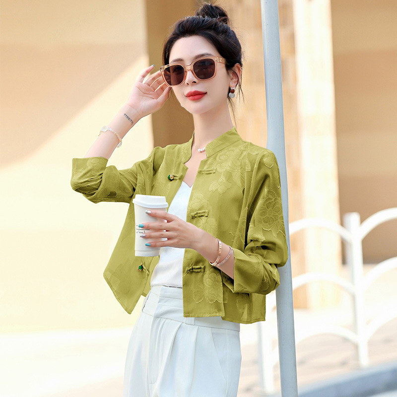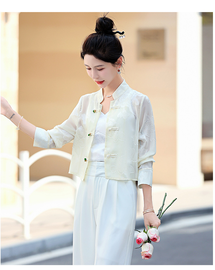 Áo khoác ngắn tay mang phong cách hiện đại pha trộn nét dân tộc, dành cho những ngày hè oi bức. Chất vải mỏng nhẹ, thoáng khí và có khả năng ngăn tia nắng mặt trời. Kiểu dáng ngắn vừa vặn, phối họa tiết thanh lịch giúp dễ dàng kết hợp với nhiều loại trang phục khác nhau. Có thể mặc như áo khoác mỏng che nắng bên ngoài áo thun hoặc đầm, phù hợp cho các hoạt động ngoài trời hoặc dạo phố. | Tên sản phẩm: Áo Khoác Nữ Hàng Mùa Hè - Thời Trang Nữ | Mã sản phẩm: L3654 - Giá: 1.490.000đ | Mã nhà sản xuất: WODIG-G04Hình ảnh sản phẩm