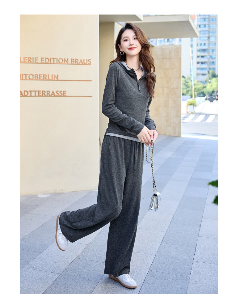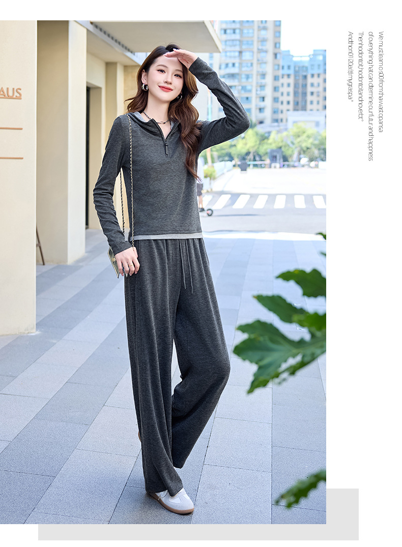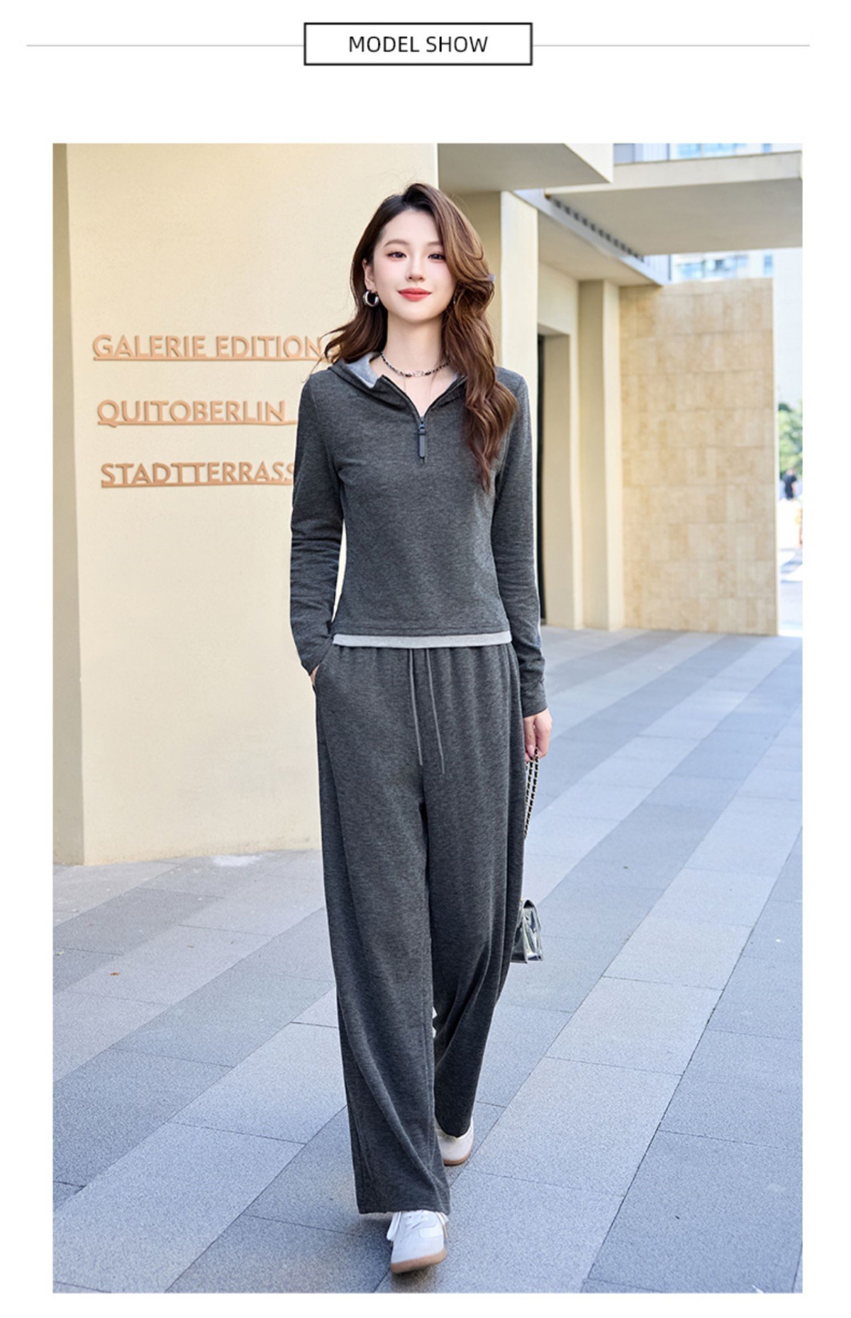 Bộ đồ thể thao nữ này gồm áo nỉ có mũ và quần ống rộng, mang đến sự thoải mái tối đa cho các hoạt động hằng ngày. Chất vải mềm mại, co giãn nhẹ giúp bạn dễ dàng vận động. Kiểu dáng trẻ trung, năng động phù hợp cho việc tập luyện, đi chơi hay mặc ở nhà. Bạn có thể mặc nguyên bộ hoặc phối cùng các trang phục khác để tạo nên vẻ ngoài cá tính. | Tên sản phẩm: Đồ Bộ Nữ Cả Bộ 2 Món Hàng Mùa Xuân Thu Đông - Thời Trang Nữ | Mã sản phẩm: L3655 - Giá: 1.830.000đ | Mã nhà sản xuất: WODIG-G05Hình ảnh sản phẩm