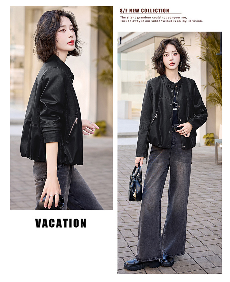 Áo khoác kiểu dáng ngắn, phù hợp cho những người có vóc dáng nhỏ nhắn. Chất liệu da tổng hợp mềm mại, tạo cảm giác dễ chịu khi mặc. Kiểu áo thiết kế năng động, dễ dàng phối hợp với nhiều loại trang phục khác nhau. Bạn có thể mặc cùng quần jeans và áo thun để tạo phong cách thoải mái. Sản phẩm thích hợp sử dụng trong tiết trời mùa thu, mang đến sự ấm áp vừa phải. | Tên sản phẩm: Áo Da Nữ Hàng Mùa Xuân Thu Đông - Thời Trang Nữ | Mã sản phẩm: L3753 - Giá: 2.020.000đ | Mã nhà sản xuất: WODIG-G05Hình ảnh sản phẩm