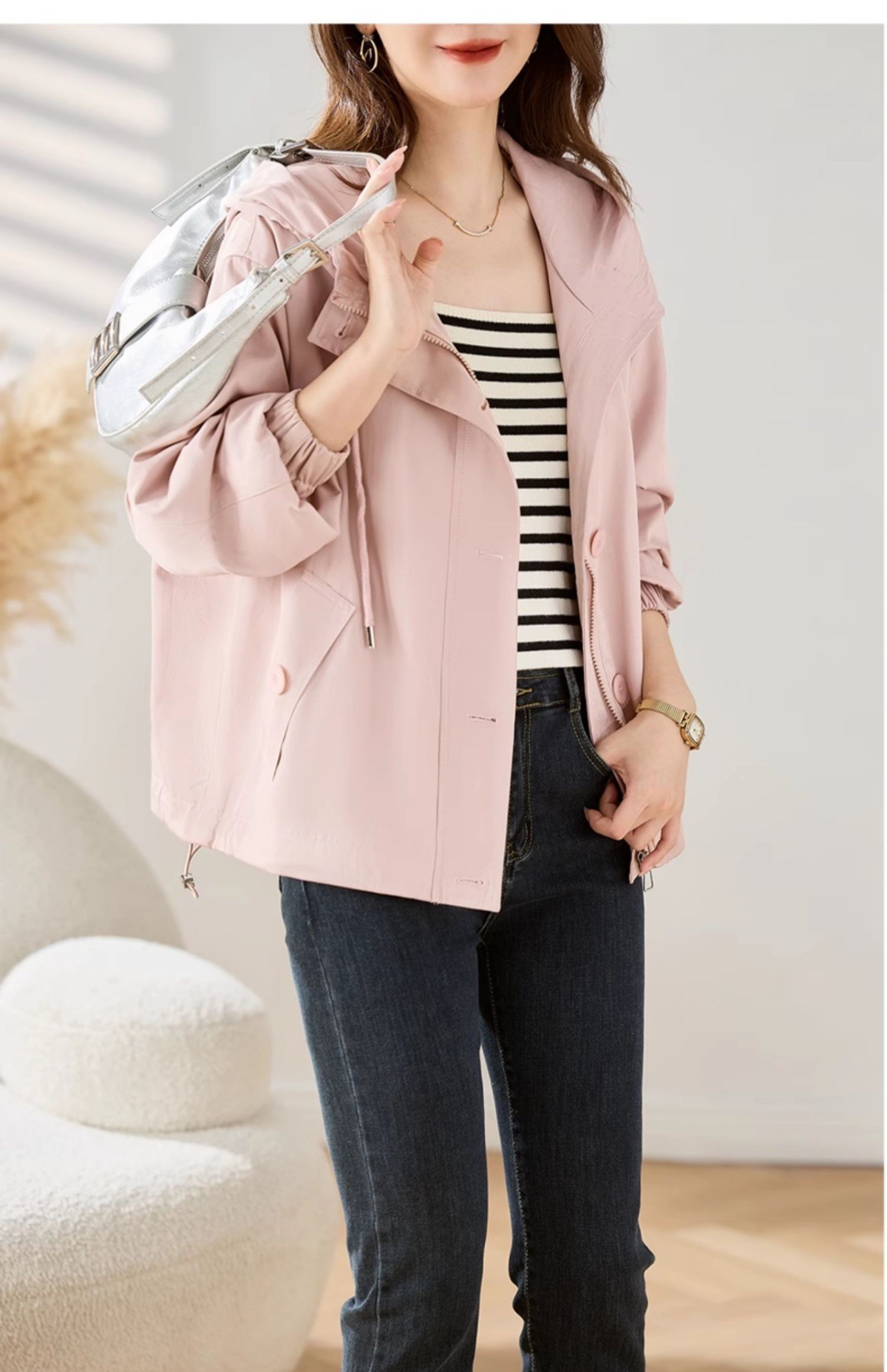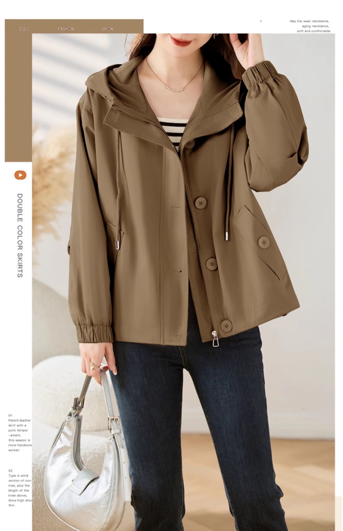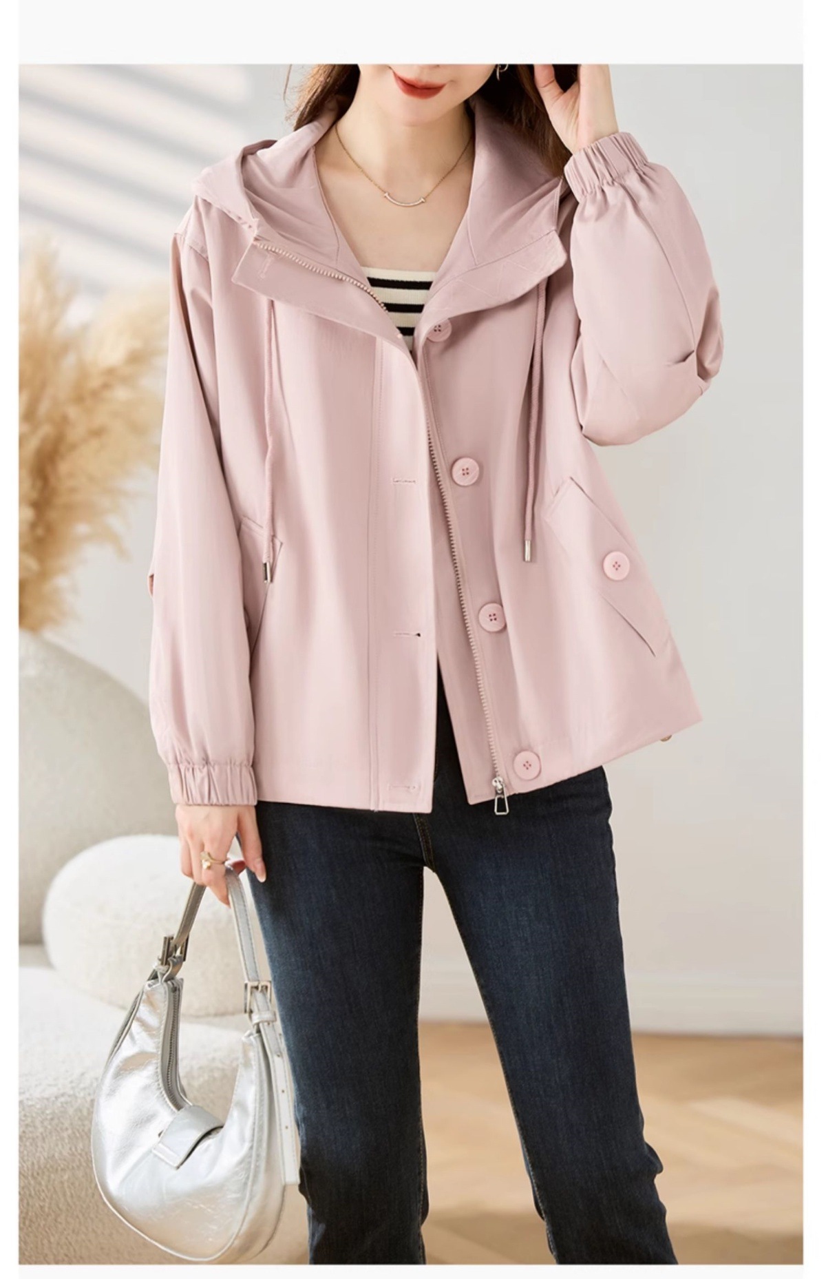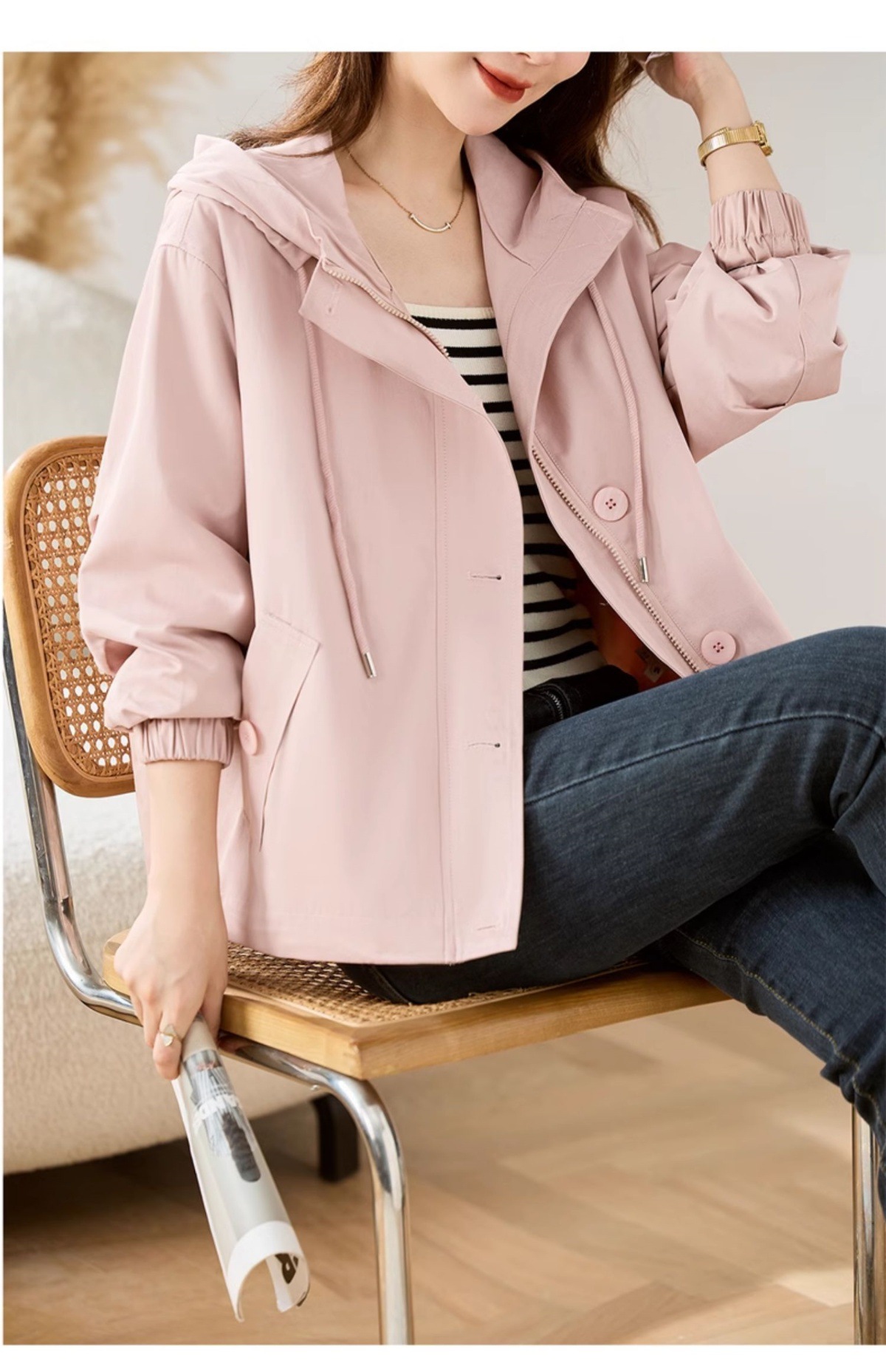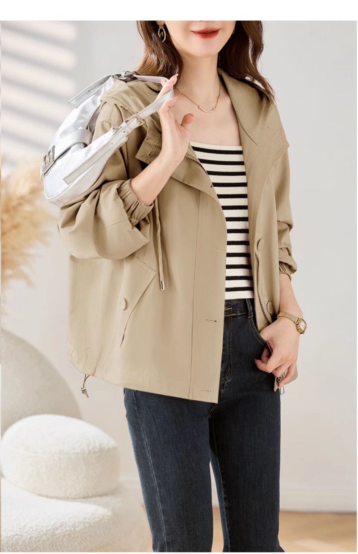 Áo khoác mẹ có mũ, kiểu dáng ngắn thích hợp cho mùa xuân và mùa thu. Thiết kế rộng rãi, thoải mái tạo cảm giác dễ chịu khi mặc. Form áo ôm vừa vặn, giúp tôn dáng cho những người có chiều cao khiêm tốn. Phong cách trẻ trung, năng động phù hợp cho các dịp đi chơi, dạo phố hay mặc ở nhà. Có thể kết hợp với nhiều loại trang phục khác nhau. Mặc cùng quần jeans và áo thun để có vẻ ngoài tự nhiên, thoải mái. | Tên sản phẩm: Áo Khoác Nữ Mũ Liền Trông Trẻ Hơn Tuổi Hàng Mùa Xuân Thu Đông Trung Niên - Thời Trang Nữ | Mã sản phẩm: L3764 - Giá: 1.730.000đ | Mã nhà sản xuất: WODIG-G05Hình ảnh sản phẩm