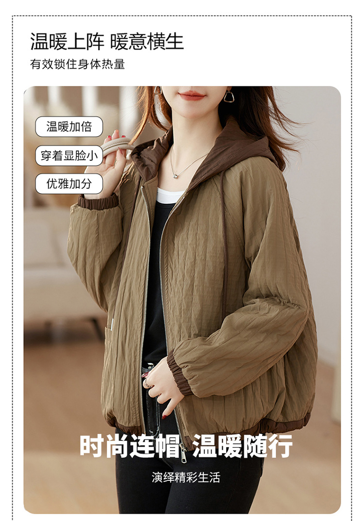 Áo khoác nữ dáng ngắn, kiểu mẫu mới cho thời tiết se lạnh. Chất áo nhẹ, bên trong có lớp đệm mỏng giữ ấm vừa phải mà không hề bí. Thiết kế có mũ trùm tiện lợi, phong cách trẻ trung, dễ phối đồ. Sản phẩm phù hợp với nhiều hoạt động hằng ngày. Có thể mặc trực tiếp hoặc kết hợp cùng áo thun bên trong để tạo sự ấm áp và thoải mái. | Tên sản phẩm: Áo Khoác Nữ Chất Liệu Vải Bông Áo Khoác Bông Mũ Liền Hàng Mùa Xuân Thu Đông - Thời Trang Nữ | Mã sản phẩm: L3769 - Giá: 1.730.000đ | Mã nhà sản xuất: WODIG-G05Hình ảnh sản phẩm