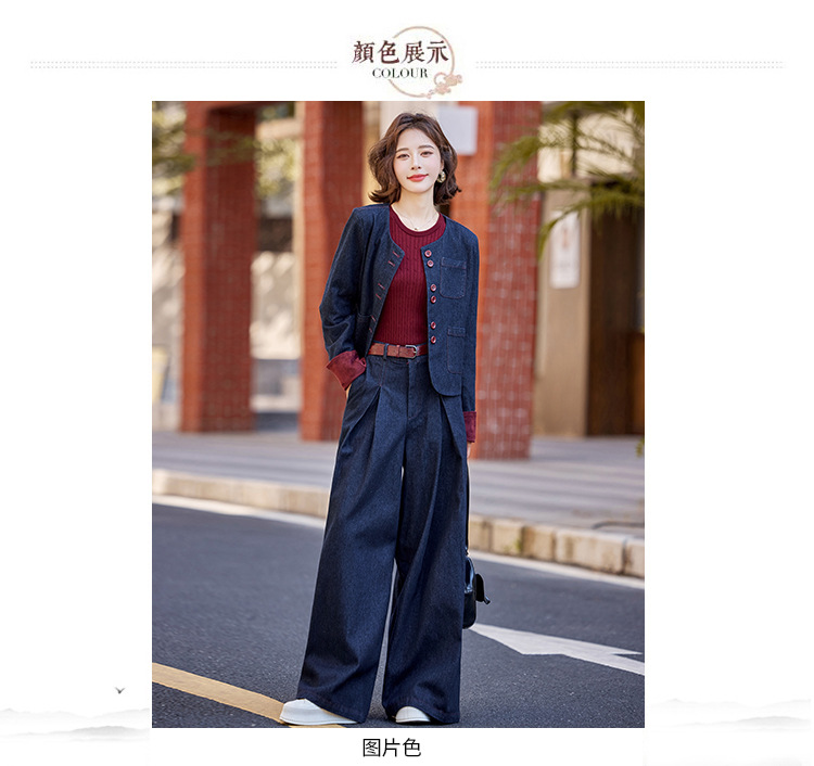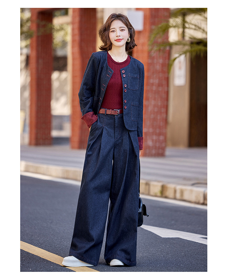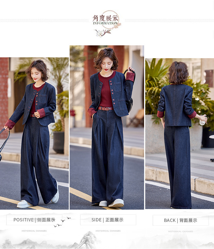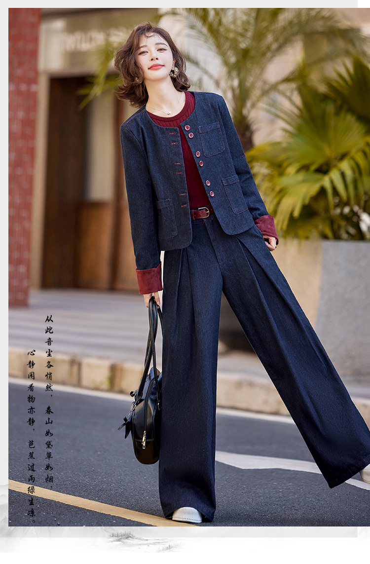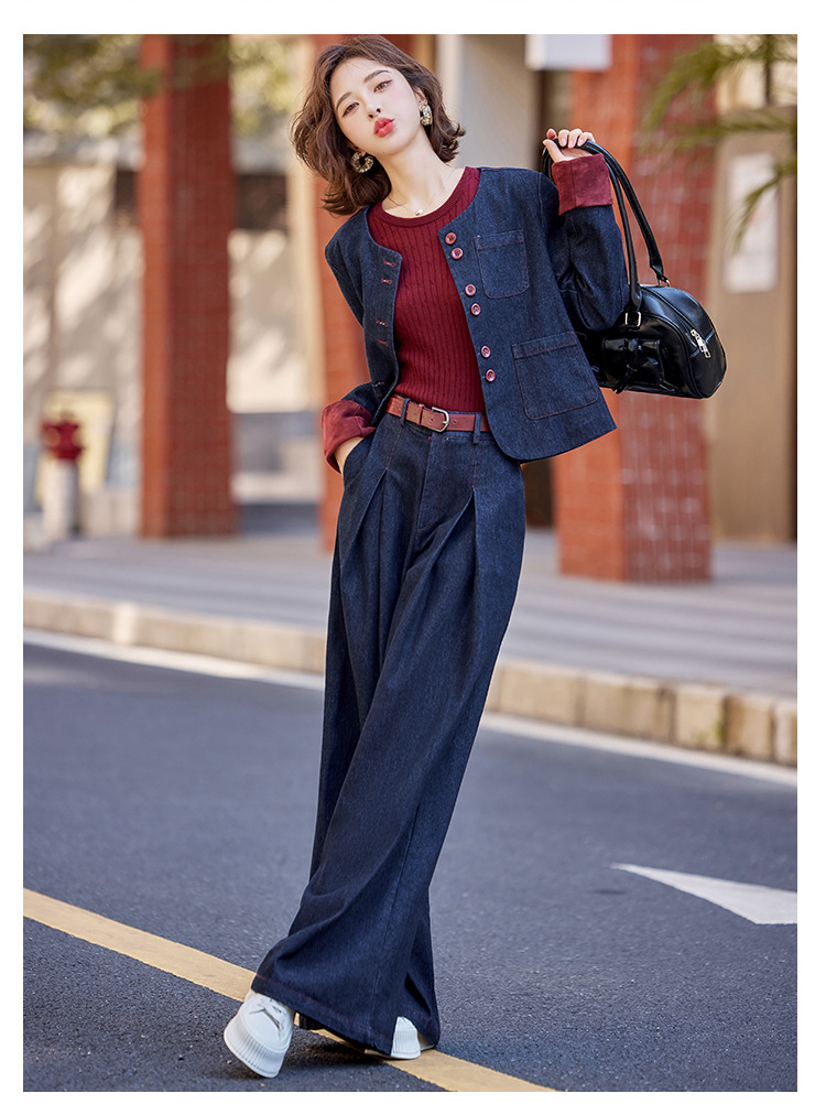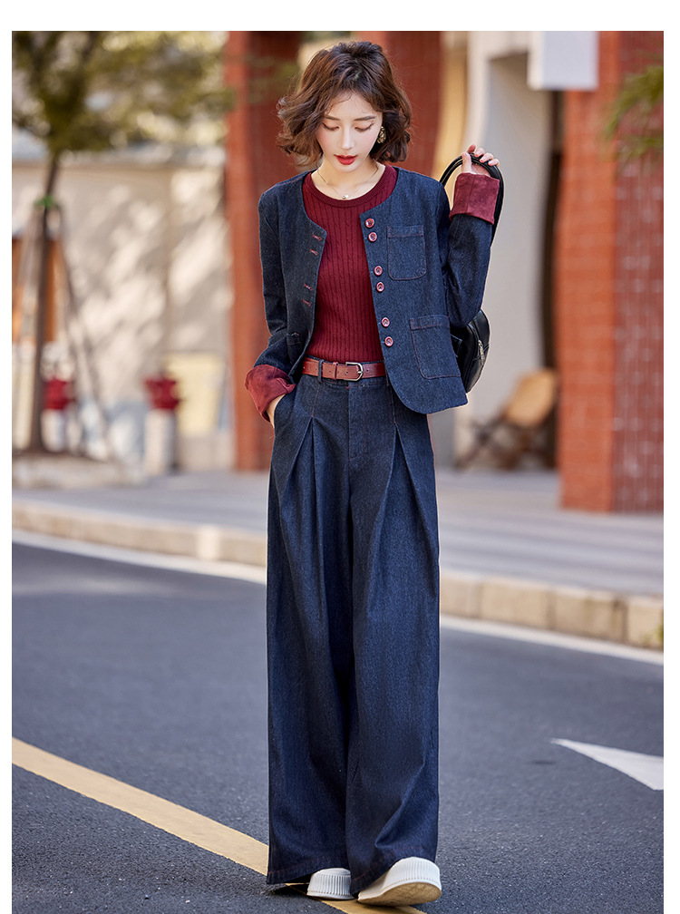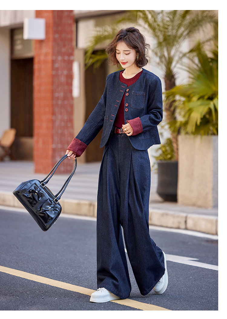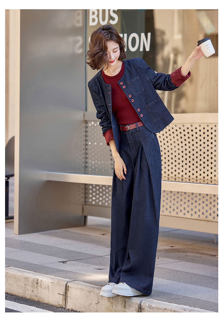 Bộ trang phục này gồm áo khoác và quần ống rộng, được làm từ chất liệu vải bò mềm mại, dễ dàng phối cùng nhiều kiểu áo bên trong. Thiết kế trẻ trung, năng động, phù hợp cho những ngày thu mát mẻ. Bạn có thể mặc bộ này khi đi chơi, dạo phố hay gặp gỡ bạn bè. Chỉ cần giặt ở chế độ thường và phơi khô là bộ đồ đã có thể giữ được dáng vẻ đẹp. | Tên sản phẩm: Áo Khoác Nữ Chất Liệu Jean Bò Cả Bộ 2 Món Trông Trẻ Hơn Tuổi Hàng Mùa Xuân Thu Đông - Thời Trang Nữ | Mã sản phẩm: L3771 - Giá: 2.410.000đ | Mã nhà sản xuất: WODIG-G05Hình ảnh sản phẩm
