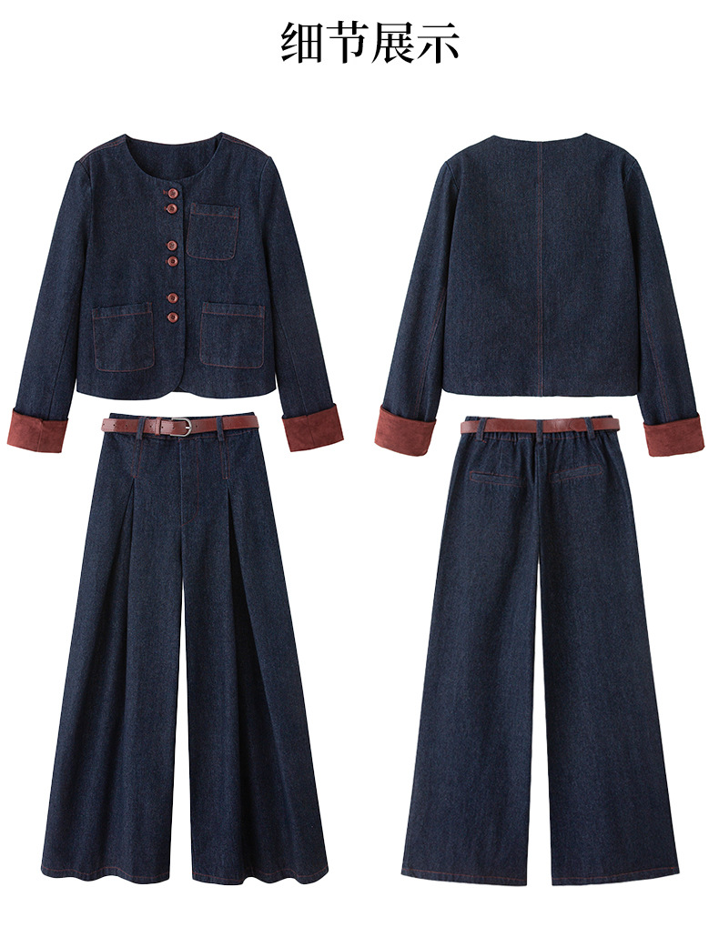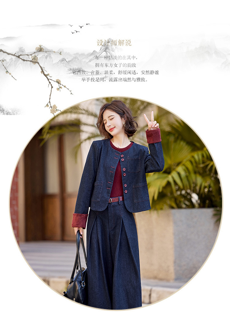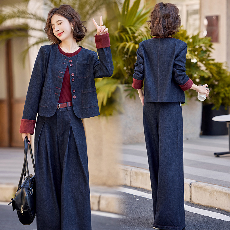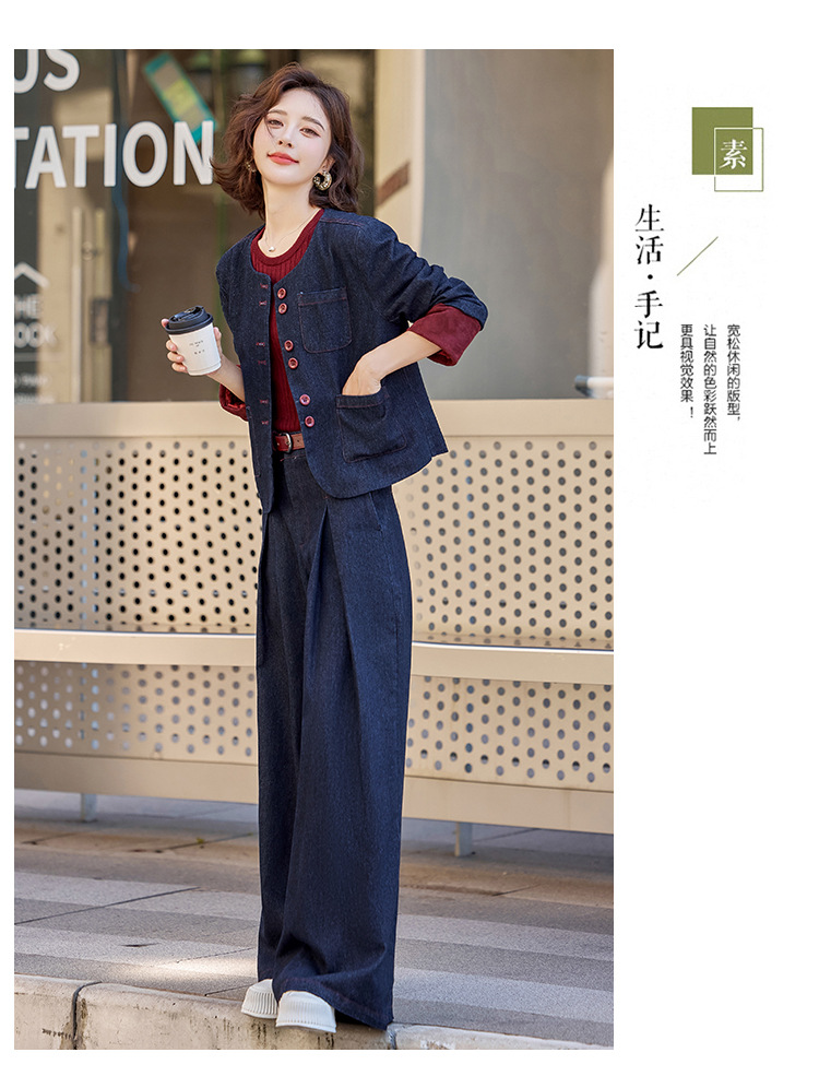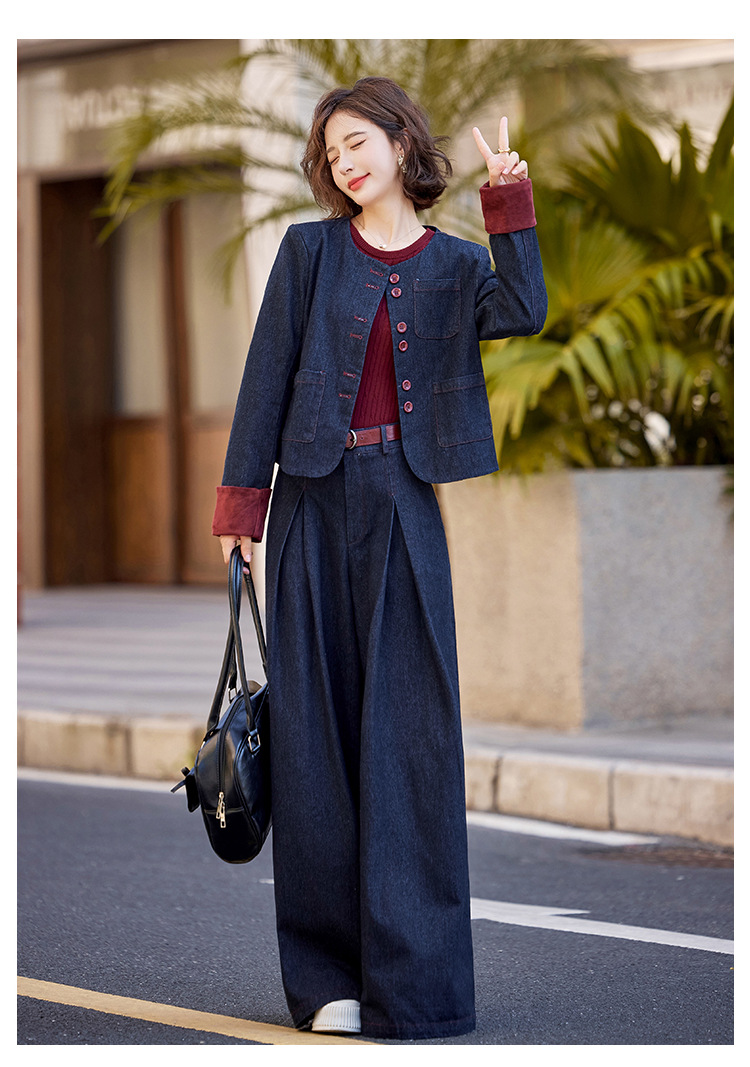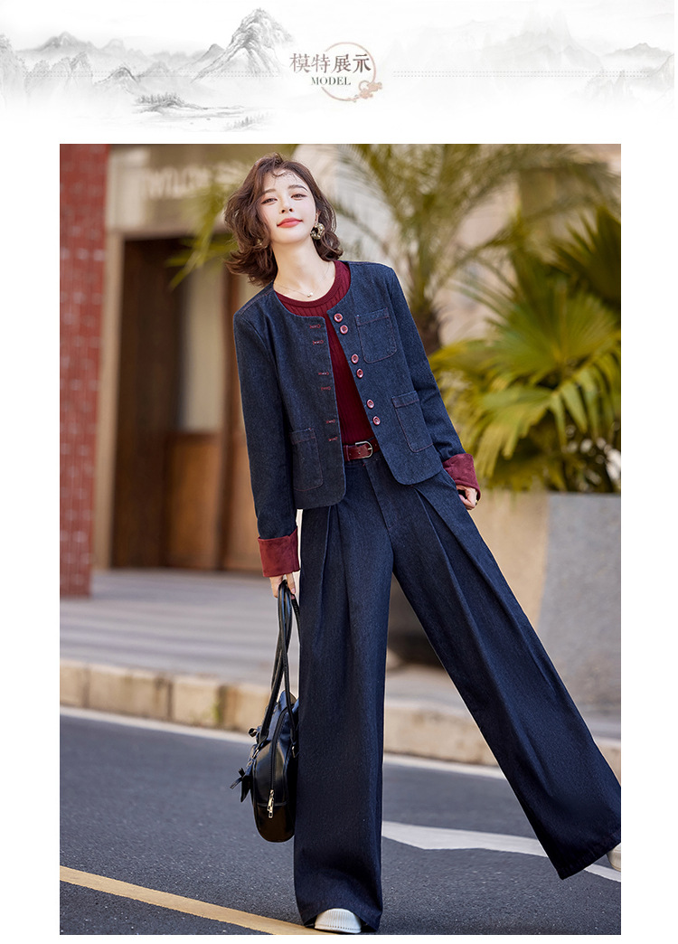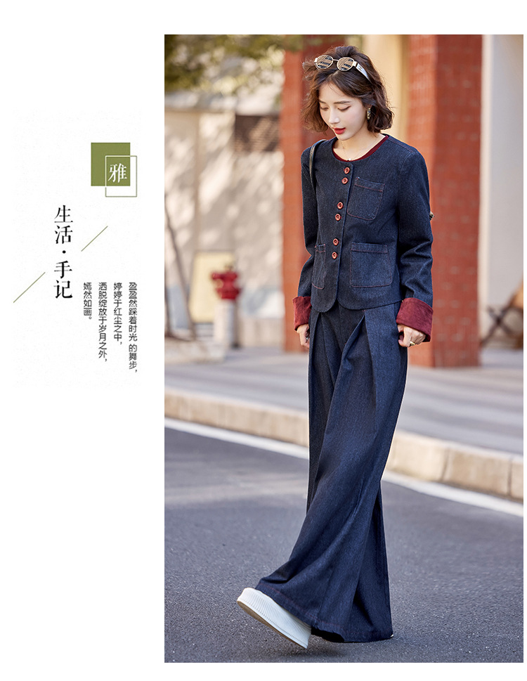 Bộ trang phục này gồm áo khoác và quần ống rộng, được làm từ chất liệu vải bò mềm mại, dễ dàng phối cùng nhiều kiểu áo bên trong. Thiết kế trẻ trung, năng động, phù hợp cho những ngày thu mát mẻ. Bạn có thể mặc bộ này khi đi chơi, dạo phố hay gặp gỡ bạn bè. Chỉ cần giặt ở chế độ thường và phơi khô là bộ đồ đã có thể giữ được dáng vẻ đẹp. | Tên sản phẩm: Áo Khoác Nữ Chất Liệu Jean Bò Cả Bộ 2 Món Trông Trẻ Hơn Tuổi Hàng Mùa Xuân Thu Đông - Thời Trang Nữ | Mã sản phẩm: L3771 - Giá: 2.410.000đ | Mã nhà sản xuất: WODIG-G05Hình ảnh sản phẩm