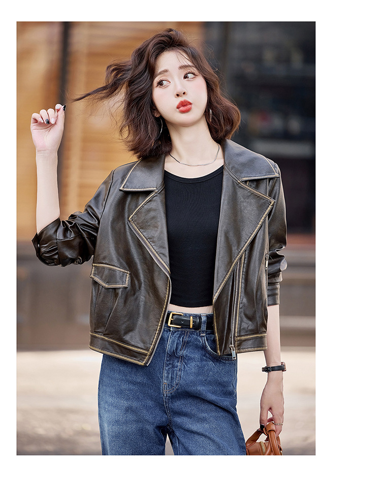 Áo khoác da kiểu dáng ngắn gọn, phù hợp cho các bạn nữ có vóc dáng nhỏ nhắn mặc vào mùa xuân và mùa thu. Thiết kế kết hợp giữa phong cách áo vest và áo khoác da, tạo điểm nhấn mạnh mẽ nhưng vẫn thanh lịch. Chất liệu da mềm mại, ôm vừa vặn giúp tôn dáng người mặc. Dễ dàng phối cùng nhiều loại trang phục như quần jeans, váy hay áo thun để tạo nên những bộ trang phục cá tính. | Tên sản phẩm: Áo Da Nữ Vest Hàng Mùa Xuân Thu Đông - Thời Trang Nữ | Mã sản phẩm: L3776 - Giá: 1.680.000đ | Mã nhà sản xuất: WODIG-G05Hình ảnh sản phẩm