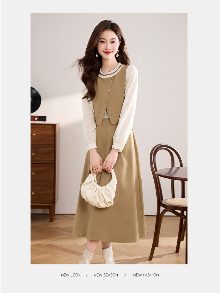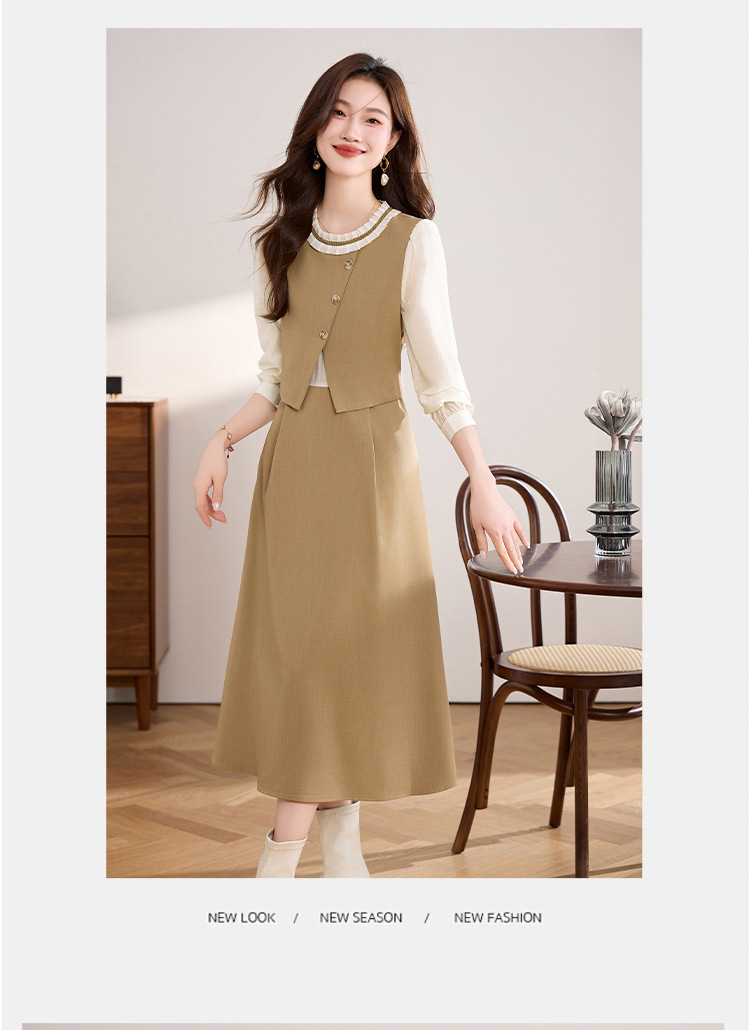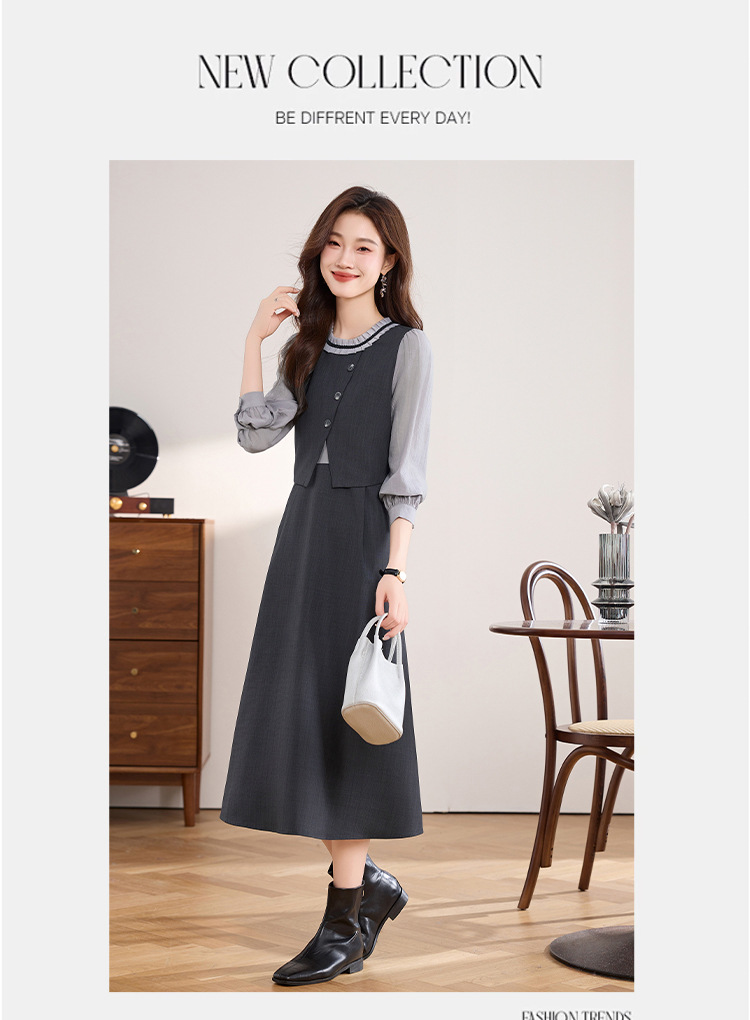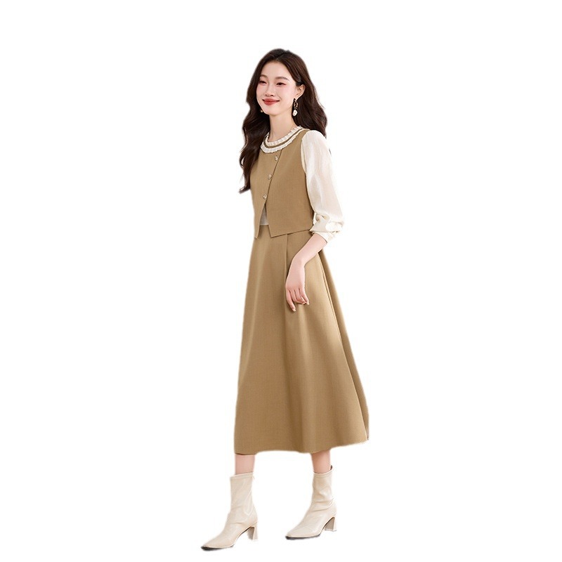 Chiếc đầm dáng dài mang phong cách Pháp thanh lịch, được thiết kế như đang mặc hai lớp một cách tinh tế. Kiểu dáng giúp tôn dáng, che đi khuyết điểm và mang đến vẻ tươi trẻ. Chất vải mềm mại tạo cảm giác dễ chịu. Sản phẩm thích hợp cho những dịp đi làm hoặc gặp mặt bạn bè. Có thể phối cùng giày cao gót và túi xách để hoàn thiện bộ trang phục. | Tên sản phẩm: Váy Đầm Liền Thân Nữ Cả Bộ 2 Món Trông Trẻ Hơn Tuổi Hàng Mùa Xuân Thu Đông - Thời Trang Nữ | Mã sản phẩm: L3777 - Giá: 1.780.000đ | Mã nhà sản xuất: WODIG-G05Hình ảnh sản phẩm