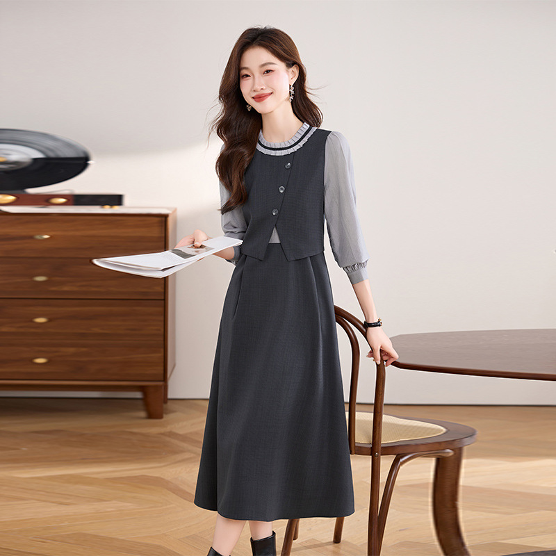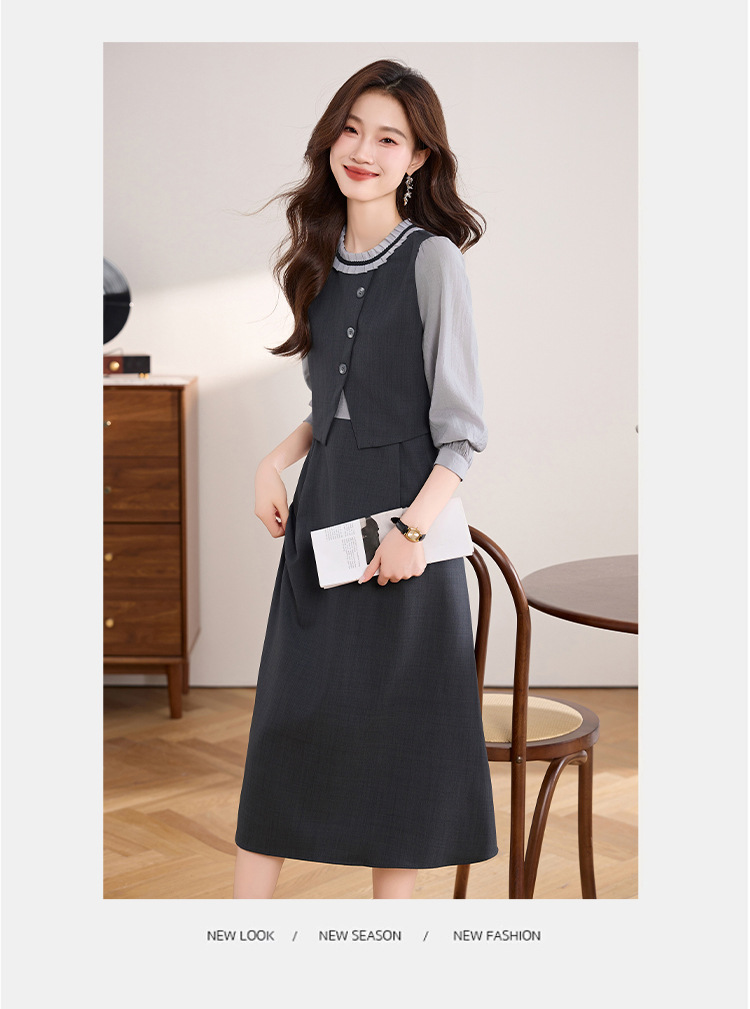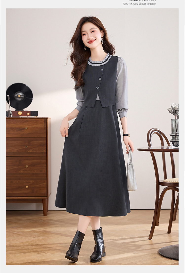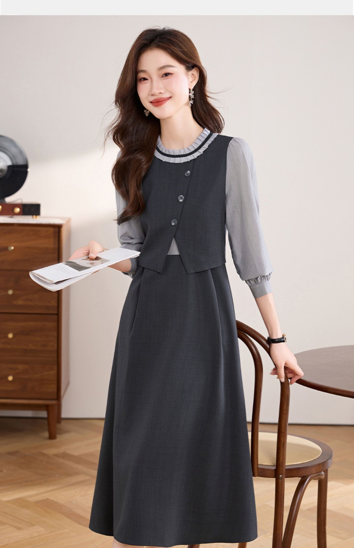 Chiếc đầm dáng dài mang phong cách Pháp thanh lịch, được thiết kế như đang mặc hai lớp một cách tinh tế. Kiểu dáng giúp tôn dáng, che đi khuyết điểm và mang đến vẻ tươi trẻ. Chất vải mềm mại tạo cảm giác dễ chịu. Sản phẩm thích hợp cho những dịp đi làm hoặc gặp mặt bạn bè. Có thể phối cùng giày cao gót và túi xách để hoàn thiện bộ trang phục. | Tên sản phẩm: Váy Đầm Liền Thân Nữ Cả Bộ 2 Món Trông Trẻ Hơn Tuổi Hàng Mùa Xuân Thu Đông - Thời Trang Nữ | Mã sản phẩm: L3777 - Giá: 1.780.000đ | Mã nhà sản xuất: WODIG-G05Hình ảnh sản phẩm