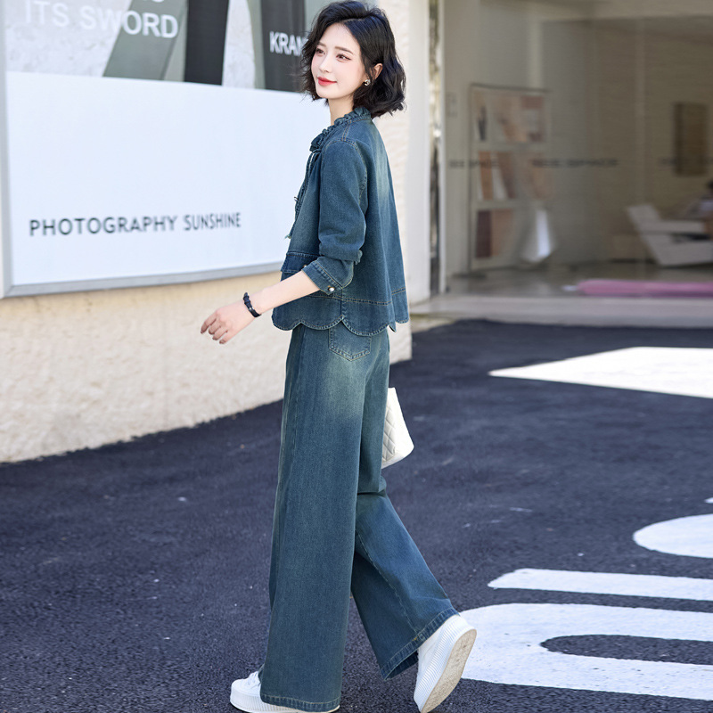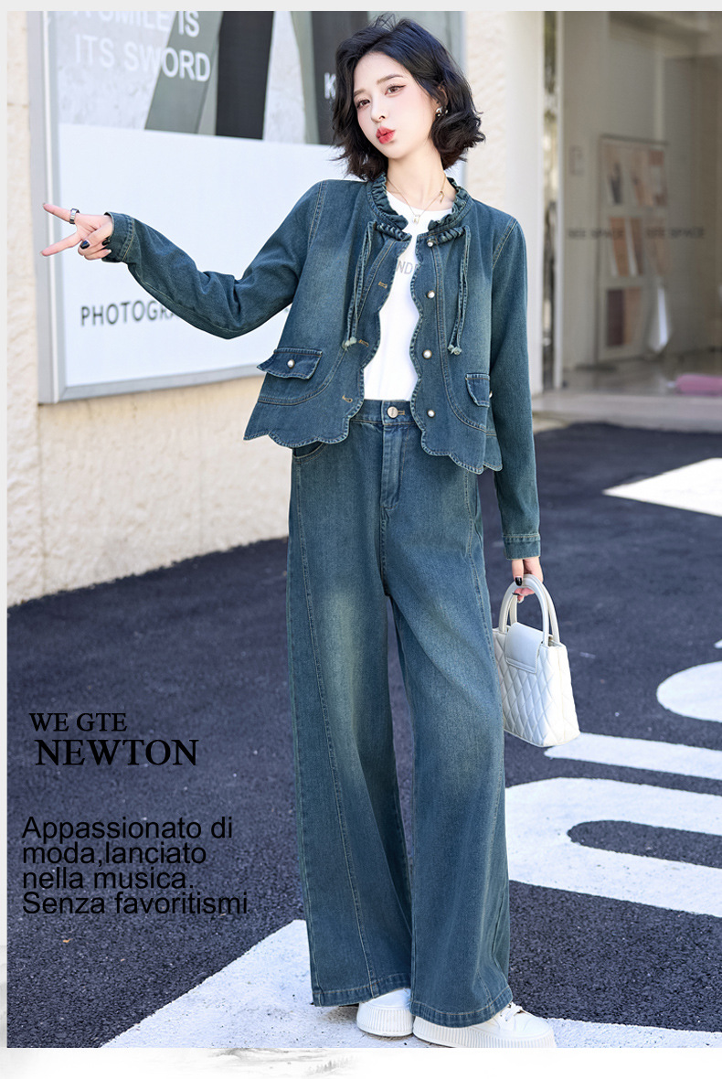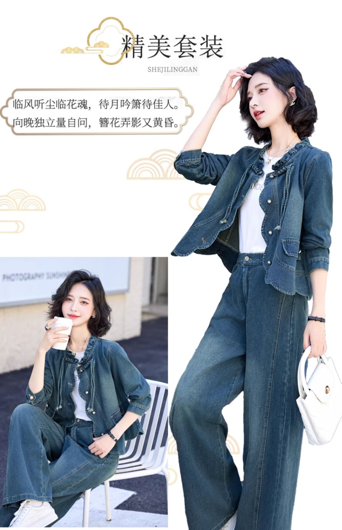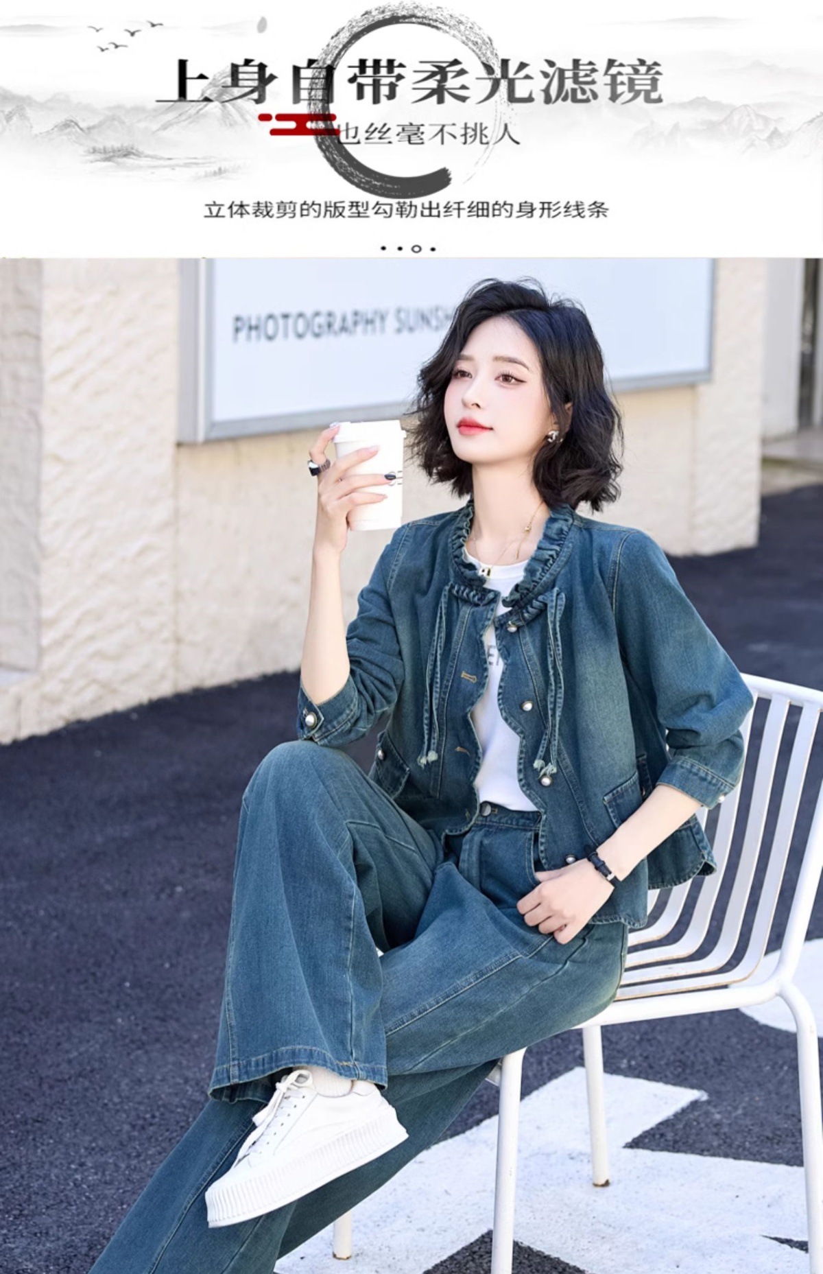 Bộ trang phục quần ống rộng và áo phong cách hiện đại dành cho mùa thu. Chất liệu denim mềm mại, thoải mái và dễ vận động. Kiểu dáng hai mảnh tạo nên sự trẻ trung, lịch sự phù hợp cho nhiều hoàn cảnh. Thiết kế ôm vừa vặn giúp tôn dáng người mặc một cách tự nhiên. Có thể phối mặc nguyên bộ hoặc tách rời để phong cách thêm phần linh hoạt. Dễ dàng giặt và bảo quản như các loại quần áo thông thường. | Tên sản phẩm: Đồ Bộ Nữ Chất Liệu Jean Bò Cả Bộ 2 Món Trông Trẻ Hơn Tuổi Hàng Mùa Xuân Thu Đông Đồ Công Sở - Thời Trang Nữ | Mã sản phẩm: L3808 - Giá: 2.120.000đ | Mã nhà sản xuất: WODIG-G05Hình ảnh sản phẩm