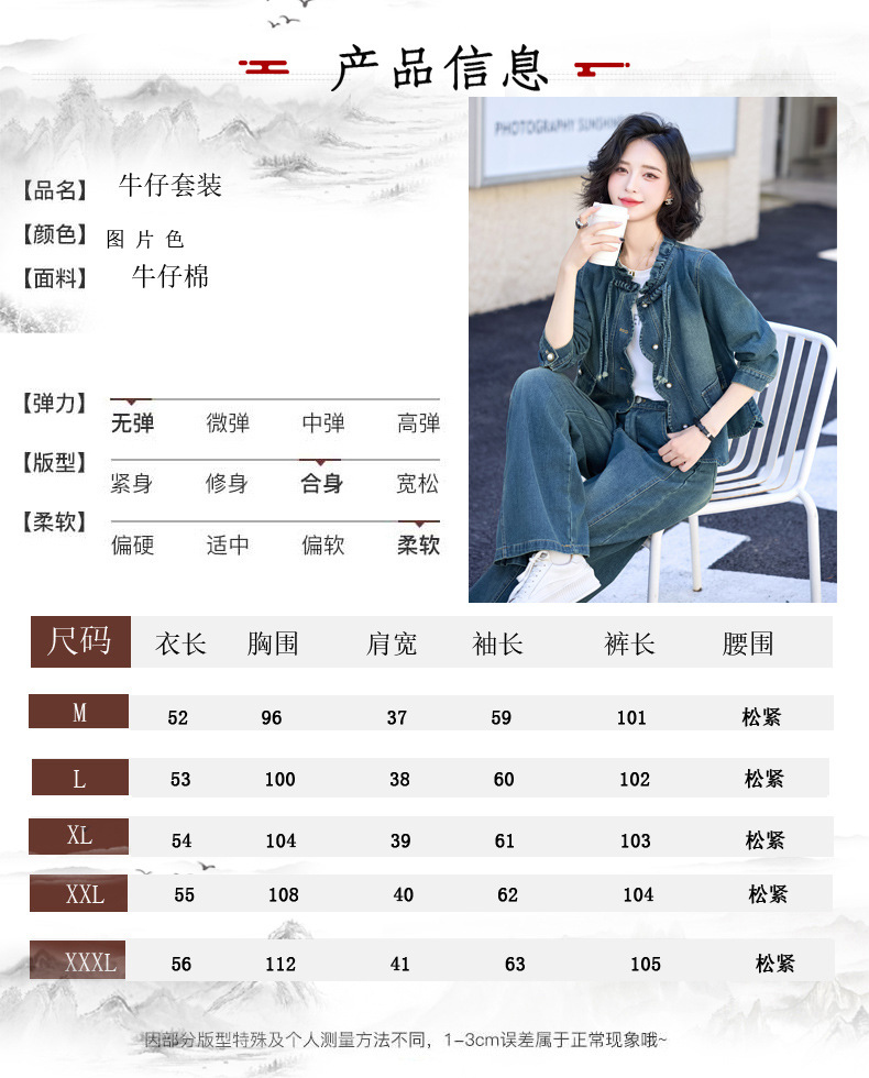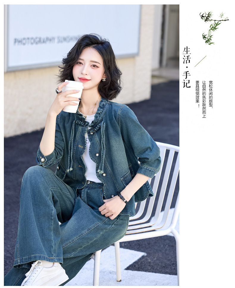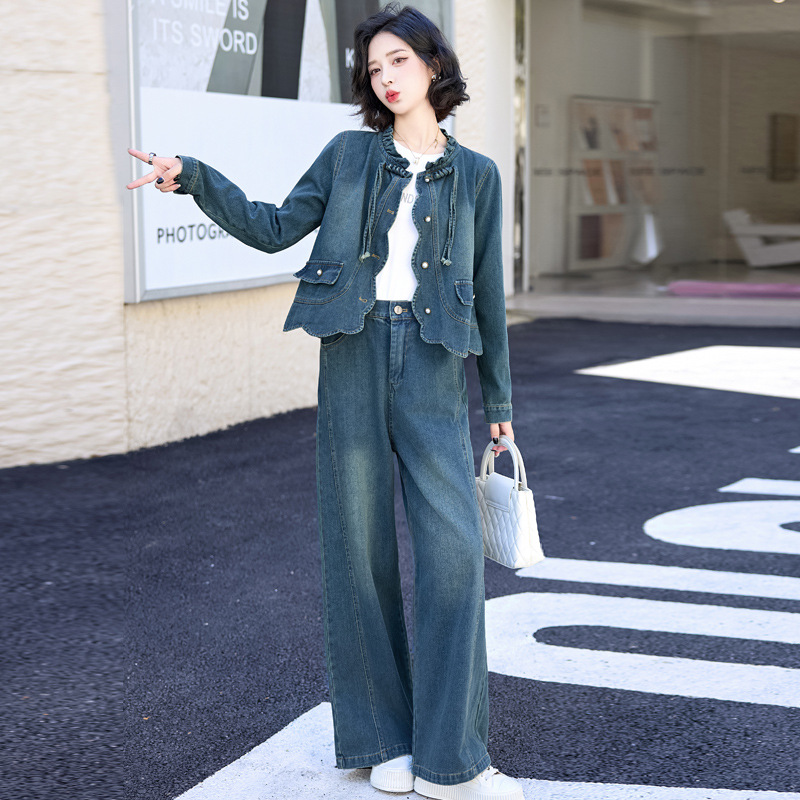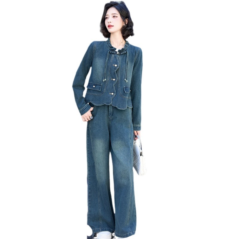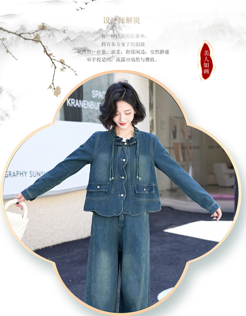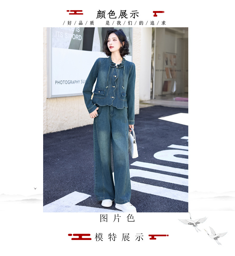 Bộ trang phục quần ống rộng và áo phong cách hiện đại dành cho mùa thu. Chất liệu denim mềm mại, thoải mái và dễ vận động. Kiểu dáng hai mảnh tạo nên sự trẻ trung, lịch sự phù hợp cho nhiều hoàn cảnh. Thiết kế ôm vừa vặn giúp tôn dáng người mặc một cách tự nhiên. Có thể phối mặc nguyên bộ hoặc tách rời để phong cách thêm phần linh hoạt. Dễ dàng giặt và bảo quản như các loại quần áo thông thường. | Tên sản phẩm: Đồ Bộ Nữ Chất Liệu Jean Bò Cả Bộ 2 Món Trông Trẻ Hơn Tuổi Hàng Mùa Xuân Thu Đông Đồ Công Sở - Thời Trang Nữ | Mã sản phẩm: L3808 - Giá: 2.120.000đ | Mã nhà sản xuất: WODIG-G05Hình ảnh sản phẩm