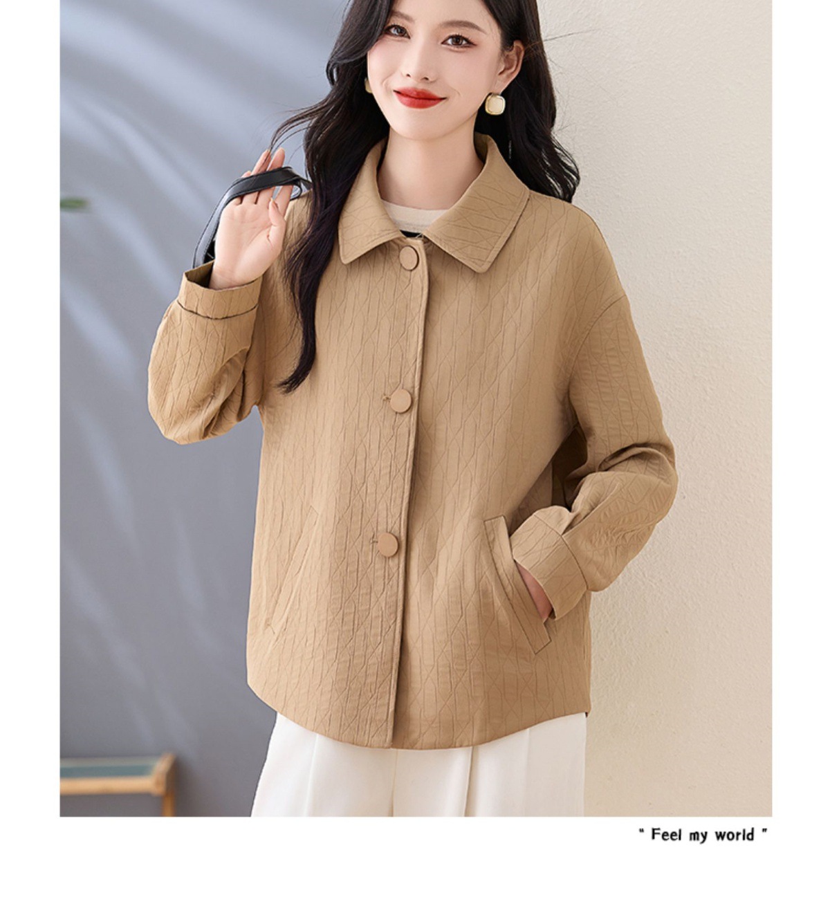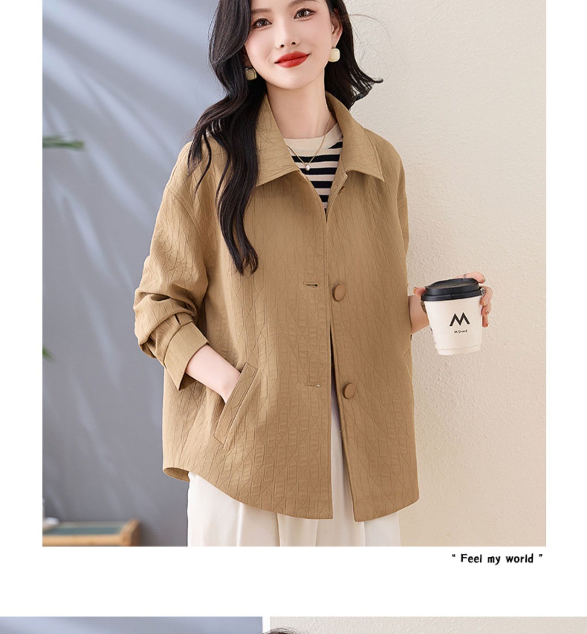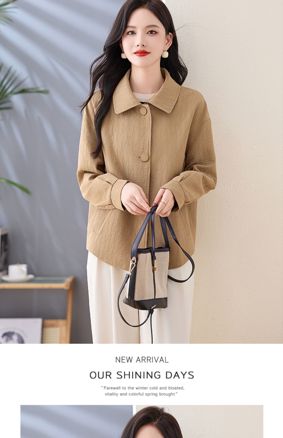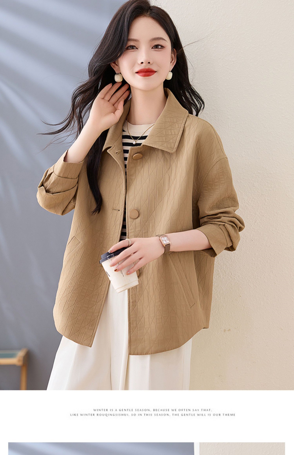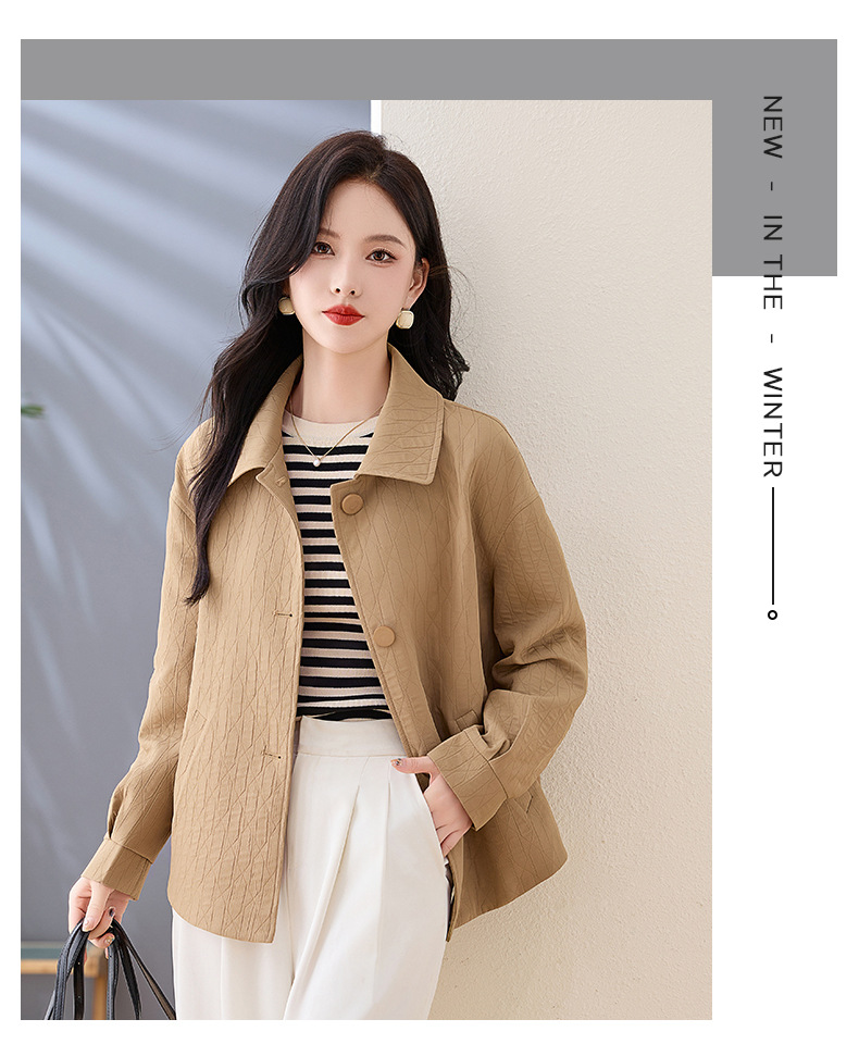 Áo khoác nữ kiểu cổ bẻ, thiết kế ngắn vừa vặn dành cho các bạn nữ có chiều cao khiêm tốn. Dáng áo rộng rãi thoải mái, phong cách đơn giản dễ phối đồ. Chất liệu nhẹ phù hợp mặc trong tiết trời mùa xuân hoặc mùa thu. Có thể mặc cùng quần jeans và áo thun để tạo vẻ ngoài trẻ trung, hoặc kết hợp với váy để dịu dàng hơn. Dễ dàng giặt sạch và bảo quản. | Tên sản phẩm: Áo Khoác Nữ Kín Cổ Hàng Mùa Xuân Thu Đông - Thời Trang Nữ | Mã sản phẩm: L3857 - Giá: 1.830.000đ | Mã nhà sản xuất: WODIG-G05Hình ảnh sản phẩm