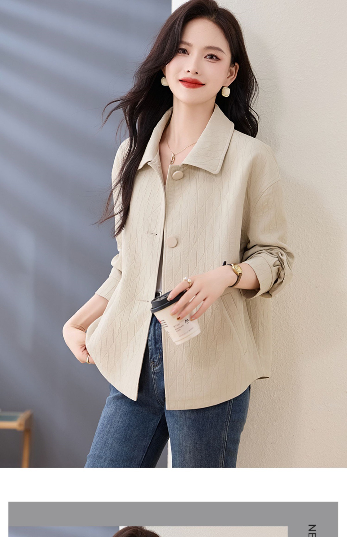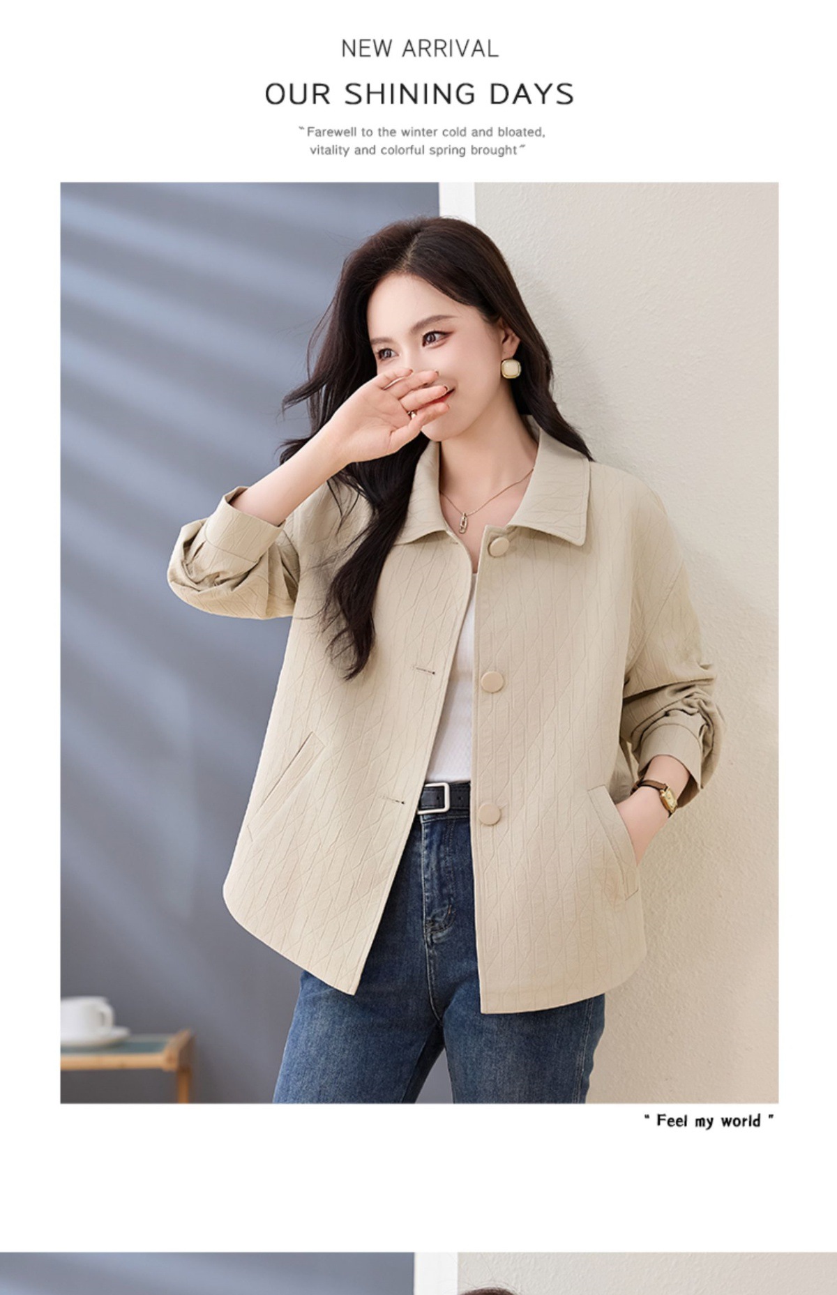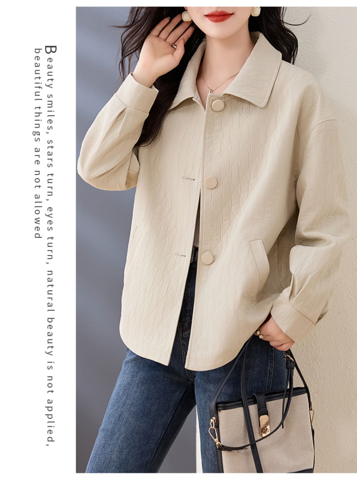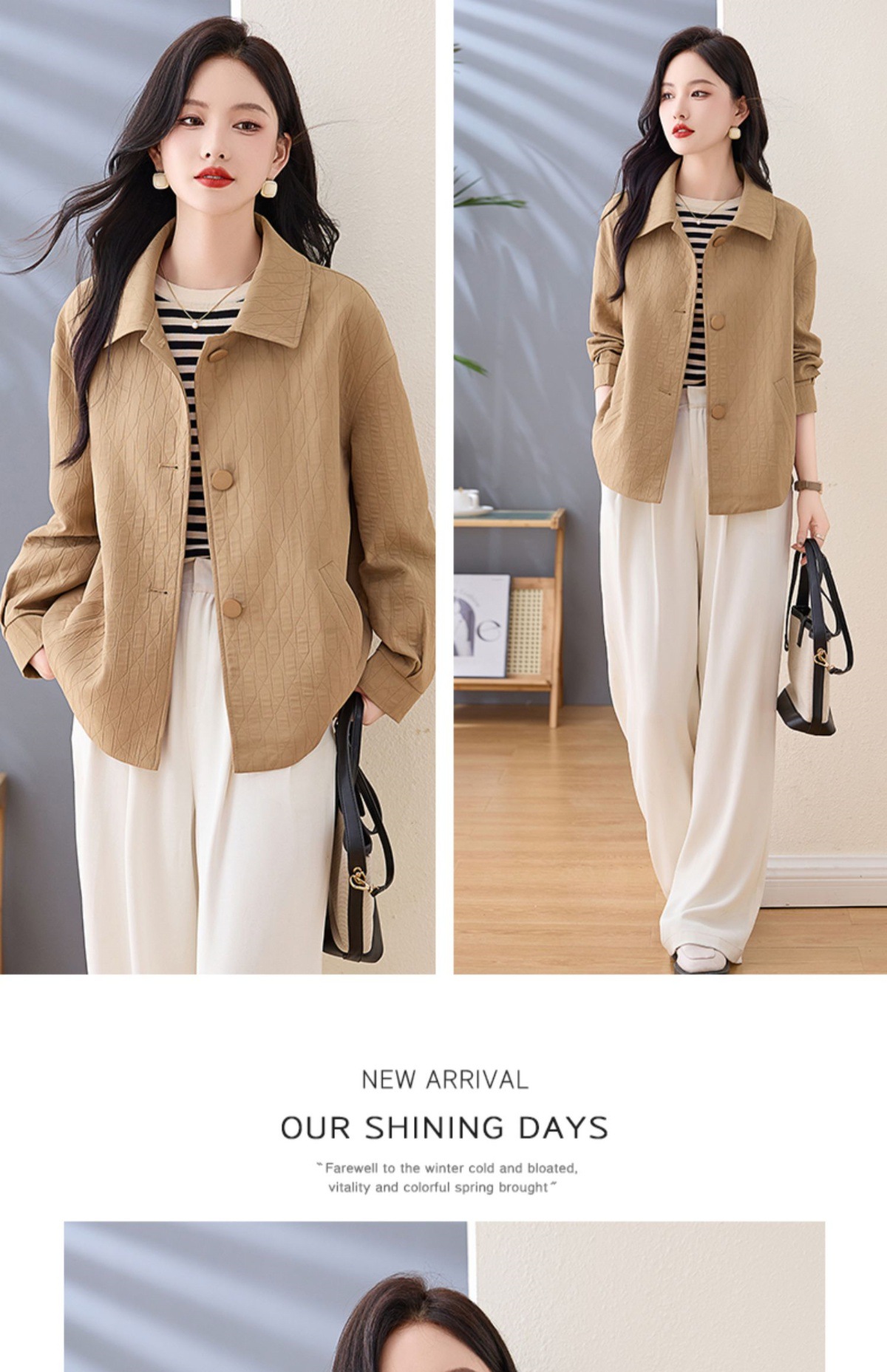 Áo khoác nữ kiểu cổ bẻ, thiết kế ngắn vừa vặn dành cho các bạn nữ có chiều cao khiêm tốn. Dáng áo rộng rãi thoải mái, phong cách đơn giản dễ phối đồ. Chất liệu nhẹ phù hợp mặc trong tiết trời mùa xuân hoặc mùa thu. Có thể mặc cùng quần jeans và áo thun để tạo vẻ ngoài trẻ trung, hoặc kết hợp với váy để dịu dàng hơn. Dễ dàng giặt sạch và bảo quản. | Tên sản phẩm: Áo Khoác Nữ Kín Cổ Hàng Mùa Xuân Thu Đông - Thời Trang Nữ | Mã sản phẩm: L3857 - Giá: 1.830.000đ | Mã nhà sản xuất: WODIG-G05Hình ảnh sản phẩm