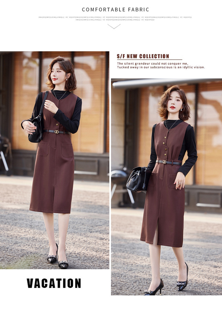 Bộ trang phục hai mảnh này gồm áo ba lỗ và đầm, rất phù hợp cho tiết trời thu. Kiểu dáng trẻ trung, thanh lịch, giúp tôn dáng người mặc. Chất vải mềm mại, thoáng mát, tạo cảm giác dễ chịu khi mặc. Bạn có thể phối mặc đi làm, đi chơi hay dự tiệc nhẹ nhàng. Mix đồ đơn giản cùng giày sandal hoặc giày thể thao đều hợp. | Tên sản phẩm: Đồ Bộ Nữ Cả Bộ 2 Món Trông Trẻ Hơn Tuổi Hàng Mùa Xuân Thu Đông - Thời Trang Nữ | Mã sản phẩm: L3864 - Giá: 1.830.000đ | Mã nhà sản xuất: WODIG-G05Hình ảnh sản phẩm