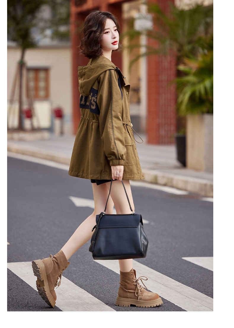 Áo khoác dáng dài dành cho phụ nữ, kiểu dáng rộng rãi thoải mái. Sản phẩm có mũ trùm và phần eo được may nhấn nhẹ để tạo dáng. Chất vải mềm mại, phù hợp mặc trong tiết trời se lạnh của mùa thu hoặc mùa xuân. Phong cách trẻ trung, năng động. Có thể mặc như áo khoác bên ngoài khi đi làm, đi chơi hoặc dạo phố. Dễ dàng phối cùng nhiều loại trang phục khác nhau. | Tên sản phẩm: Áo Khoác Nữ Big Size Ngoại Cỡ Mũ Liền Hàng Mùa Xuân Thu Đông Trung Niên - Thời Trang Nữ | Mã sản phẩm: L3890 - Giá: 1.910.000đ | Mã nhà sản xuất: WODIG-G05Hình ảnh sản phẩm