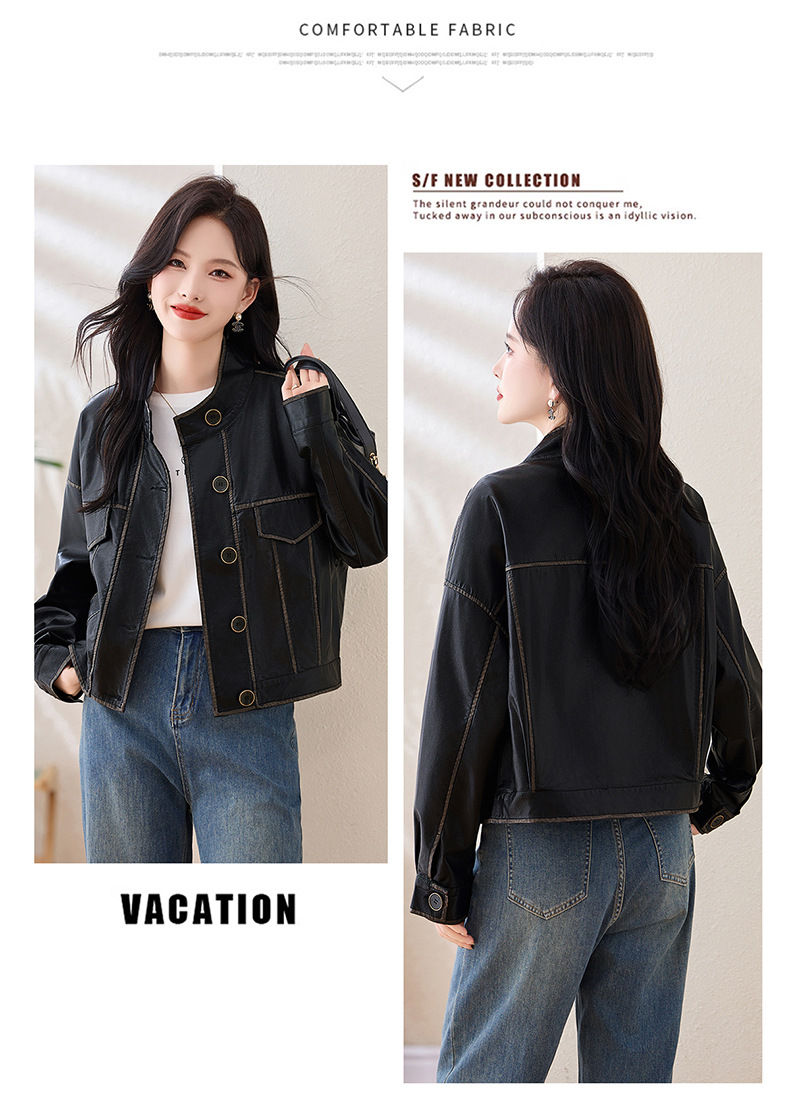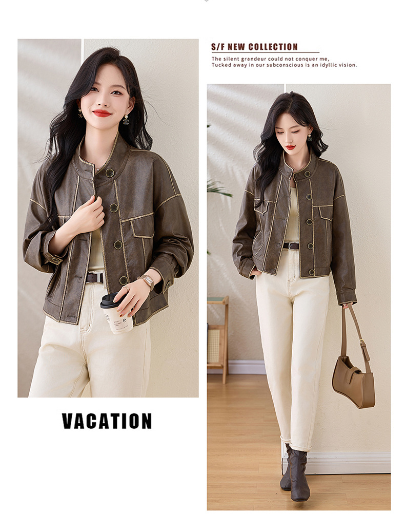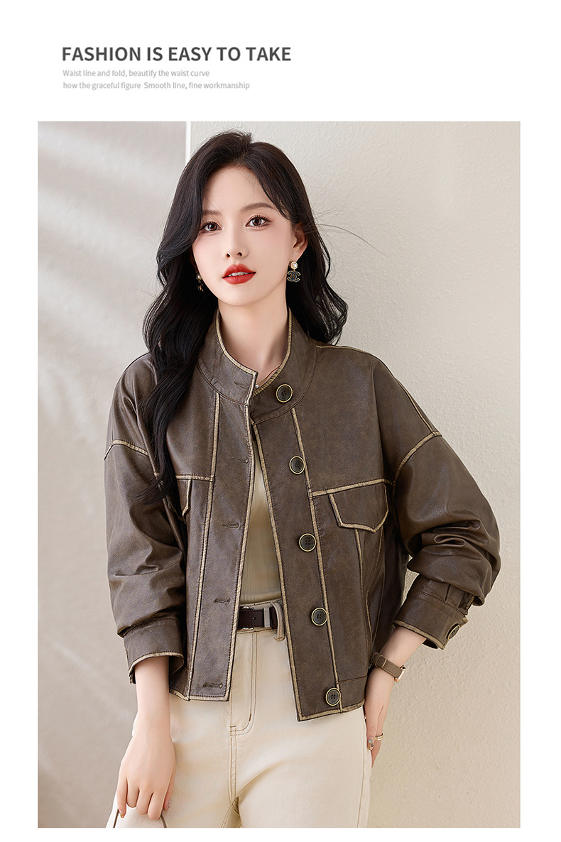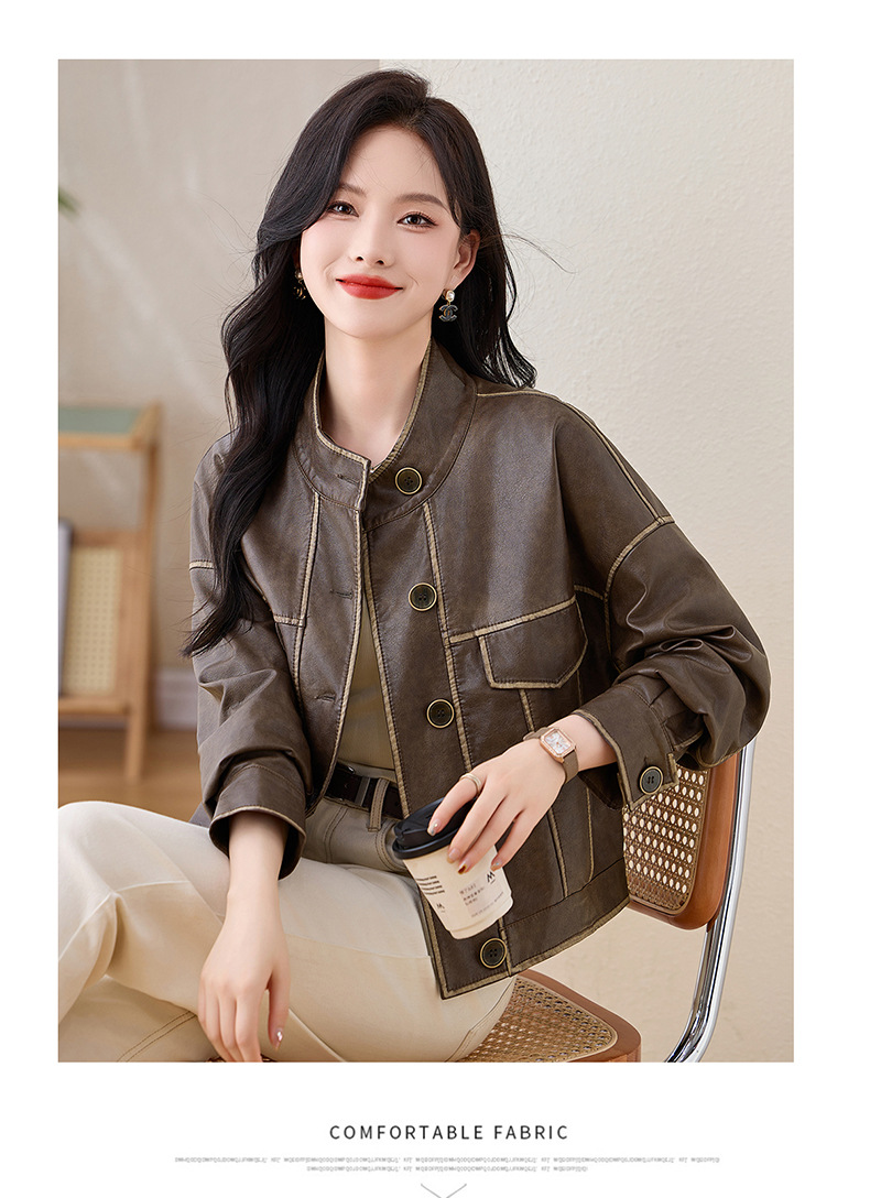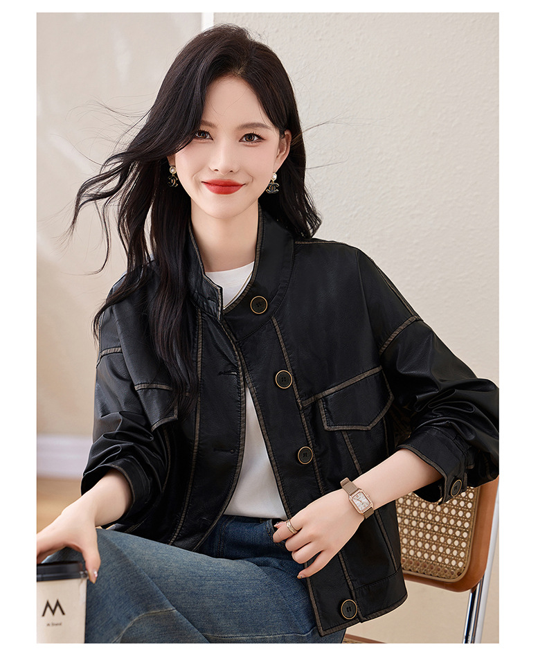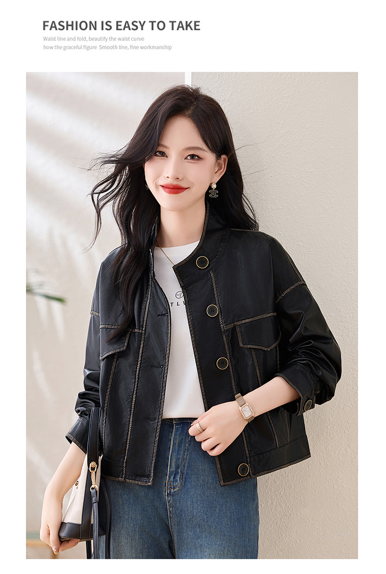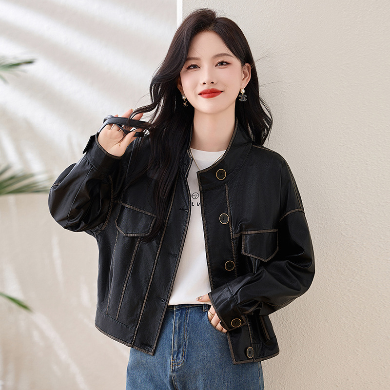 Áo khoác da kiểu mẫu cổ dựng, thiết kế ngắn gọn gàng dành cho nữ. Chất liệu da bền đẹp, đường may tinh tế tạo phong cách mạnh mẽ pha chút hoài cổ. Kiểu dáng ôm vừa vặn, phù hợp mặc trong tiết trời mát mẻ. Dễ dàng phối cùng quần jeans và giày bốt để tạo điểm nhấn ấn tượng. Sản phẩm thực tế, mang đến vẻ ngoài cá tính và năng động cho người mặc. | Tên sản phẩm: Áo Da Nữ Hàng Mùa Xuân Thu Đông Phục Cổ Cổ Điển - Thời Trang Nữ | Mã sản phẩm: L3894 - Giá: 1.780.000đ | Mã nhà sản xuất: WODIG-G05Hình ảnh sản phẩm