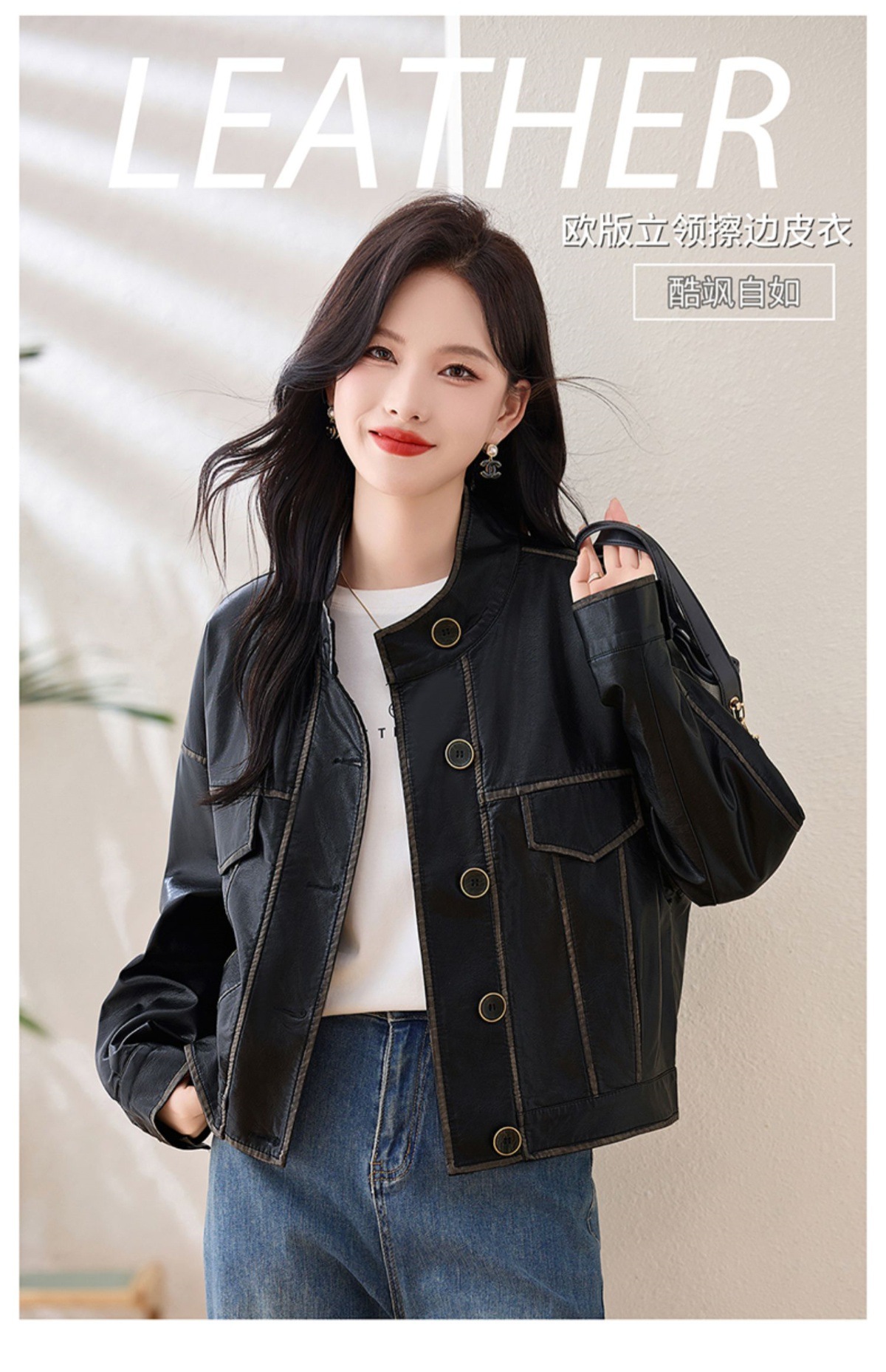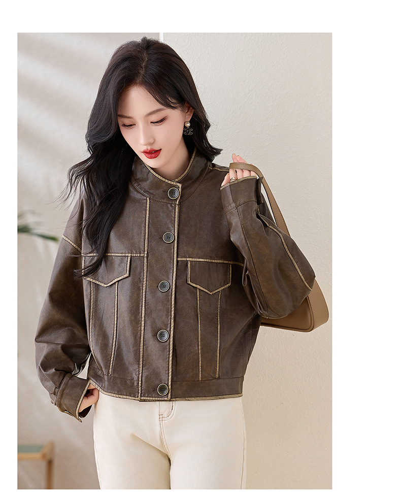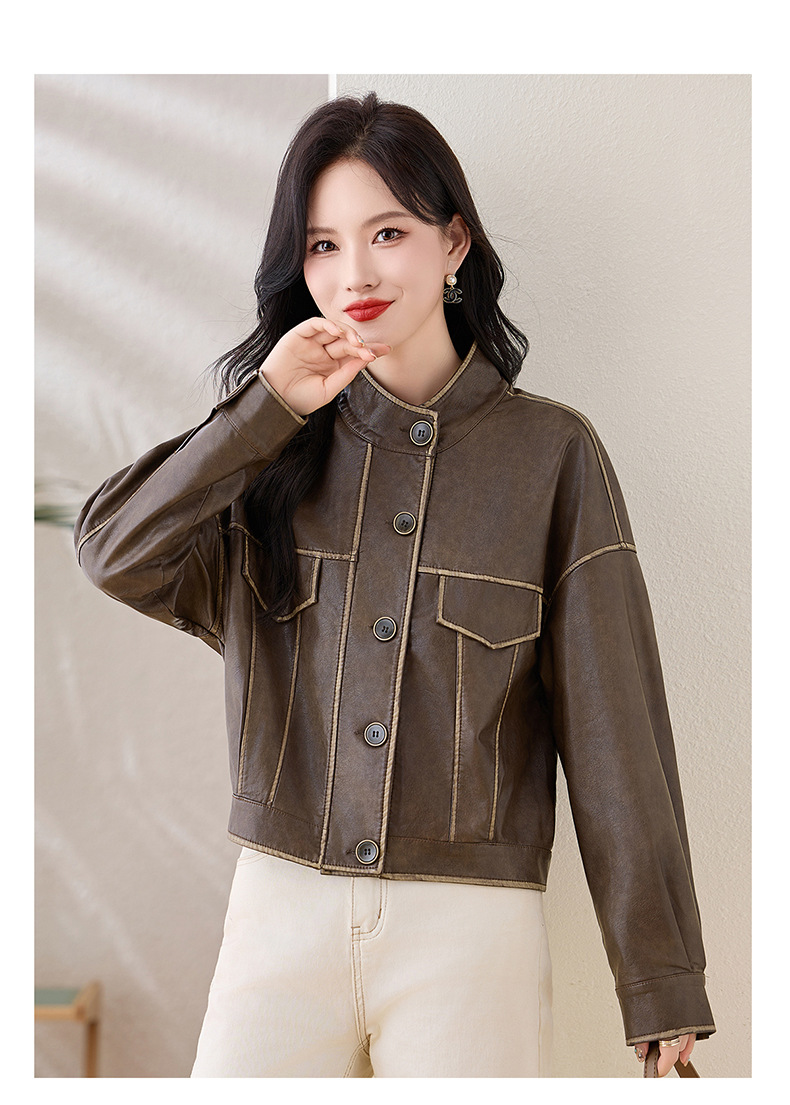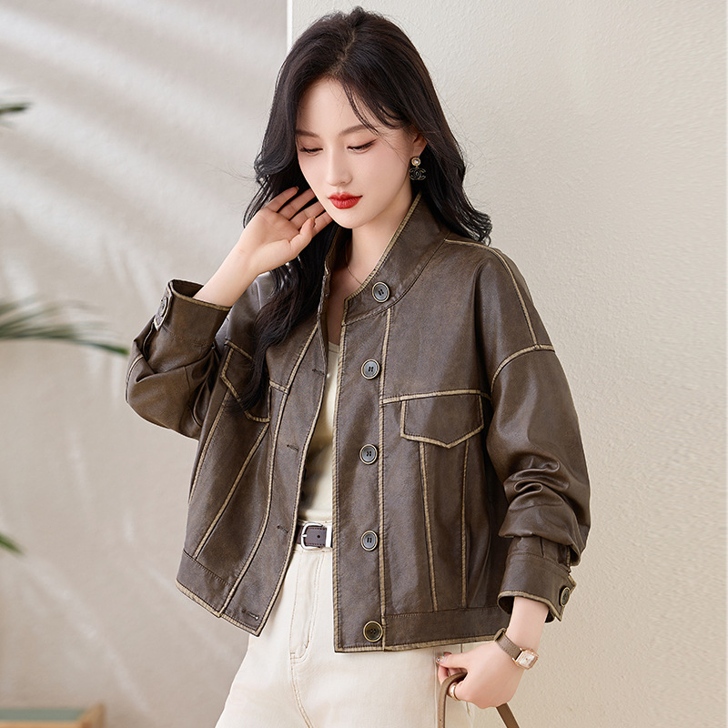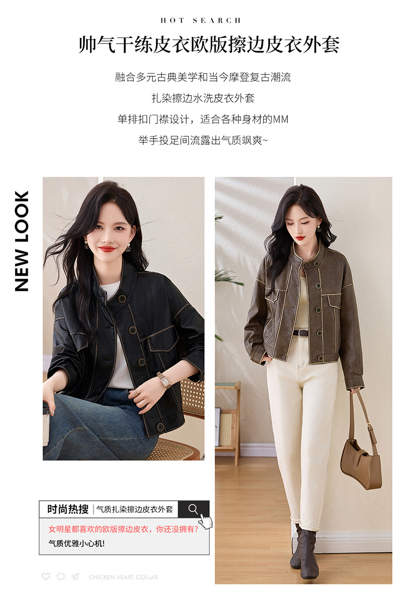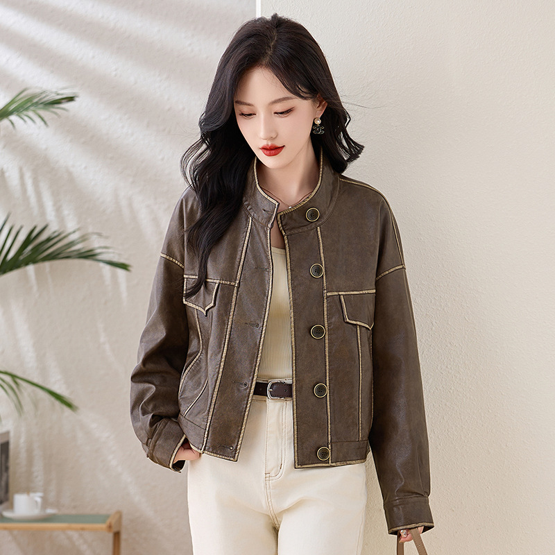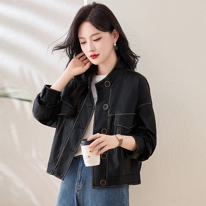 Áo khoác da kiểu mẫu cổ dựng, thiết kế ngắn gọn gàng dành cho nữ. Chất liệu da bền đẹp, đường may tinh tế tạo phong cách mạnh mẽ pha chút hoài cổ. Kiểu dáng ôm vừa vặn, phù hợp mặc trong tiết trời mát mẻ. Dễ dàng phối cùng quần jeans và giày bốt để tạo điểm nhấn ấn tượng. Sản phẩm thực tế, mang đến vẻ ngoài cá tính và năng động cho người mặc. | Tên sản phẩm: Áo Da Nữ Hàng Mùa Xuân Thu Đông Phục Cổ Cổ Điển - Thời Trang Nữ | Mã sản phẩm: L3894 - Giá: 1.780.000đ | Mã nhà sản xuất: WODIG-G05Hình ảnh sản phẩm