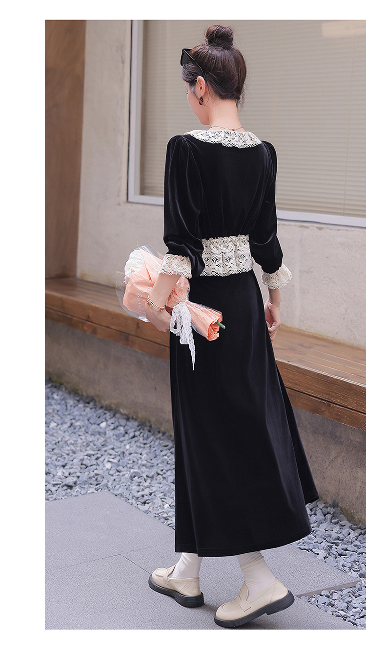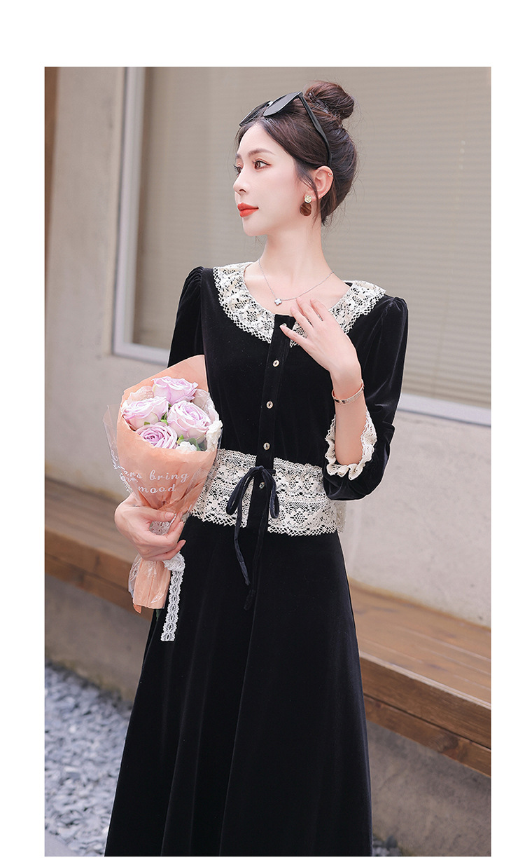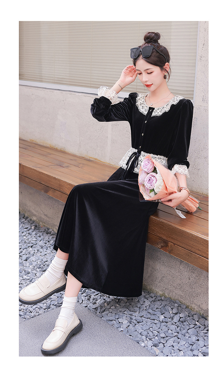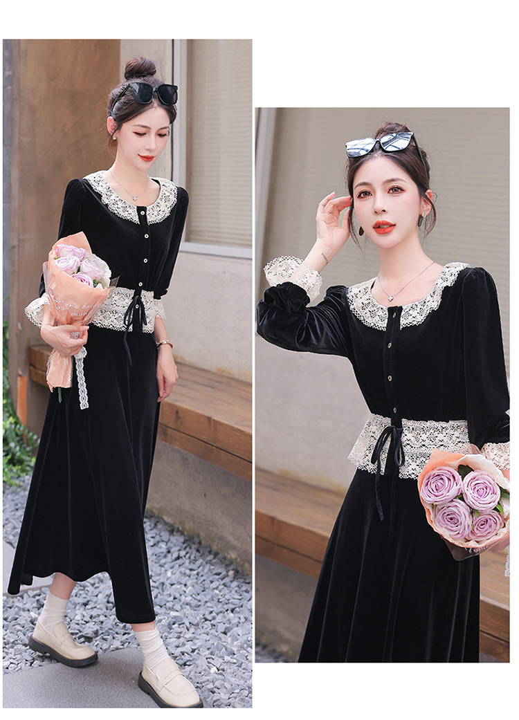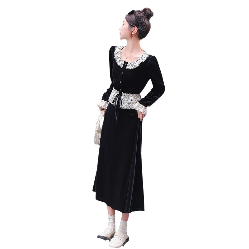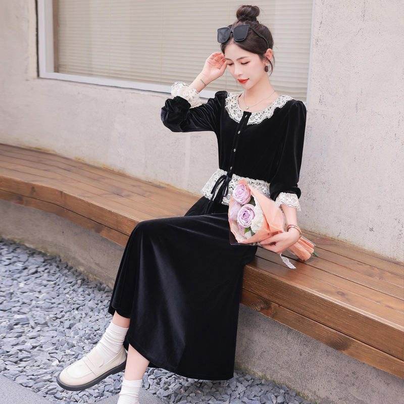 Chiếc đầm dáng dài mang phong cách Pháp, kết hợp tinh tế giữa chất liệu nhung mềm mại và những chi tiết ren. Thiết kế có phần tay và cổ được ghép nối bằng ren tạo điểm nhấn thanh lịch. Kiểu dáng ôn hòa thích hợp mặc trong tiết trời xuân và thu. Bạn có thể phối cùng giày cao gót và túi xách để tôn lên vẻ nữ tính. Mẫu đầm này phù hợp cho nhiều dịp đi chơi hoặc gặp mặt. | Tên sản phẩm: Váy Đầm Liền Thân Nữ Chất Liệu Ren Hàng Mùa Xuân Thu Đông - Thời Trang Nữ | Mã sản phẩm: L3927 - Giá: 1.910.000đ | Mã nhà sản xuất: WODIG-G05Hình ảnh sản phẩm