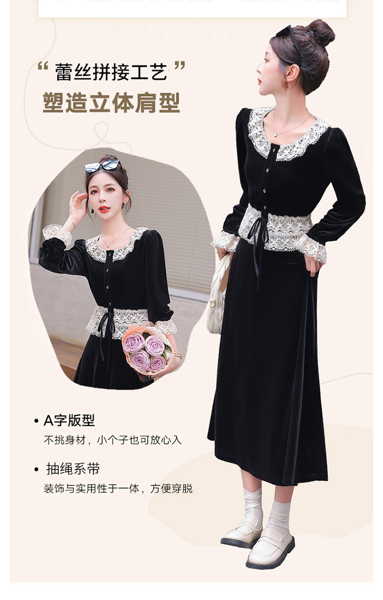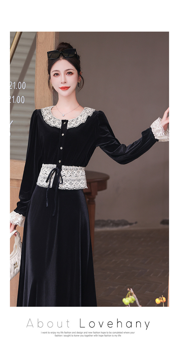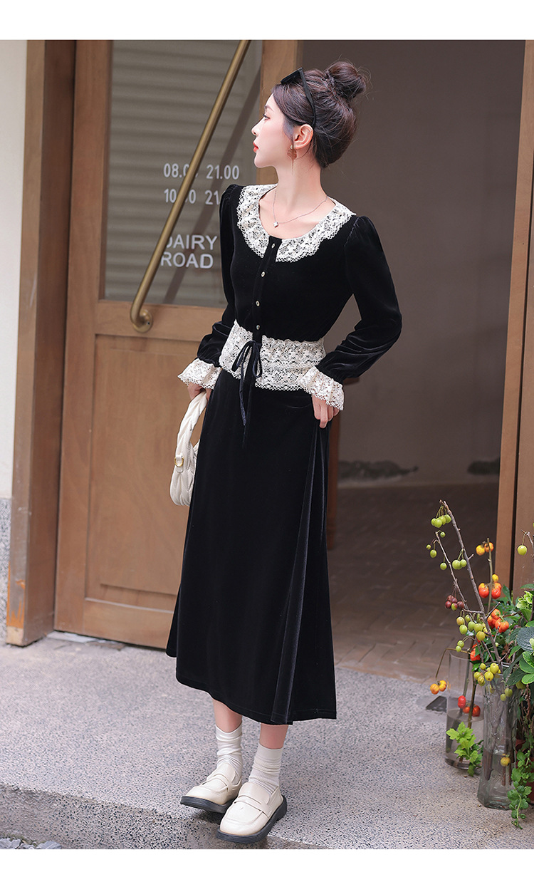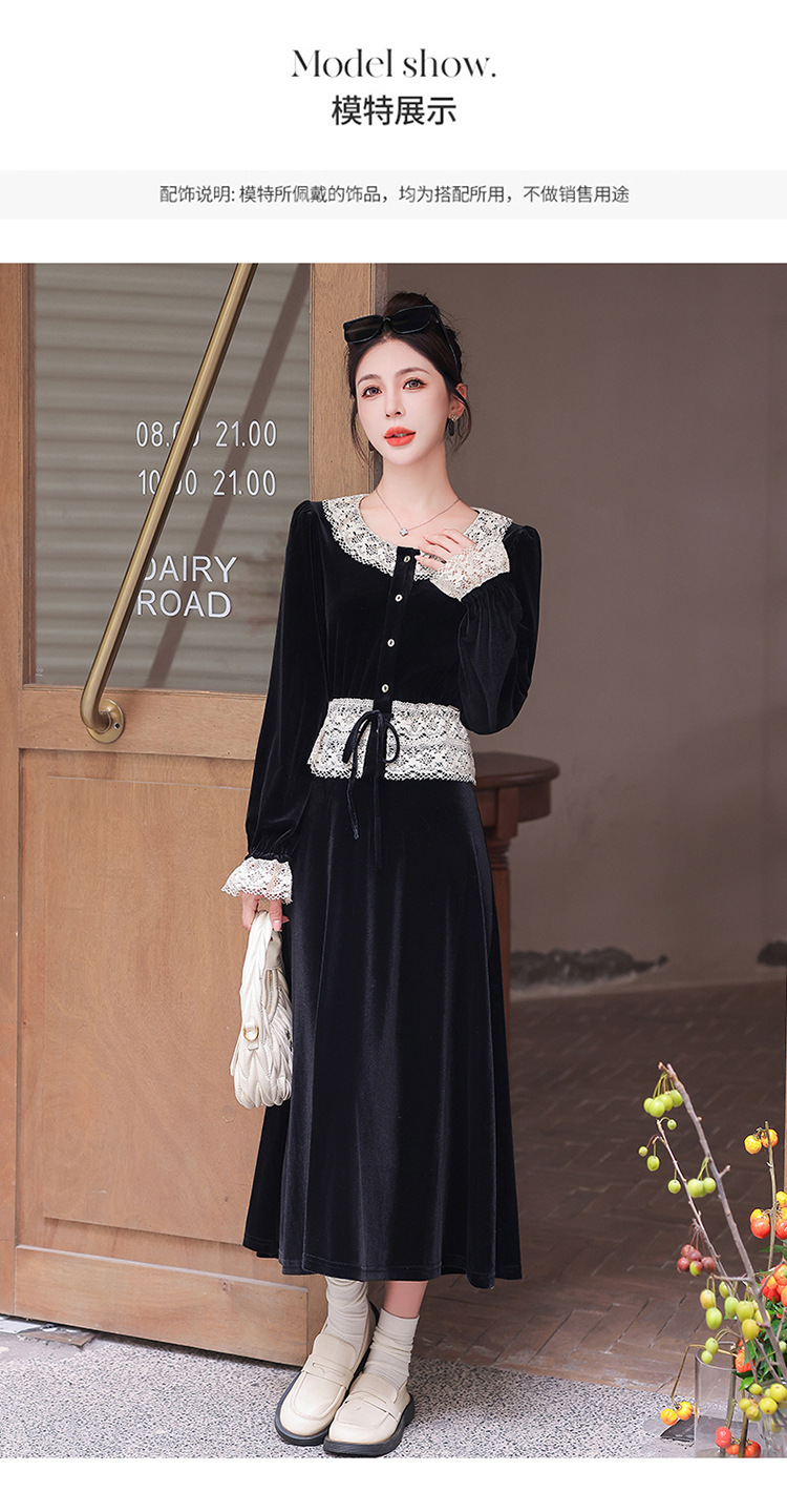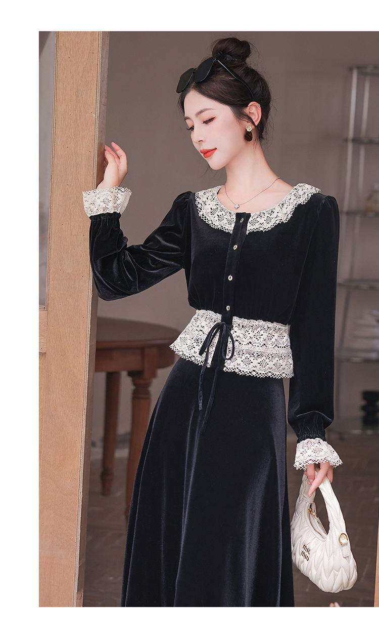 Chiếc đầm dáng dài mang phong cách Pháp, kết hợp tinh tế giữa chất liệu nhung mềm mại và những chi tiết ren. Thiết kế có phần tay và cổ được ghép nối bằng ren tạo điểm nhấn thanh lịch. Kiểu dáng ôn hòa thích hợp mặc trong tiết trời xuân và thu. Bạn có thể phối cùng giày cao gót và túi xách để tôn lên vẻ nữ tính. Mẫu đầm này phù hợp cho nhiều dịp đi chơi hoặc gặp mặt. | Tên sản phẩm: Váy Đầm Liền Thân Nữ Chất Liệu Ren Hàng Mùa Xuân Thu Đông - Thời Trang Nữ | Mã sản phẩm: L3927 - Giá: 1.910.000đ | Mã nhà sản xuất: WODIG-G05Hình ảnh sản phẩm